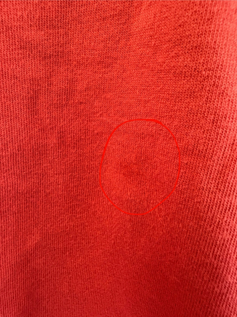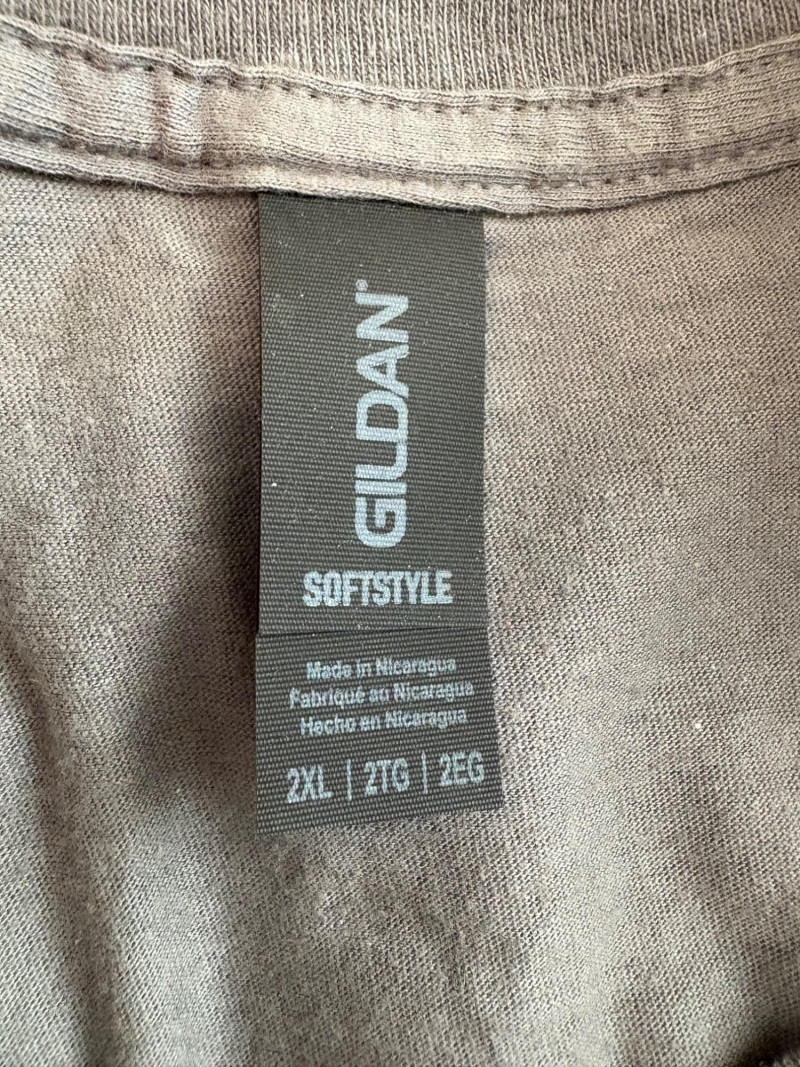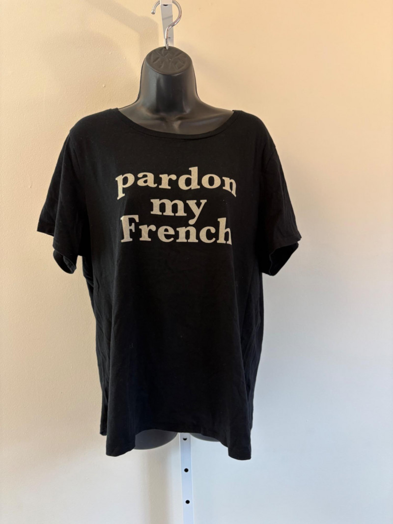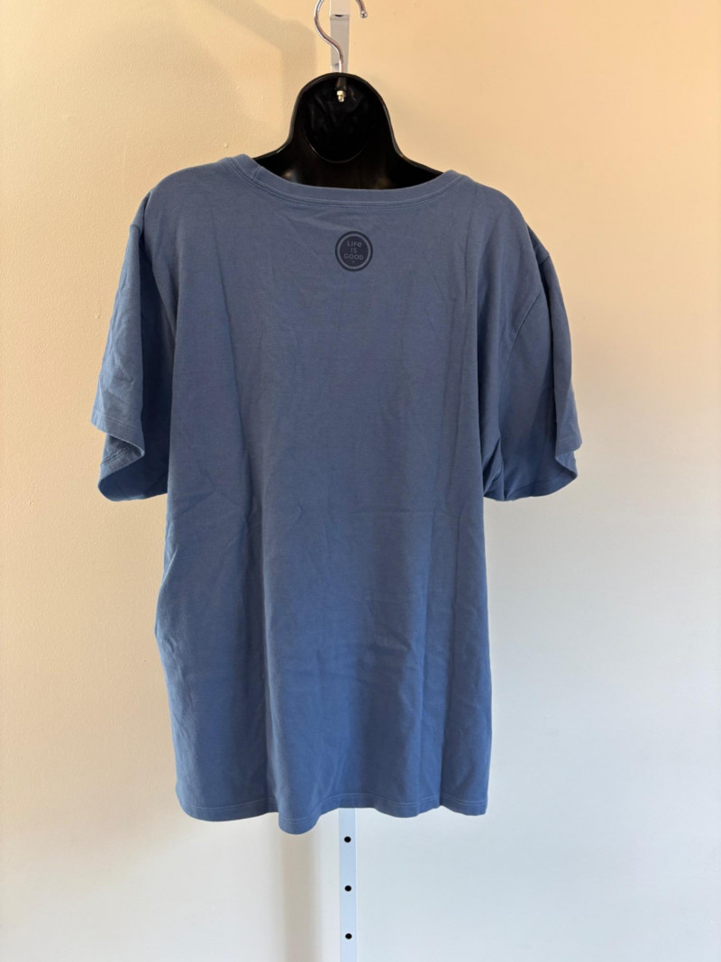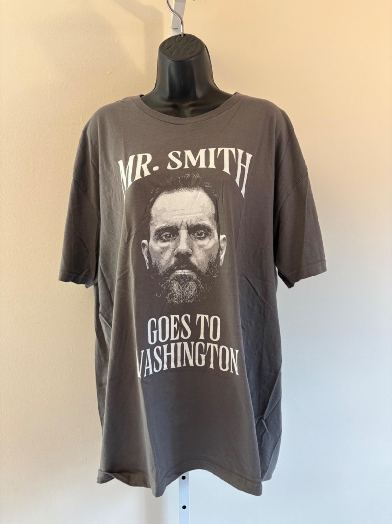 Group of 5 printed t-shirts in very good condition. All 100% cotton except for the Waco one which is a blend. "Red, Wine & Blue" from Life Is Good. Measures 26.5" pit to pit and 27" from back neckline to hem. Size tag says XXXL. "Life is Good" eagle from Life Is Good. Measures 27" pit to pit and 27.5" from back neckline to hem. Size tag says XXXL. We noticed a small discoloration while doing photos, but it was so faint we could barely get it to show up - see photo in this section. "Pardon My French" from Old Navy. Measures 22.5" pit to pit and 25.5" from back neckline to bottom hem. Size tag says XL. "Mr. Smith Goes To Washington" from maker unknown. Measures 24" pit to pit and 29.5" from back neckline to bottom hem. Size tag says 2XL. "Magnolia - Waco, Texas" from Next Level Apparel. Measures 22.5" pit to pit and 30" from back neckline to bottom hem. Size tag says XL.