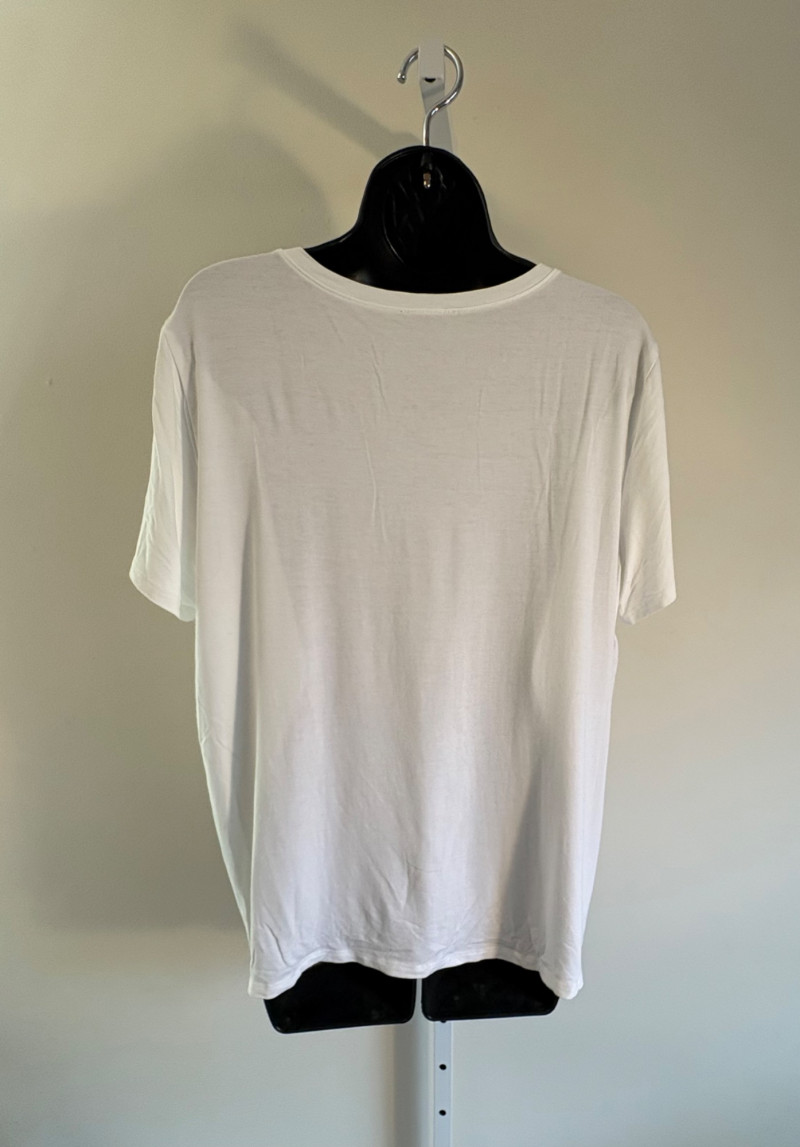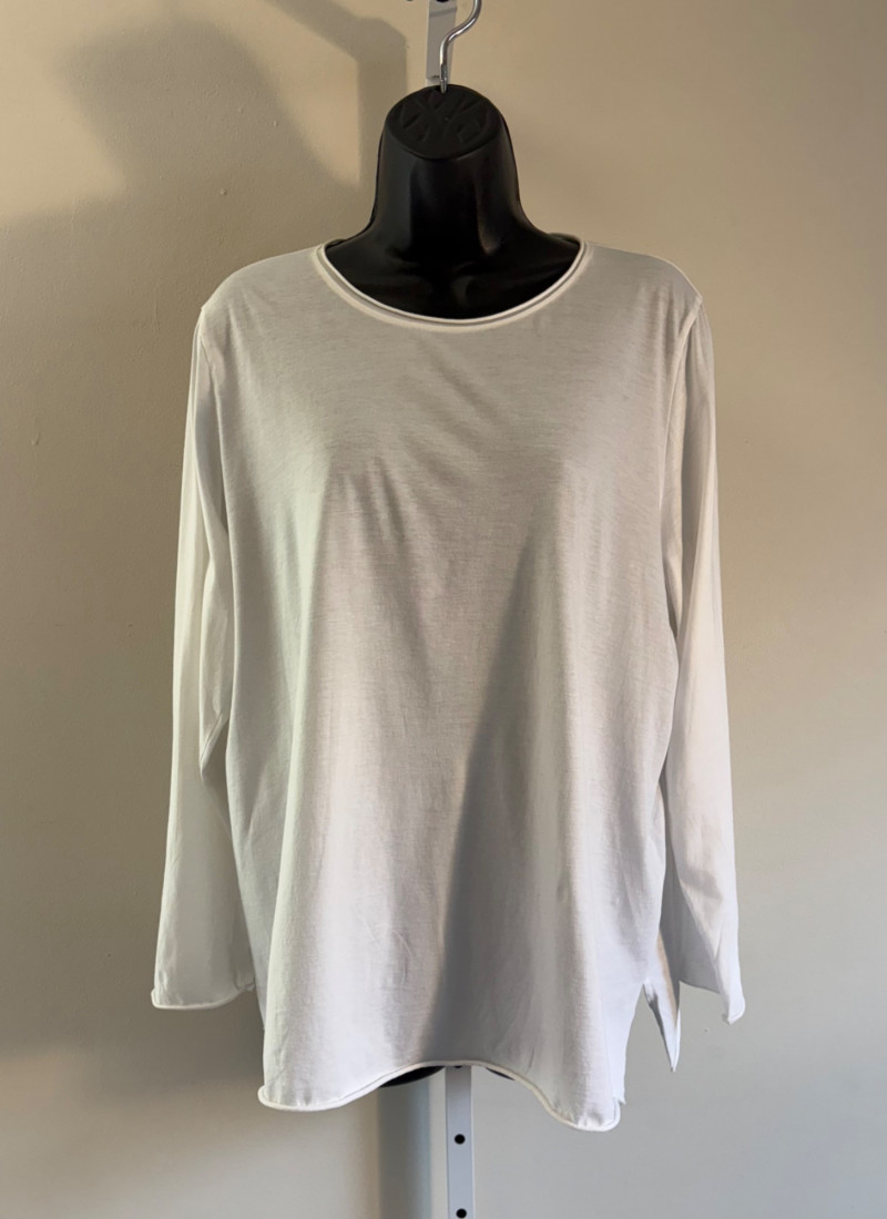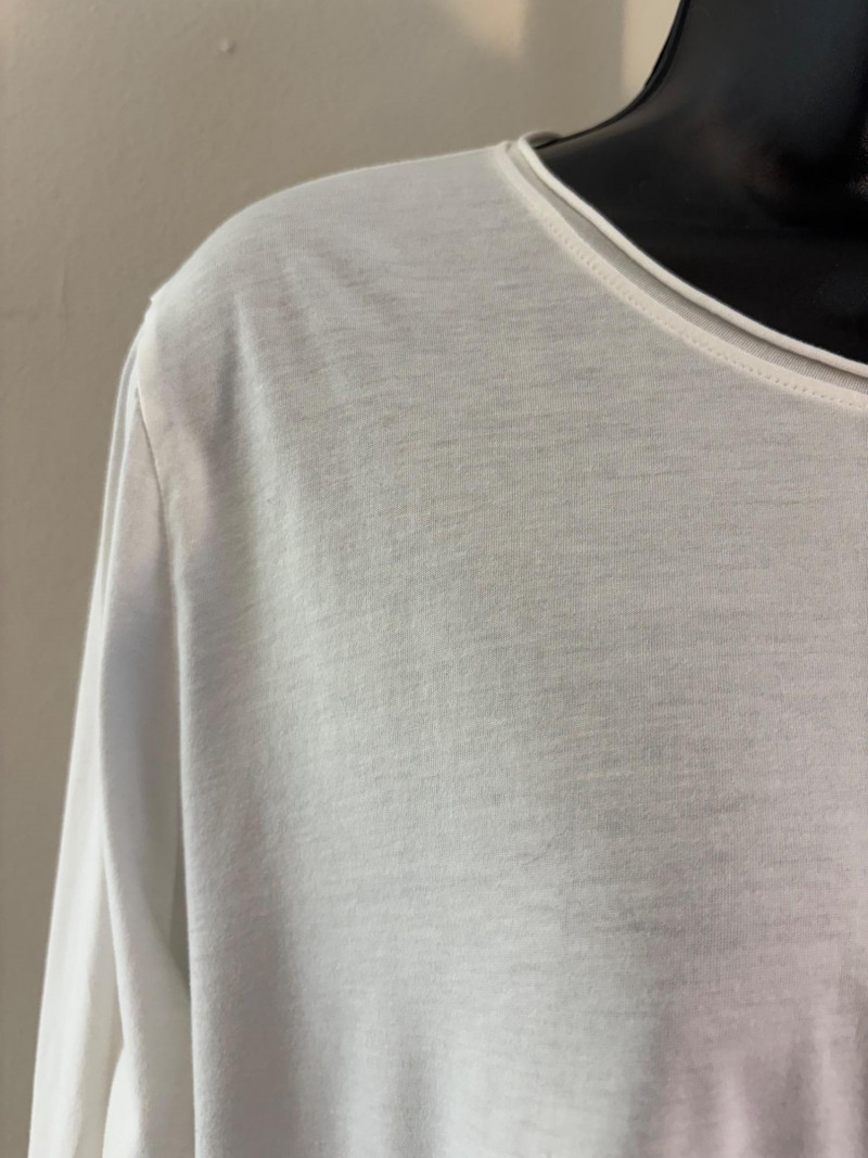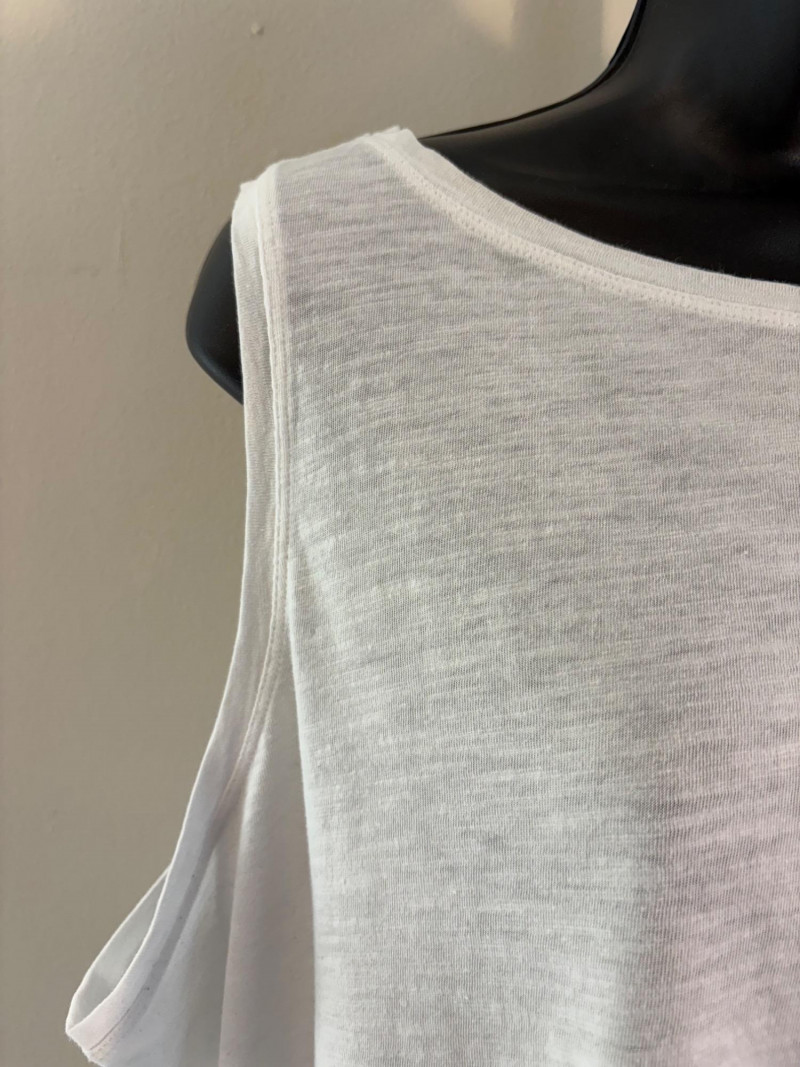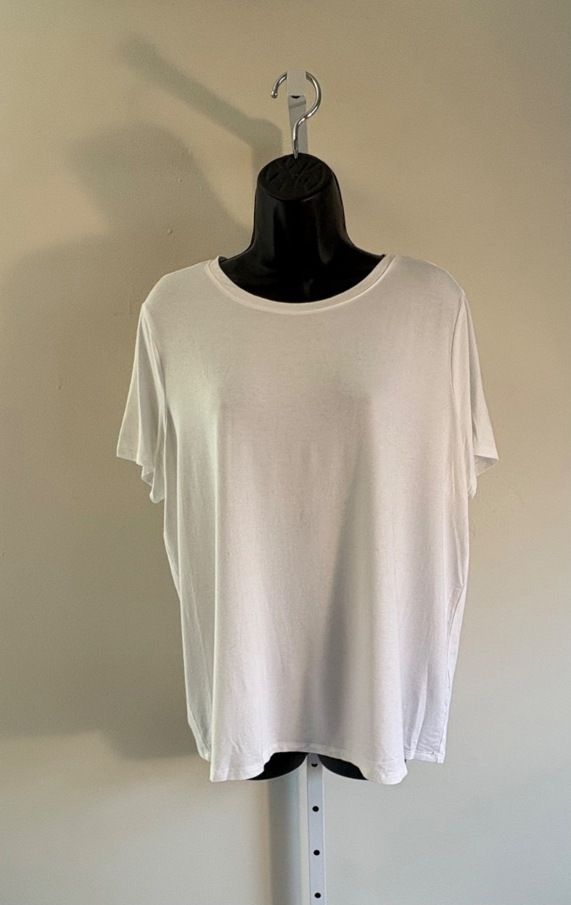 Basic white t-shirts are always a great building block - here are 3 from Eileen Fisher in slightly different styles. All are in excellent condition & measure approx. 22.5" pit to pit and 24" from back neckline to hem. Long sleeve shirt is 100% cotton. Size tag says XL. Tank is 100% cotton. Size tag says L/G. Short sleeve shirt is 95% viscose with 5% spandex. Size tag says XL.