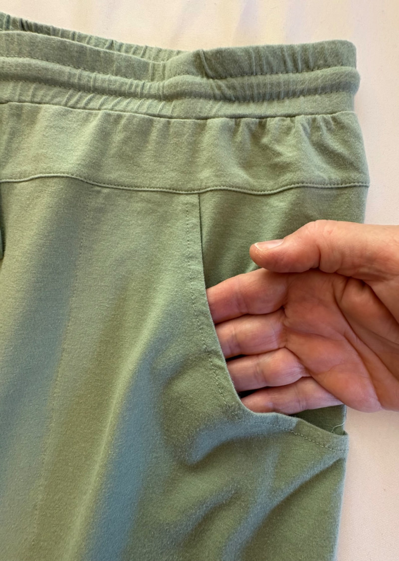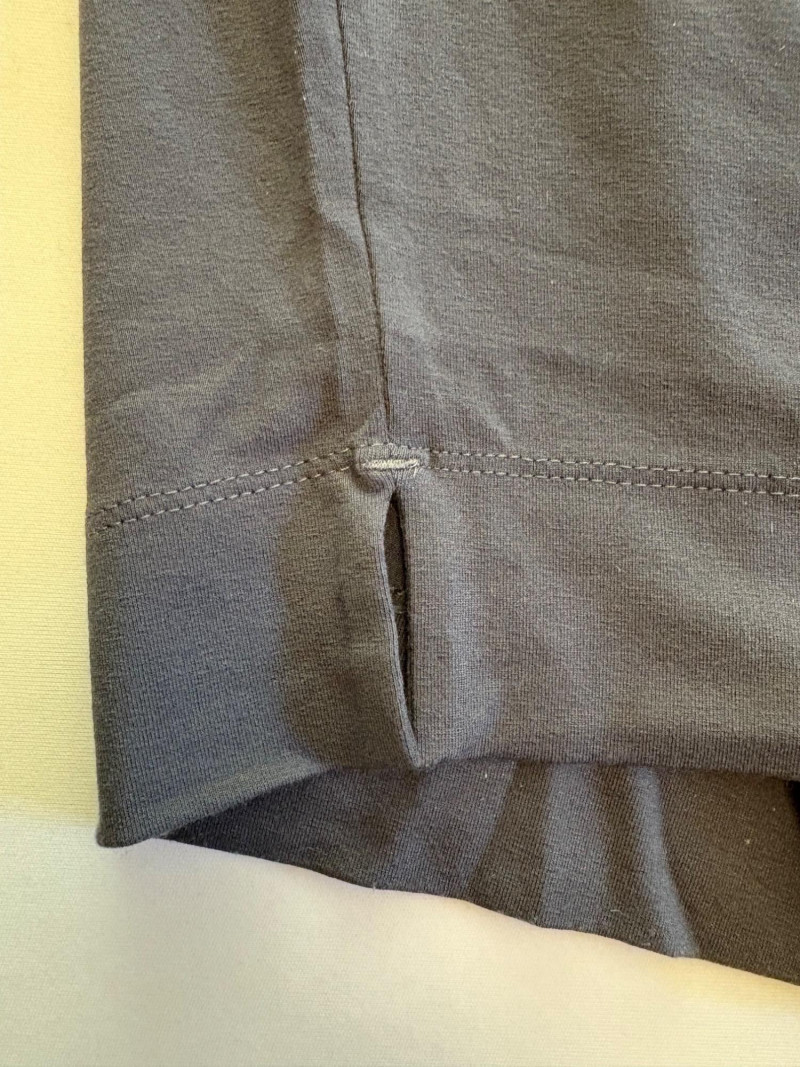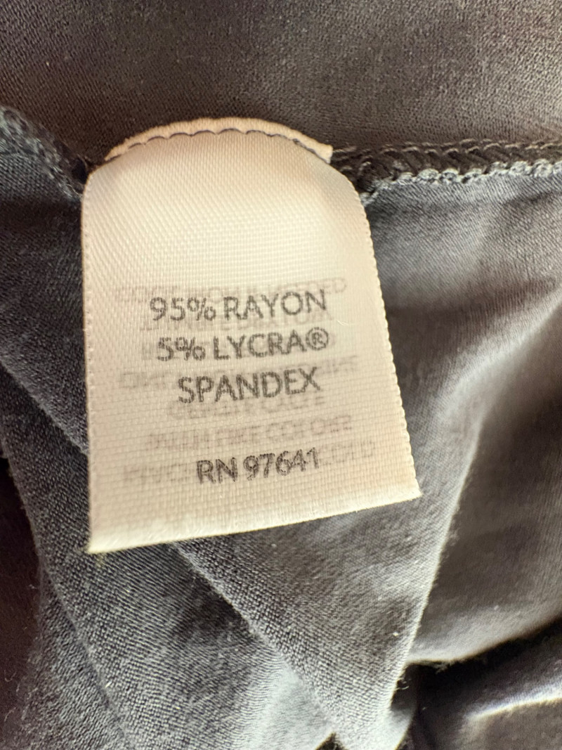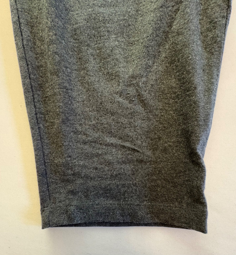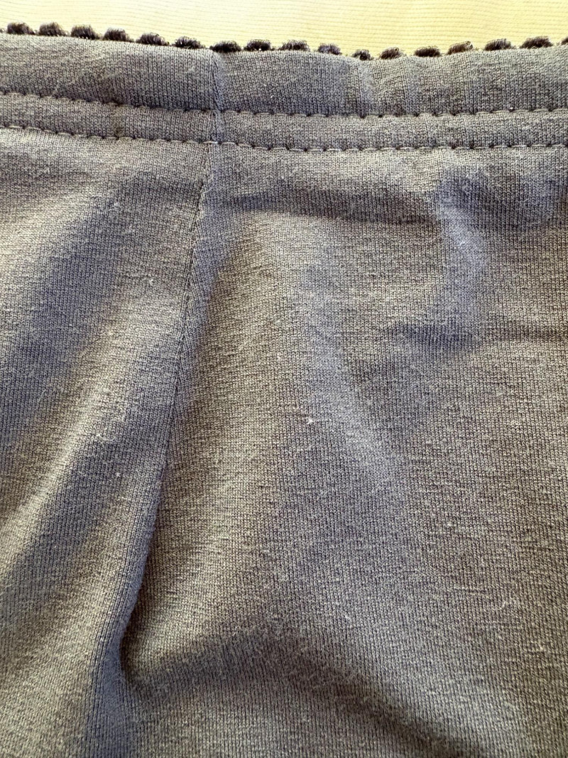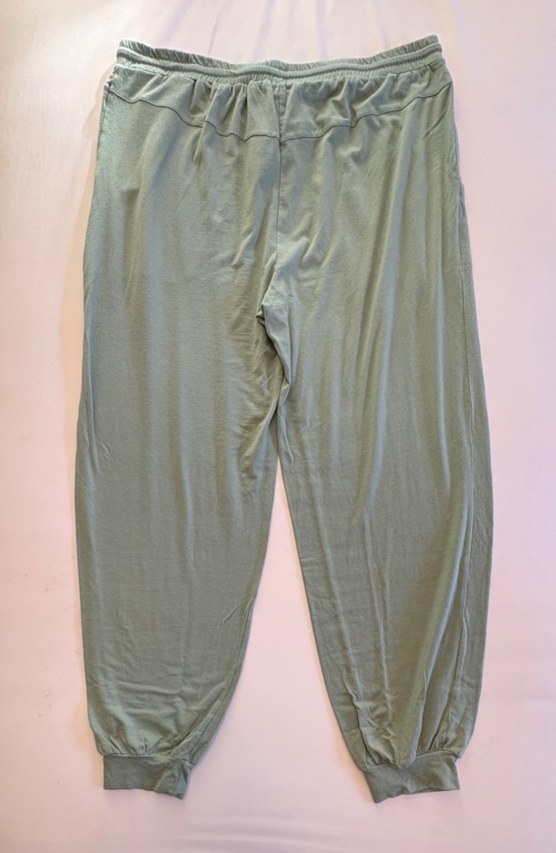 3 pairs of extremely comfortable knit pants - they could work inside and out depending upon what you pair with them. Charcoal grey pair from Eileen Fisher has elasticated waistband with drawstring, set-in front pockets, and tapered legs. In excellent condition. 95% Tencel with 5% polyurethane. Measure 18.5" side to side at waist with 26" inseam. Size tag says XL. Soft light green pair from Any Body have elasticated waist with drawstring, faux fly, front set-in pockets and elasticated hems. In excellent condition. 58% cotton with 38% modal and 4% spandex. Measure 18.5" side to side at waist with 29" inseam. Size tag says LT. Sleek grey wide leg pair from J. Jill have "heft" to the knit and fall gracefully. Narrow elasticated waistband, back waistline darts, and small split hem. In excellent condition. 95% rayon with 5% spandex. Measure 18" side to side at waist with 25" inseam. Size tag says XL