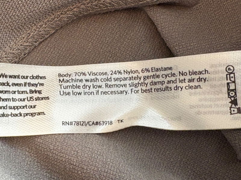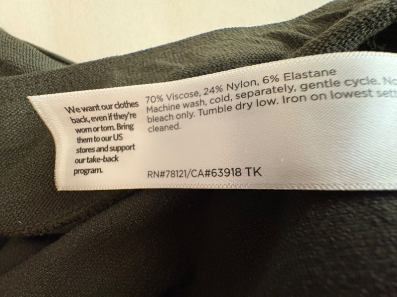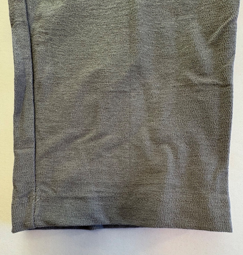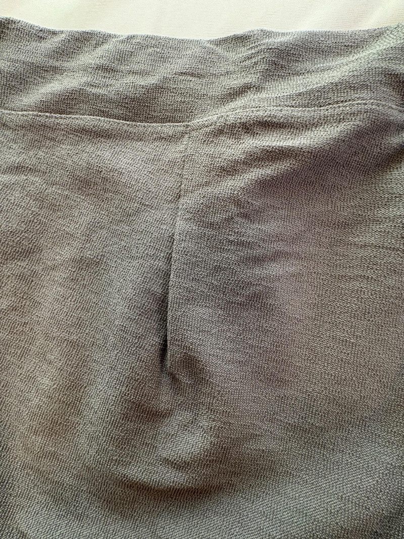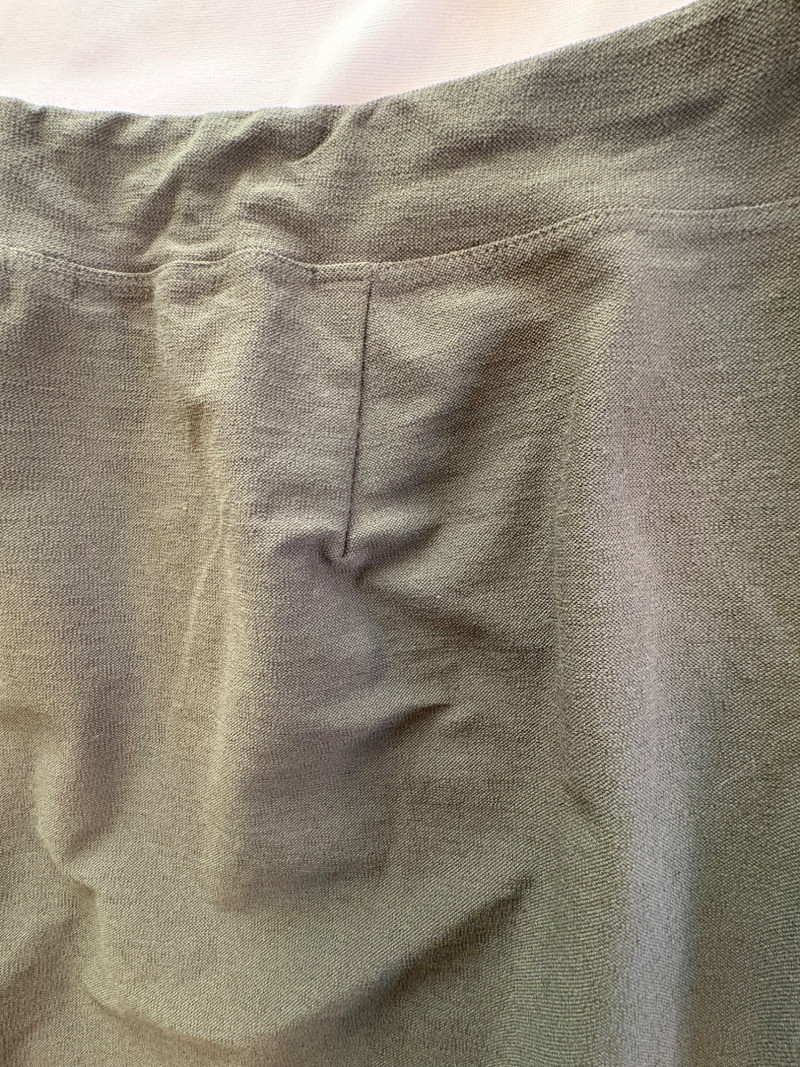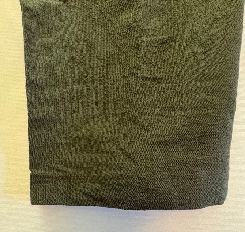 Two pairs of slim stretch pants perfect for under a long sweater or larger shirt/jacket. Both pairs have a wide flat elasticated waistband, back waistline hip darts, and a slim leg. Both are in excellent condition and are made of 70% viscose with 24% nylon and 6% spandex. Dark green pair measures 18.5" side to side at waist with 28" inseam. Size tag says XL. Medium grey pair measures 19" side to side at waist with 28" inseam. Size tag says XL.