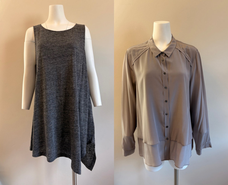 Lot # 122 - Grey Silk Shirt & Knit Tunic - Poetry/Eileen Fisher