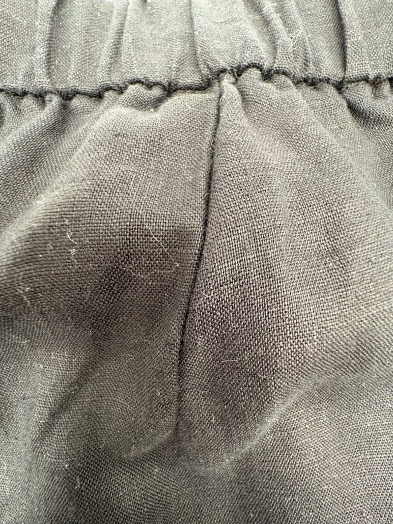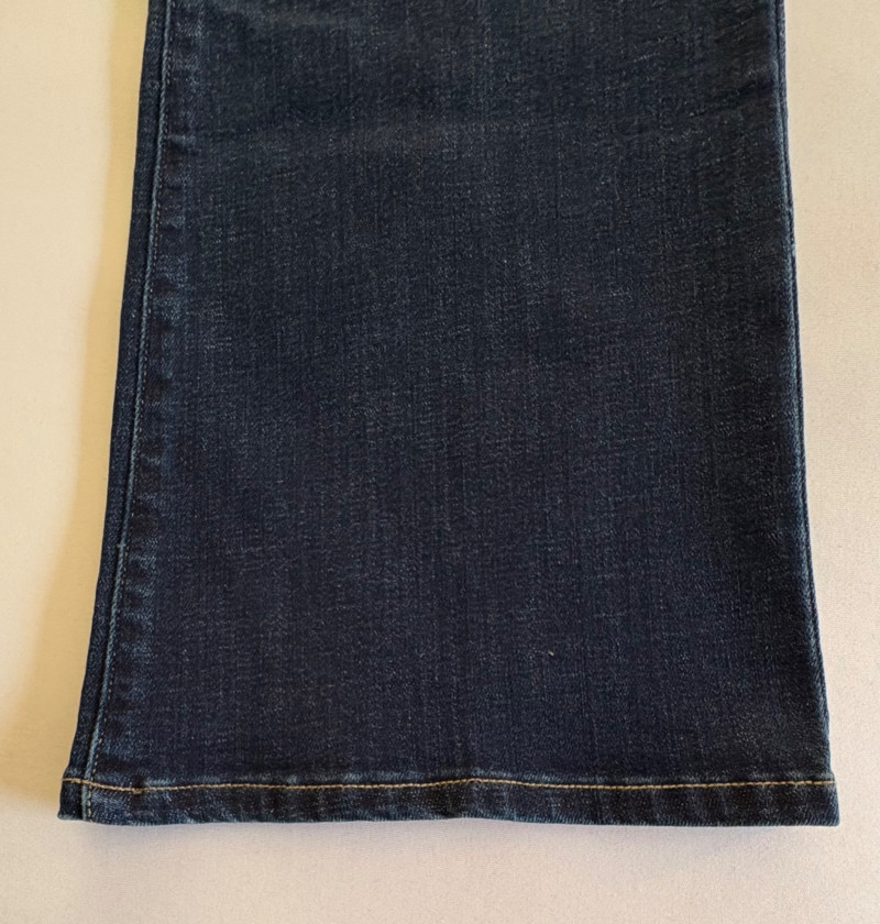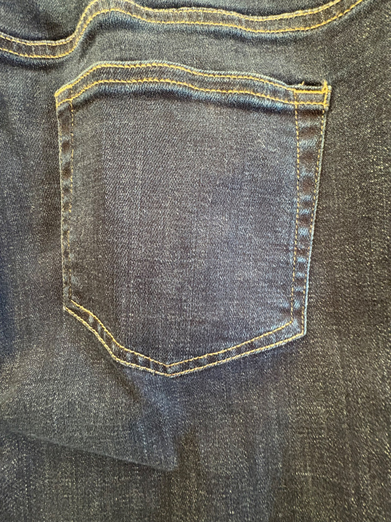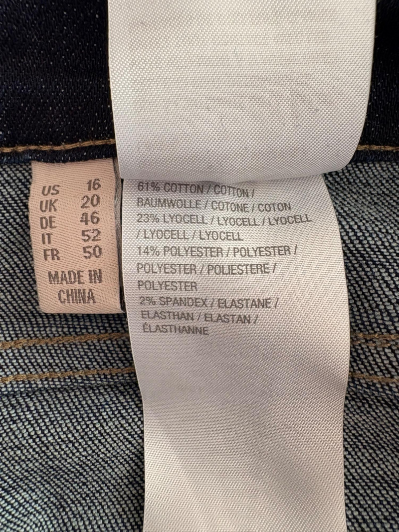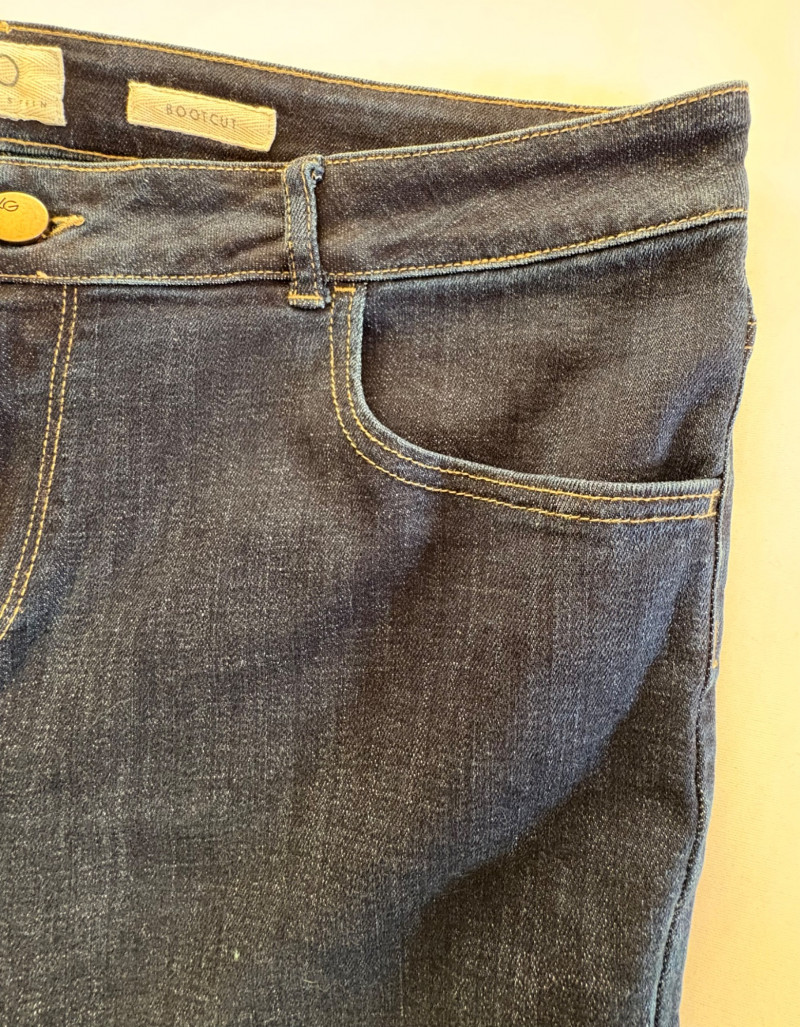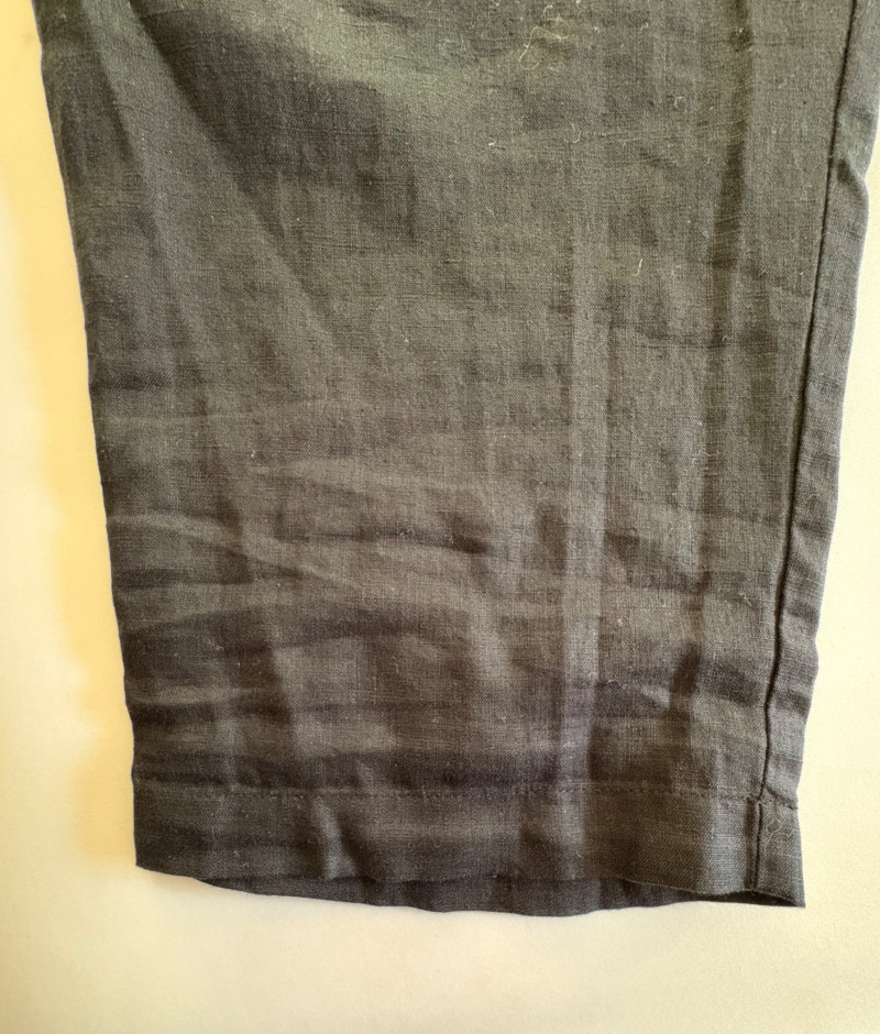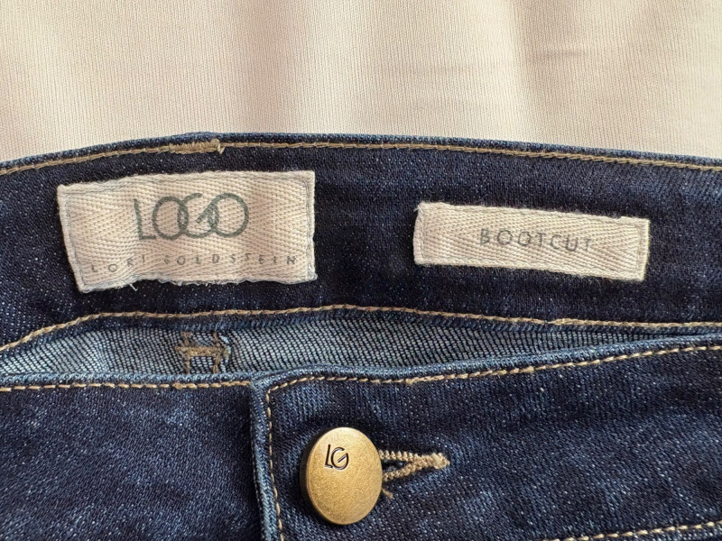Casual and dressy in one lot from Eileen Fisher & Lori Goldstein Logo. Black linen pants have wide elasticated waistband, set-in side front pockets, back darts, and tapered legs. New with tag. 100% linen. Measures 19" side to side at waist with 27" inseam. Size tag says XL. Dark wash denim jeans from Lori Goldstein Logo have zip fly front and classic 5-pocket jeans styling. In excellent condition - no signs of being worn. 61% cotton, 23 % Lyocell,14% polyester, and 2% spandex. Measure 19" side to side at waist with 30.5" inseam. Size tag says 16.