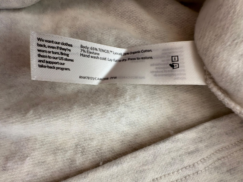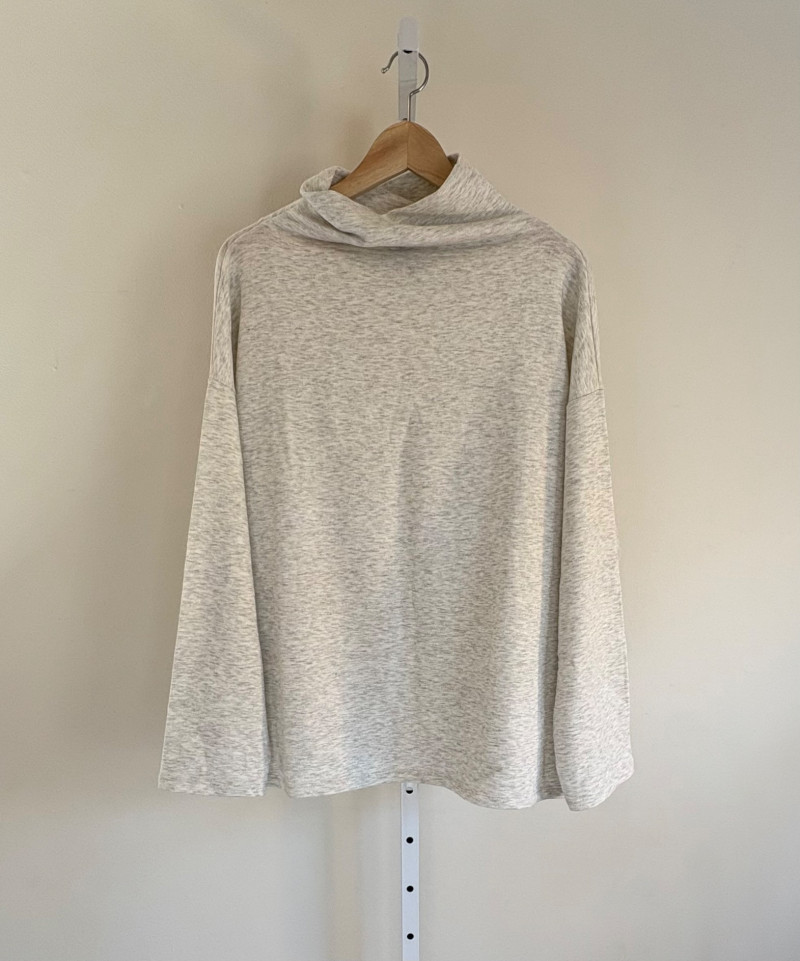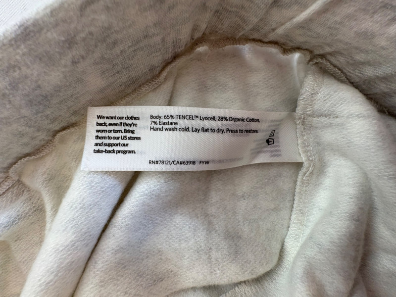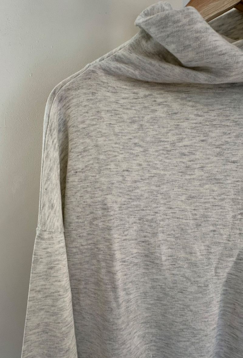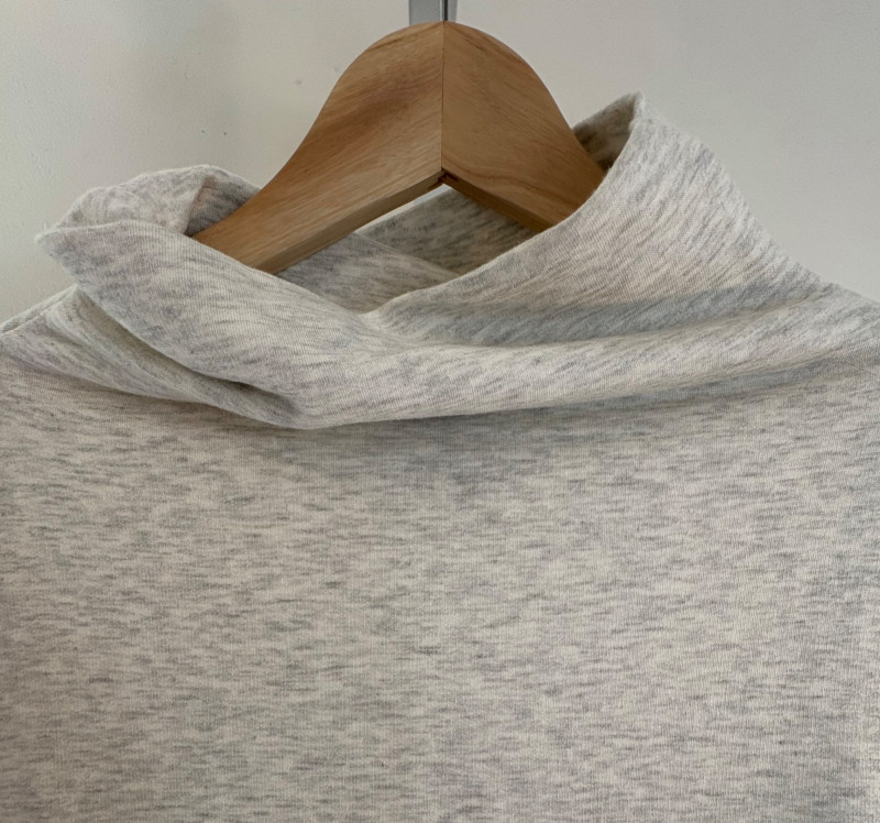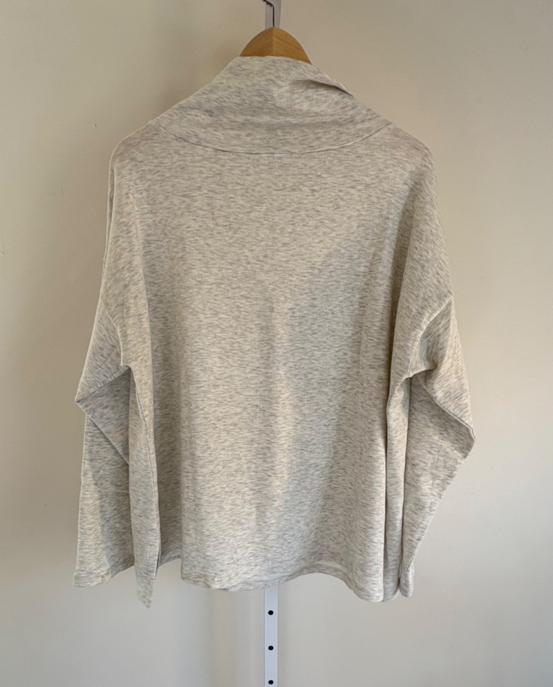 Super soft and comfortable lounge pant & top set from Eileen Fisher. (A bit heavier than some of the other lounge sets up for auction - could possibly be worn with a cardigan & tennis shoes to the supermarket) Smooth and stretchy in pale marled grey & white fabric. Long-sleeve top has funnel neck, dropped shoulder seams, and split hem. In excellent condition. 65% Tencel and 28" cotton with 7% elastane. Measures 26" pit to pit and 24.5" from back collar to bottom back hem. Size tag says XL. Straight leg pants have flat elasticated waistband and in-seam side pockets. In excellent condition. 65% Tencel and 28% cotton with 7% elastane. Measures 17.5" side to side at waist with 27" inseam. Size tag says XL.