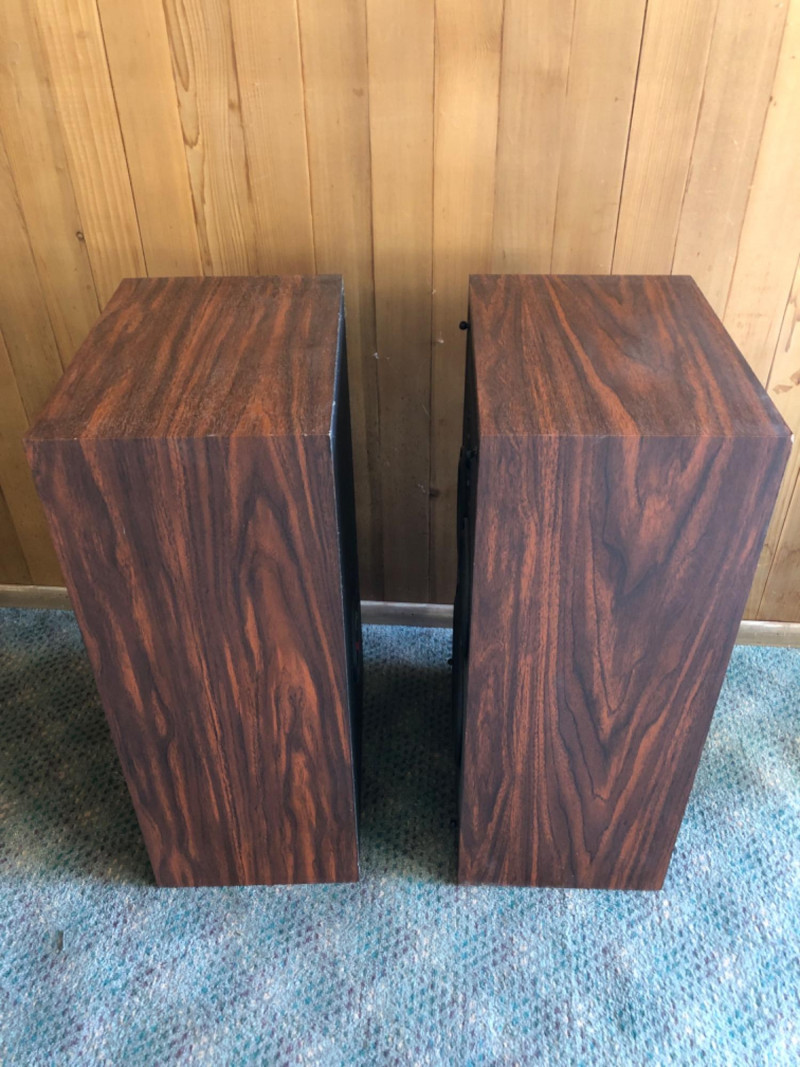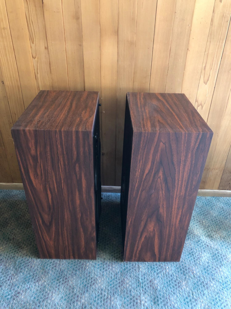Upgrade your audio setup with this classic pair of Polk Audio Monitor 11 floor speakers. These vintage speakers offer rich, room-filling sound thanks to their high-performance 3-way driver configuration and timeless cabinet design. Whether you're a collector or an audiophile, these speakers are a standout addition to any vintage sound system. UNTESTED. Features: Brand: Polk Audio Model: Monitor 11 Configuration: 3-Way (Tweeter, Dual Midrange, Woofer) Matching serial numbers: 10A-108496 and 10A-108489 Includes original removable grille covers Back panel with binding posts and fuse protection Solid wood construction with a beautiful wood grain finish Driver Details: 1 × 1" SL2000 tweeter 2 × 6.5" 6510 midrange drivers 1 × 10" fluid-coupled subwoofer Technical Specifications: Frequency Response: 19Hz – 26kHz Impedance: 6 Ohms Recommended Power: 10 – 200 watts per channel Efficiency: 92 dB Bidding on this lot is an agreement that: (1.) You will have 2 capable, able-bodied persons to lift and load at a minimum. (2.) You