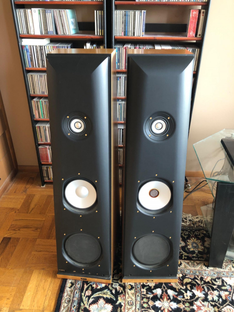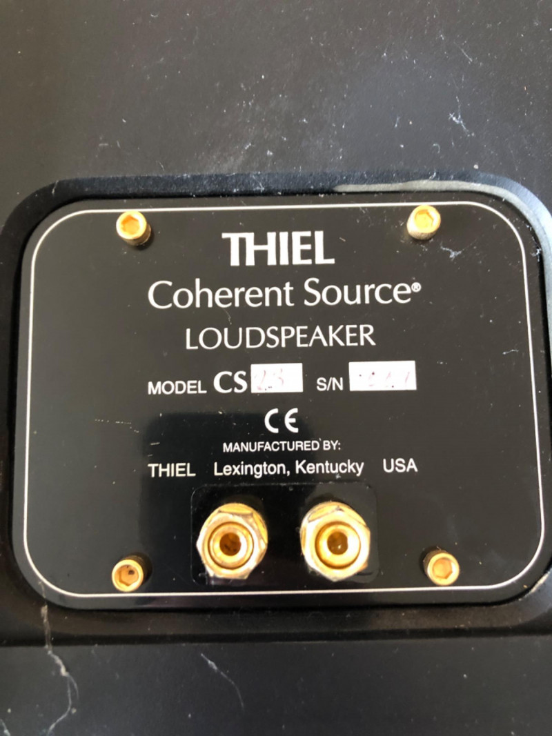 This pair of Thiel CS2.3 Coherent Source® loudspeakers delivers exceptional sound quality with precise imaging and time-coherent performance. Designed for audiophiles, these three-way speakers feature a coaxial midrange/tweeter and a separate woofer in a sloped baffle cabinet. UNTESTED. Circa 1990s NOTE: The cone on one of the middle speaker is missing. See 6th photo Features: Three-way Coherent Source® design Removable fabric grilles Bi-wire compatible binding posts Real wood veneer cabinets Manufactured in the USA Bidding on this lot is an agreement that: (1.) You will have 2 capable, able-bodied persons to lift and load at a minimum. (2.) You