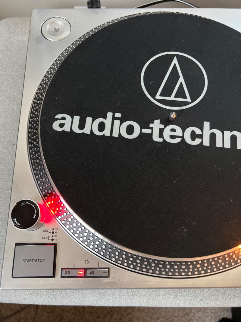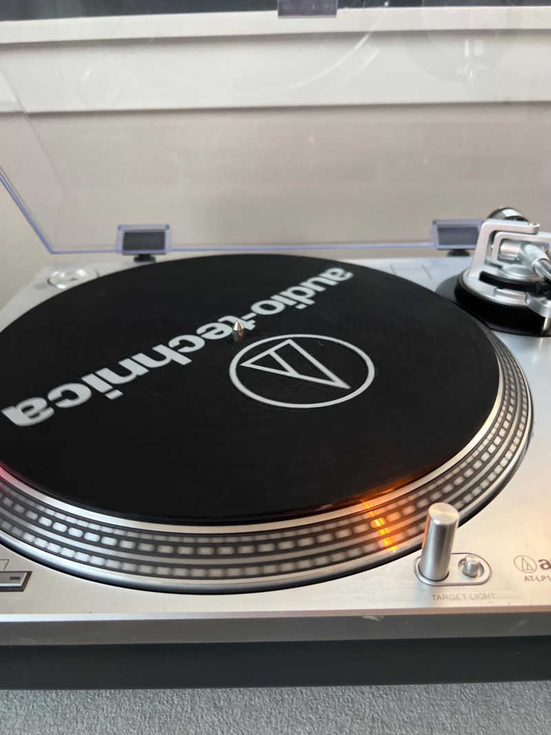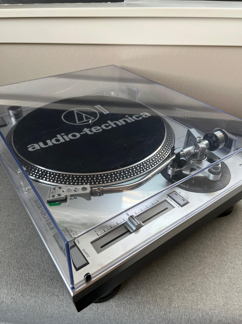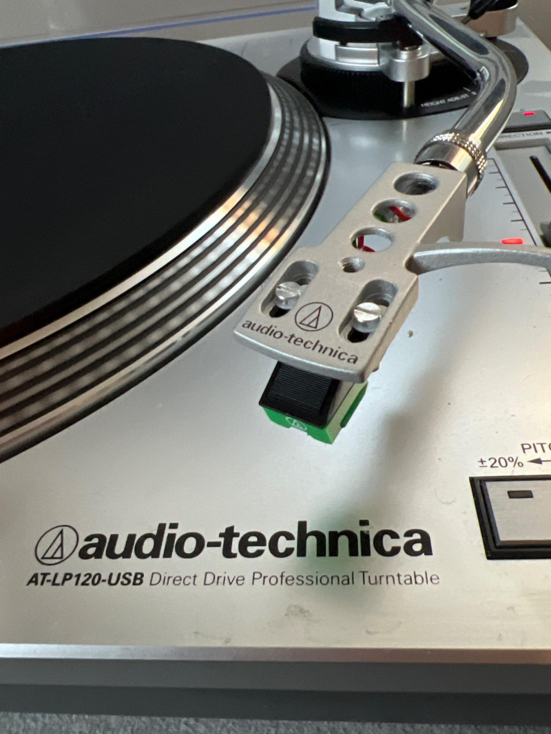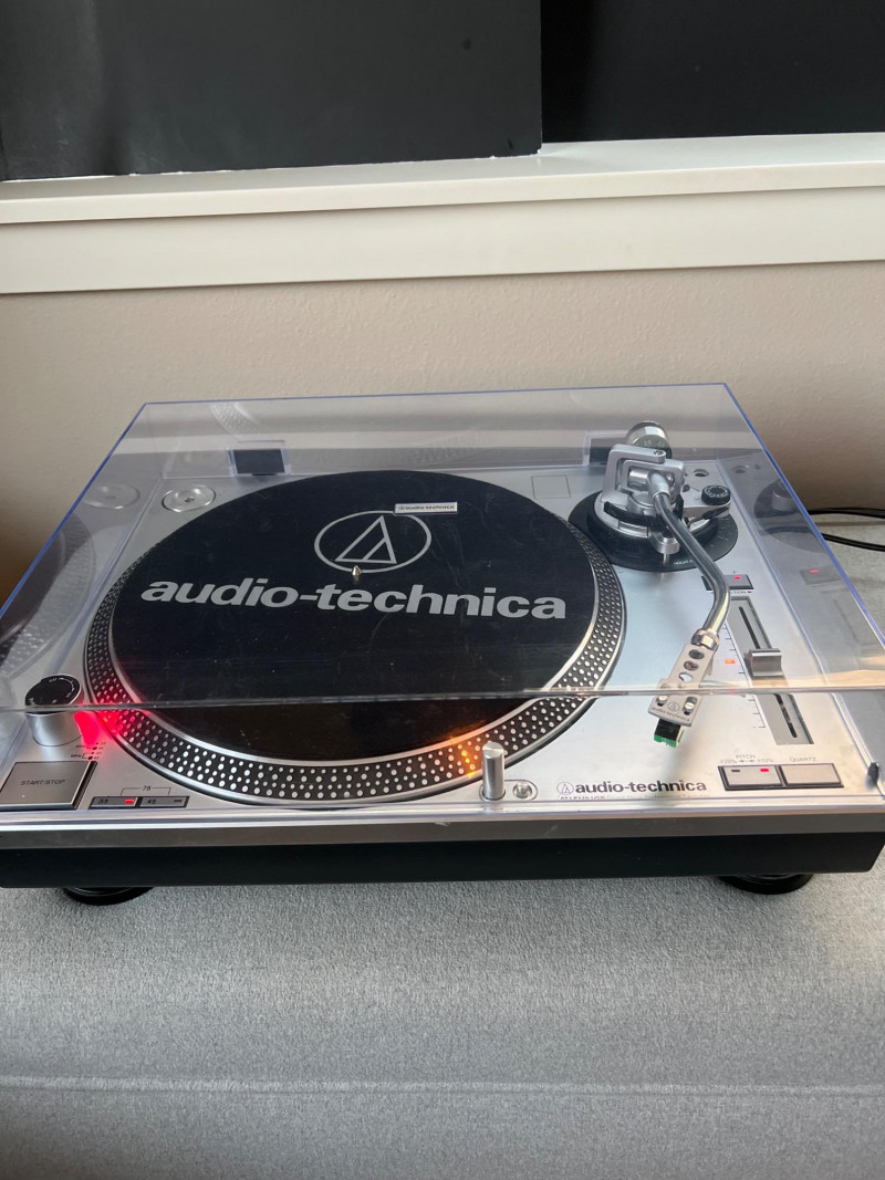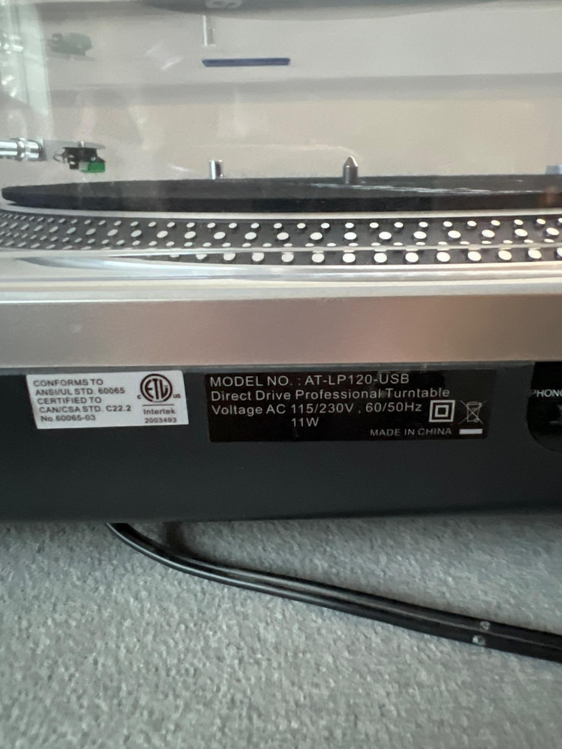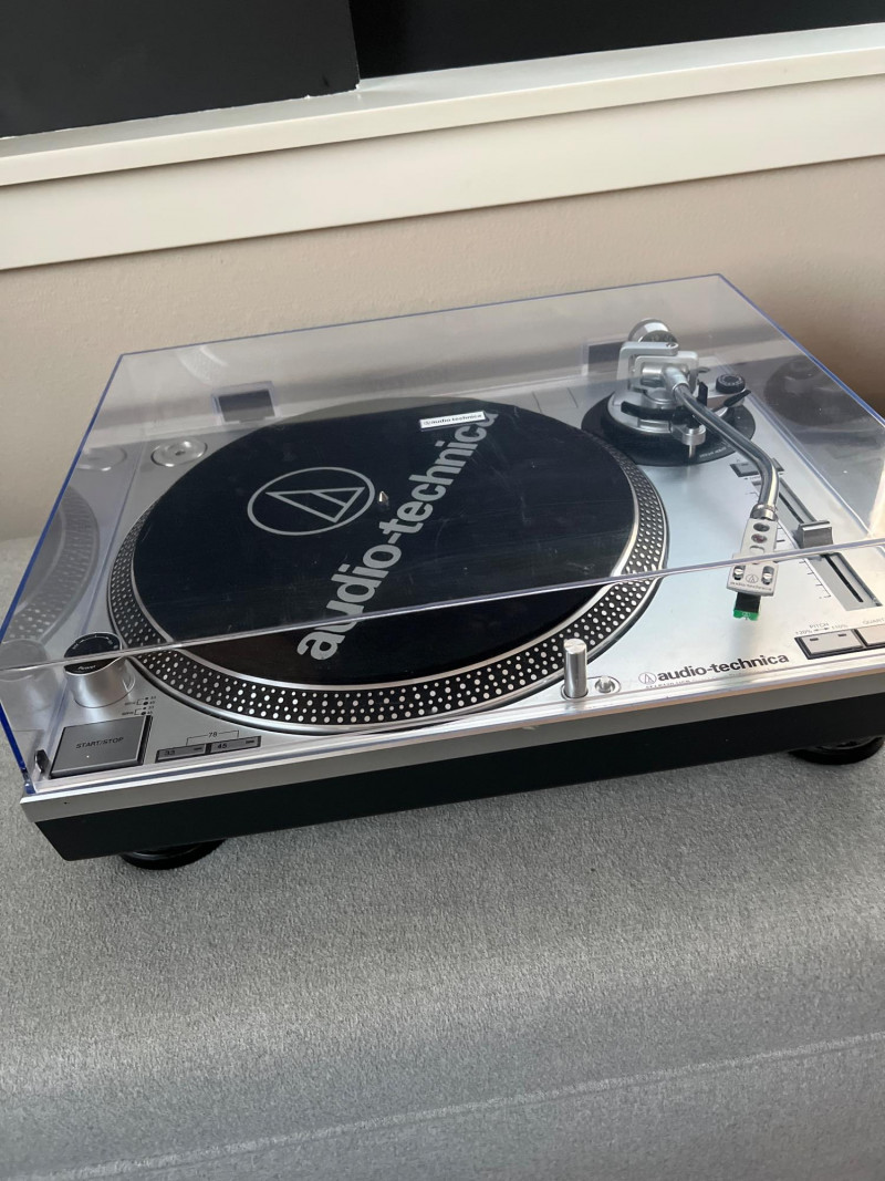 Experience high-fidelity vinyl playback with this Audio-Technica AT-LP120-USB turntable. This professional-grade unit features a direct-drive motor, USB output for digital conversion, and built-in selectable phono preamp. The sturdy aluminum platter, adjustable counterweight tonearm, anti-skate control, and replaceable Audio-Technica cartridge ensure precision performance. With start/stop buttons, pitch control, and a sleek silver finish, it’s ideal for DJs, audiophiles, and collectors alike. Includes dust cover, RCA cables, and power cord. Model: AT-LP120-USB Turntable has not been fully tested. It does power on, turntable turns but no records have been tested on the unit.