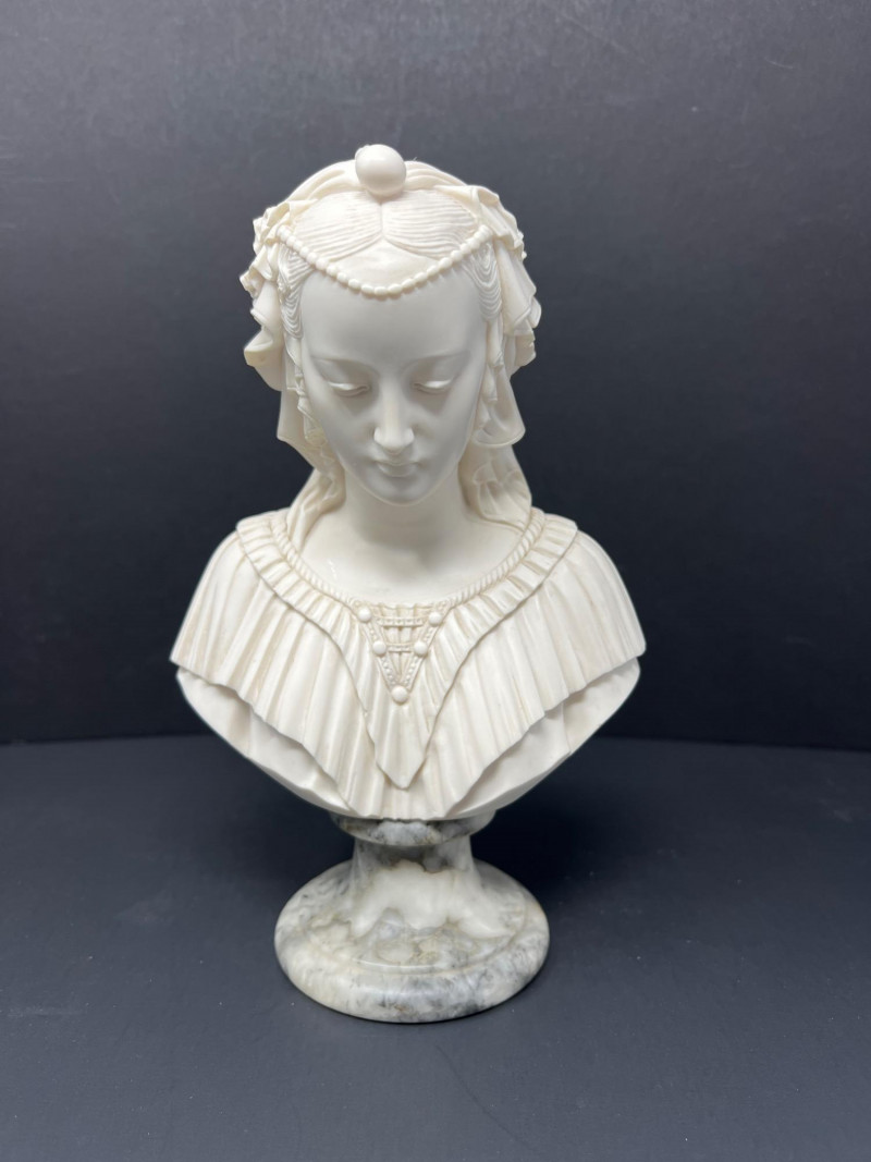 Lot # 10 - Alabaster Marble Bust – Angelica Maria by A. Giannelli, 1940 (Italy)