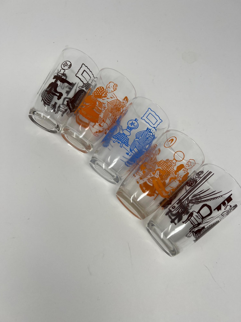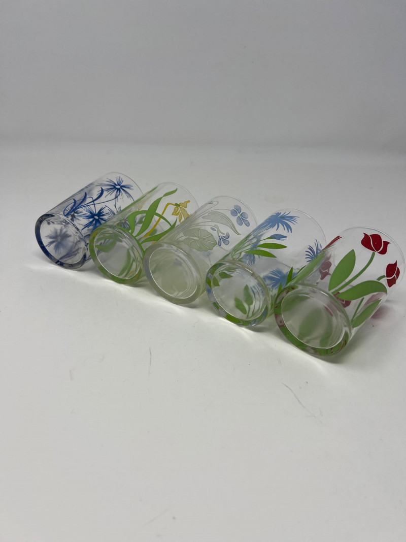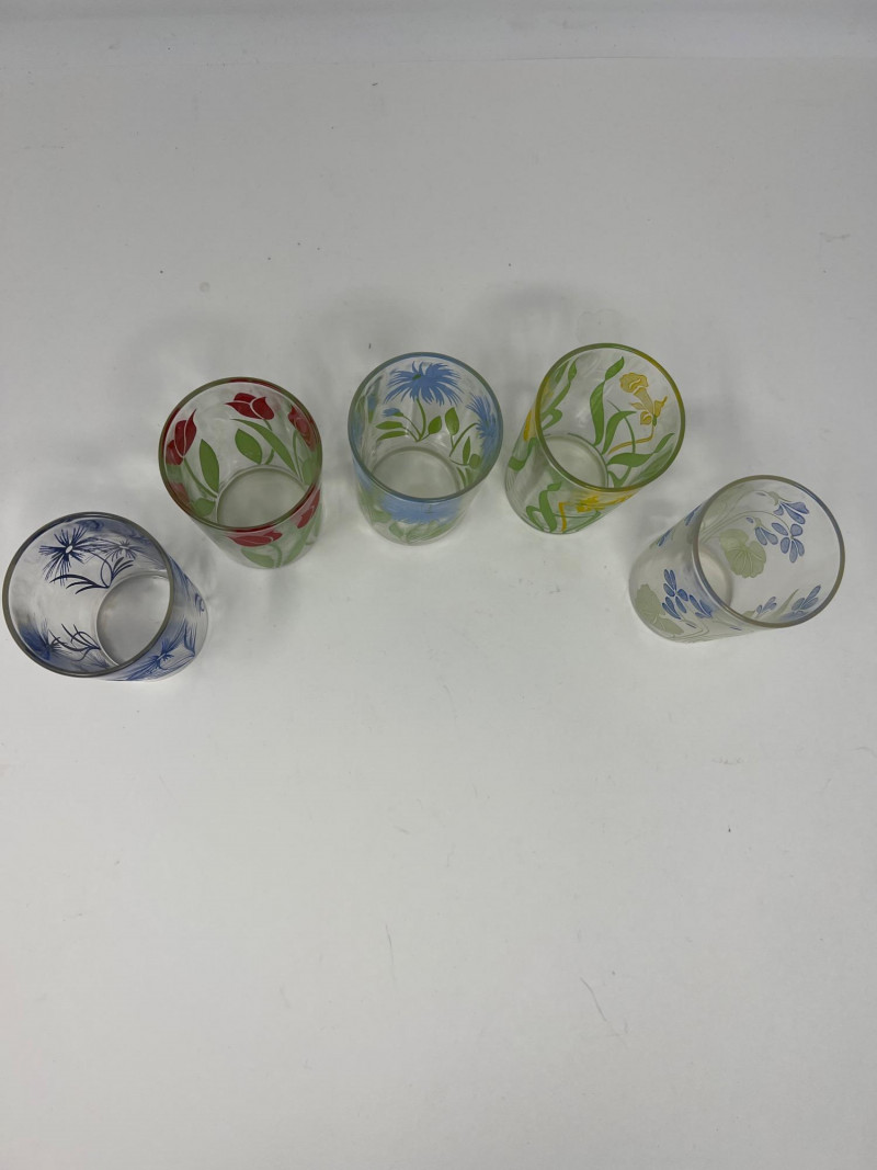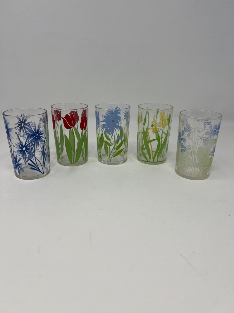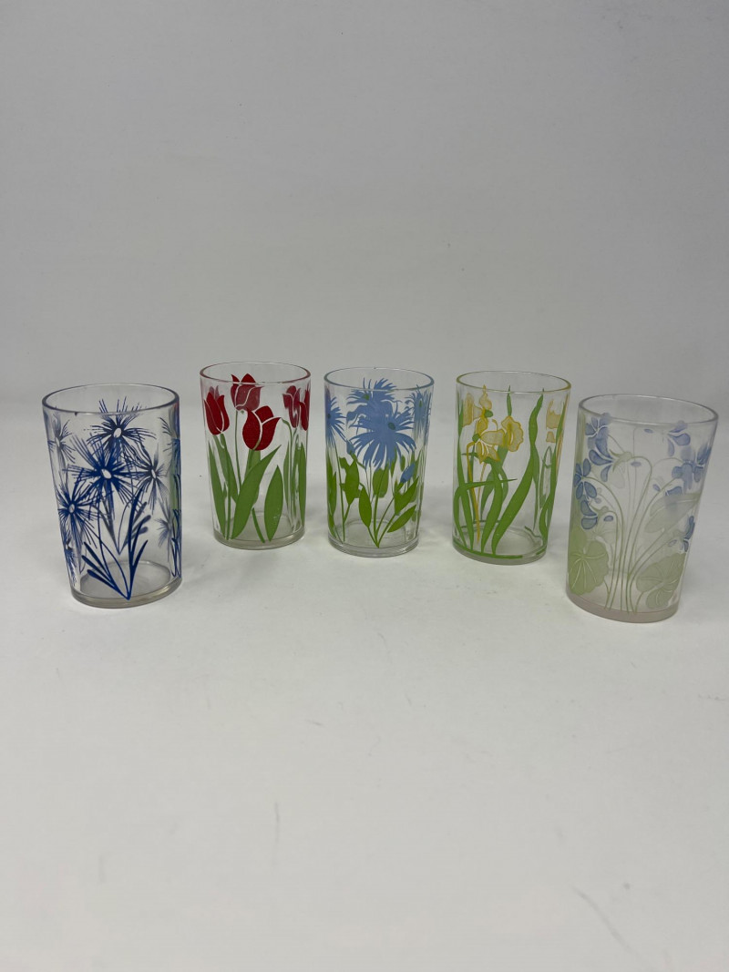 Lot # 96 - Ten Retro Libbey Juice Glasses – Floral & Folk Art Designs
