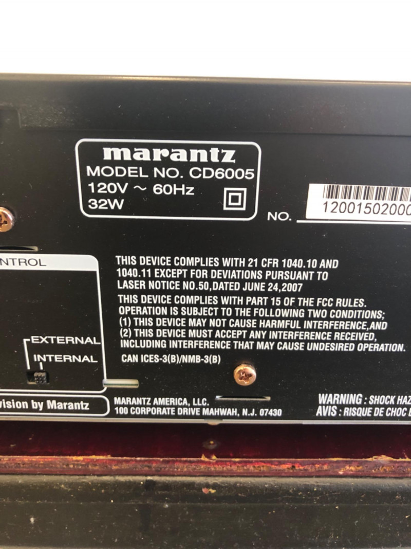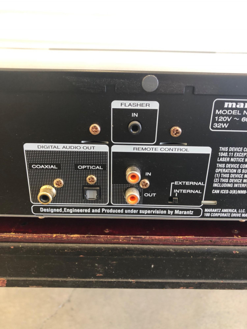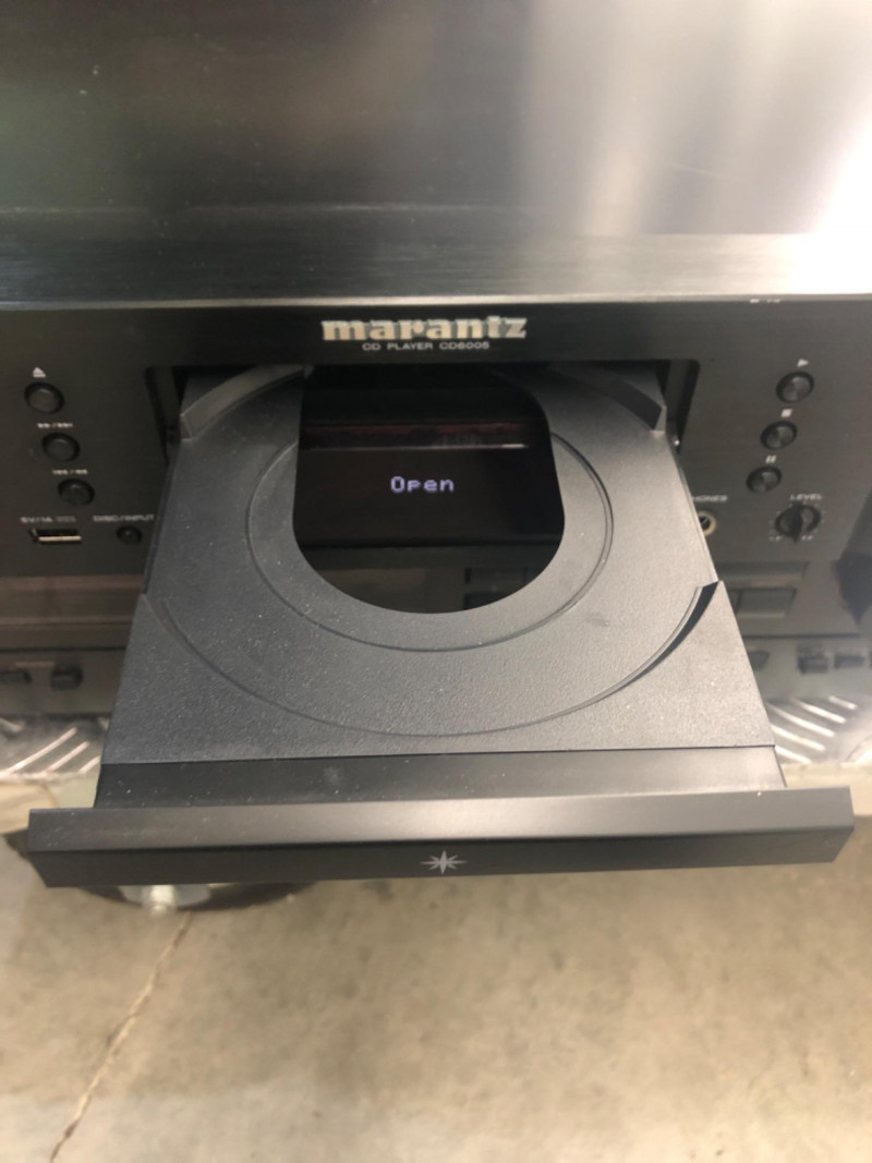 This listing features a Marantz CD6005 CD Player, a high-quality unit known for its audiophile-level performance and detailed sound reproduction. The unit powers on and responds to controls (e.g. open/close tray, reading display), but has not been fully tested, so it is being sold as-is. Model: CD6005 Key Features: Front USB input (5V/1A) for compatible devices Optical and coaxial digital audio outputs Dedicated headphone output with adjustable volume knob Remote control ports (in/out) Solid build with Marantz's signature design and audio tuning Powers on but not fully tested
