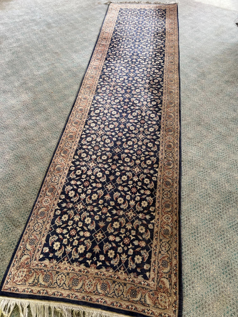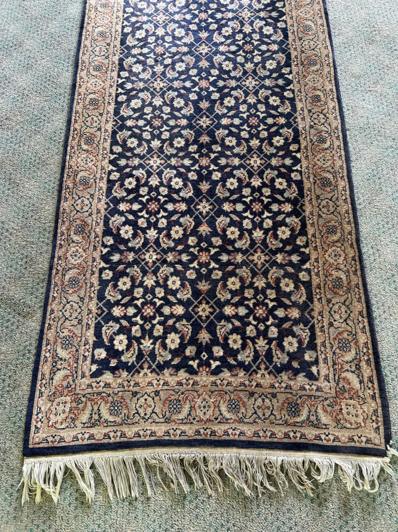 Lot # 35 - Hand-Knotted Persian Tabriz Runner Rug – Navy Floral Pattern