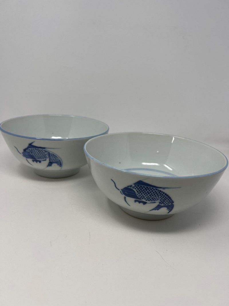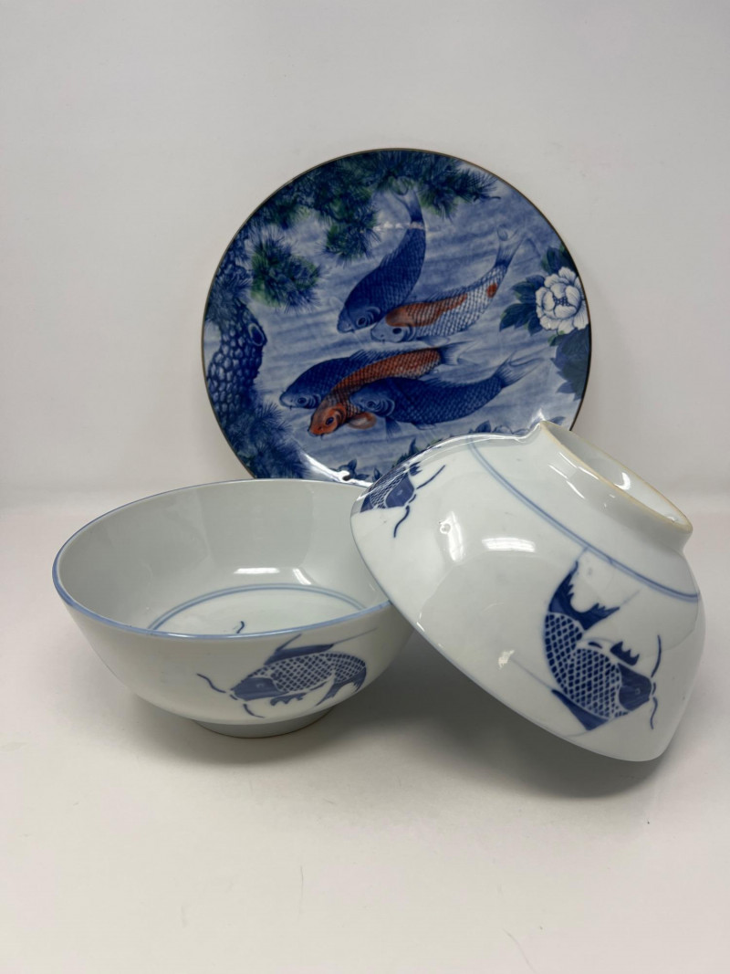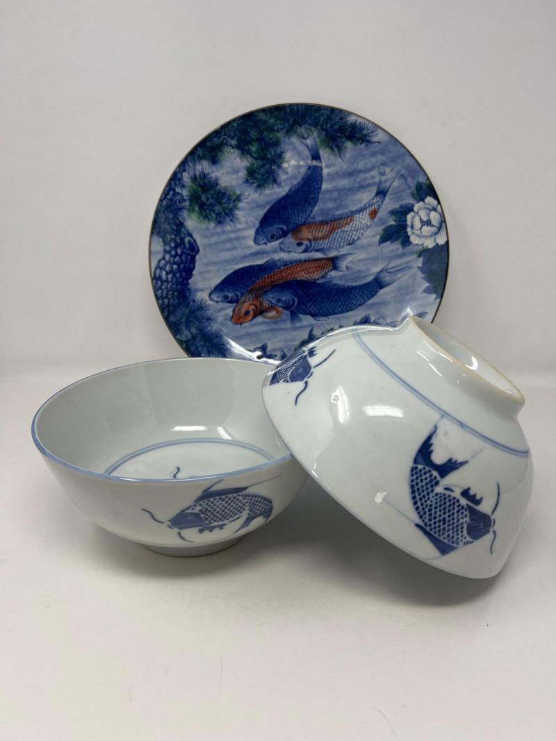 Lot # 46 - Asian Koi Fish Plate & Bowl Set – Japan & China