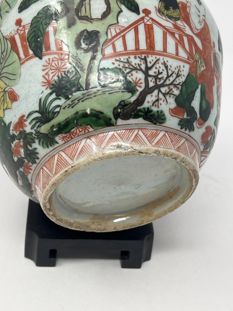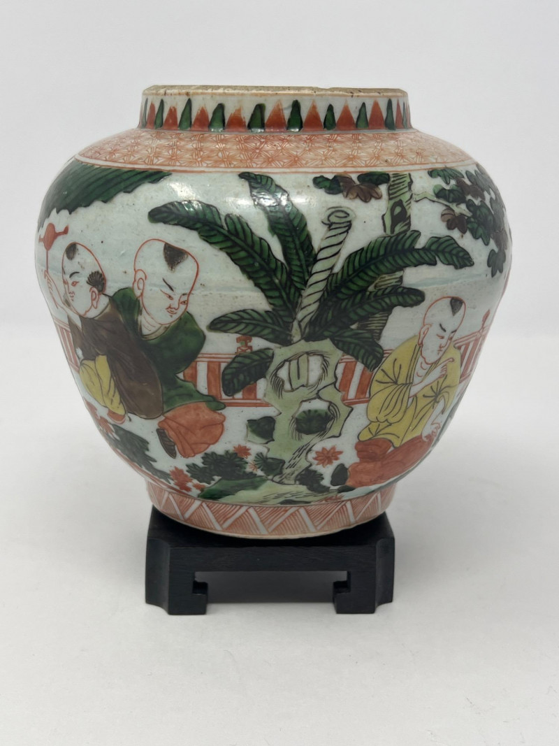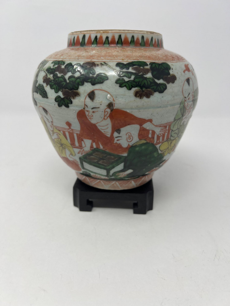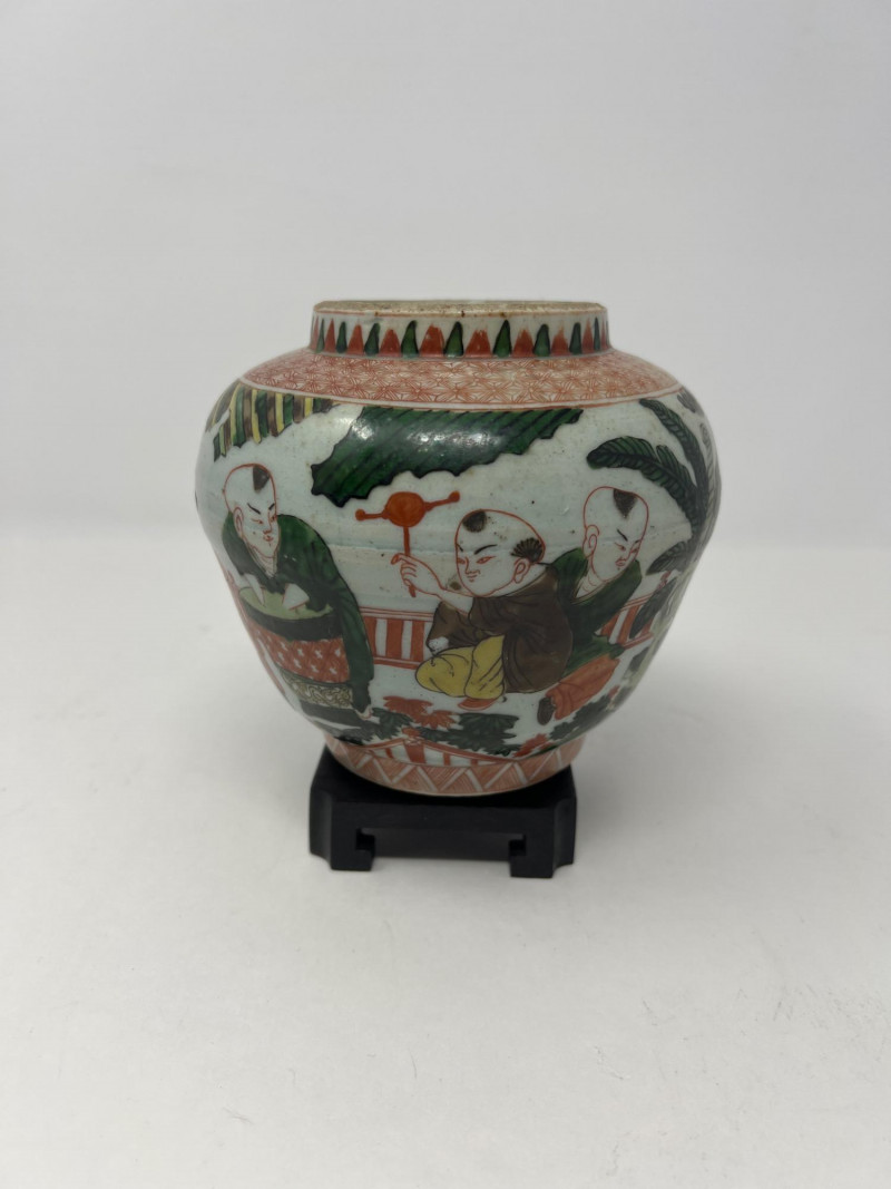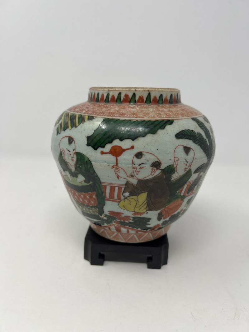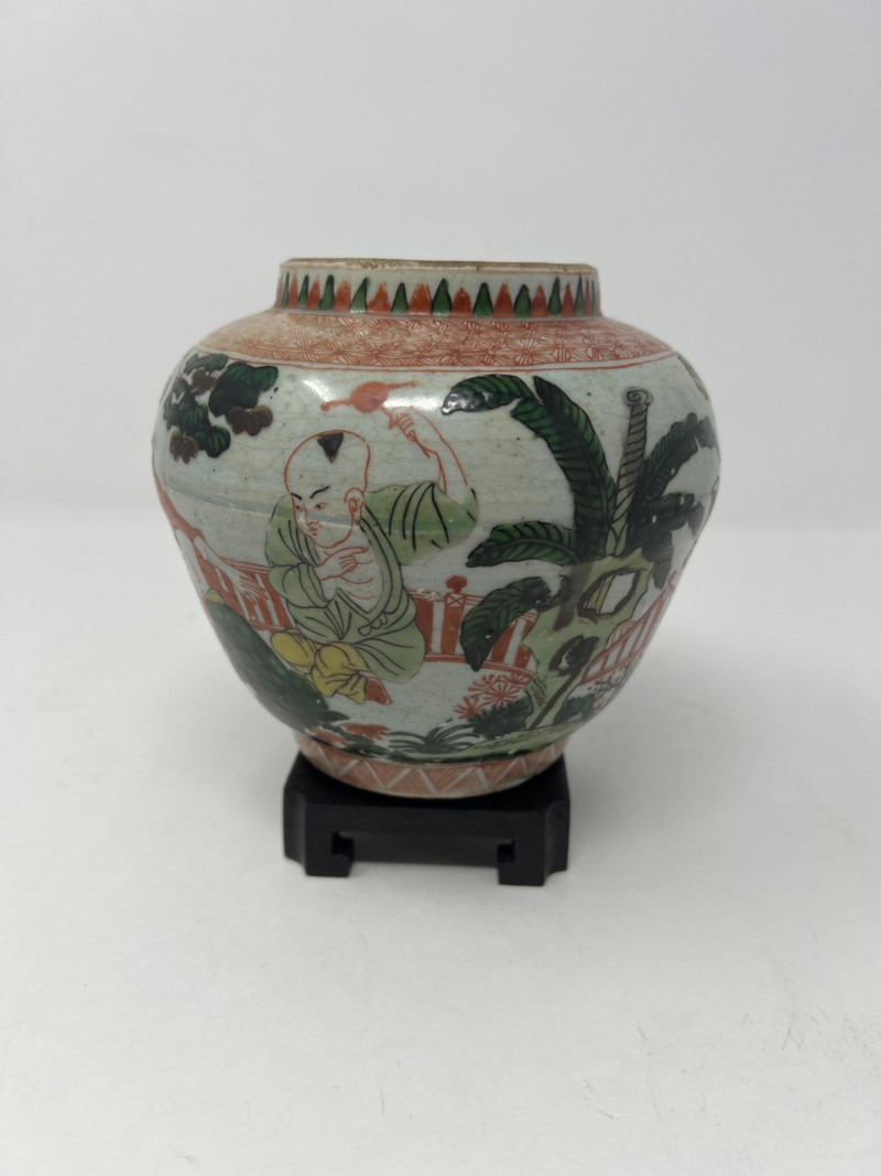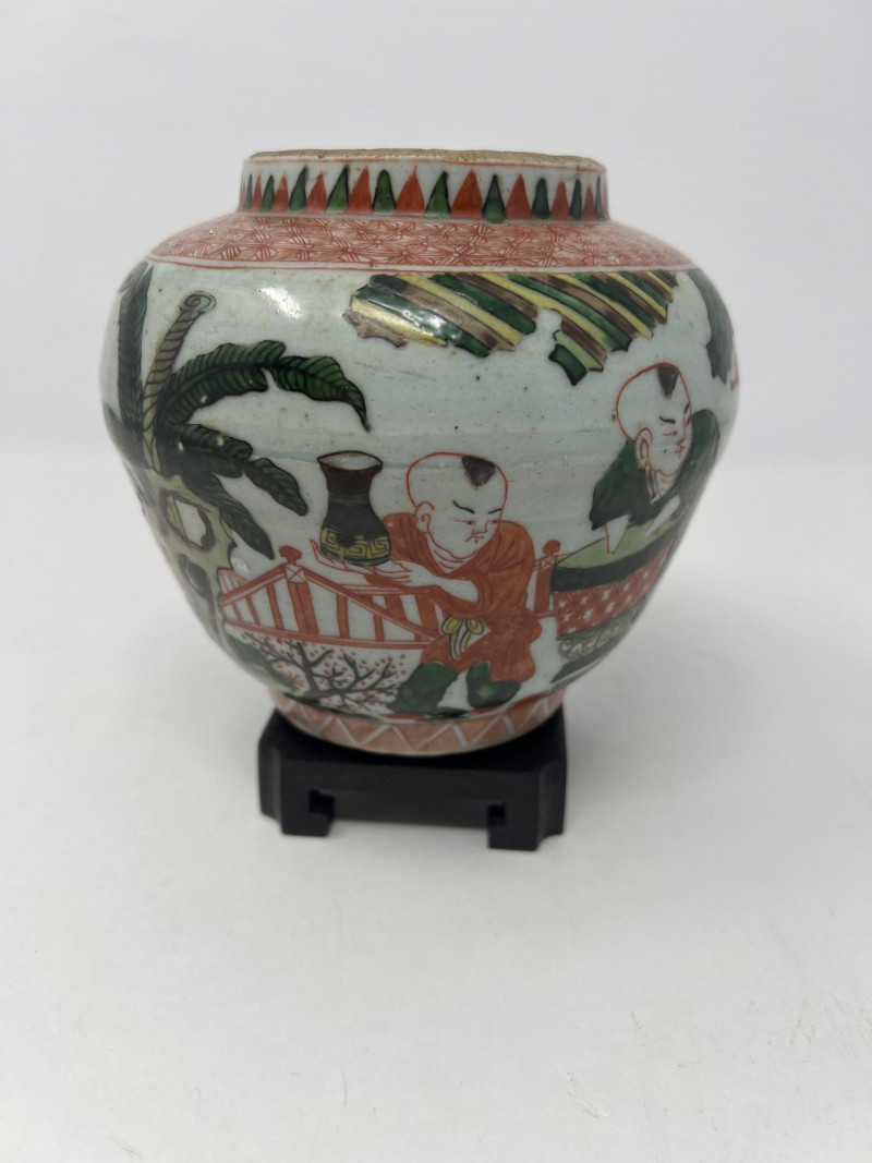 Lot # 47 - Chinese Wucai Pot Jar with Stand