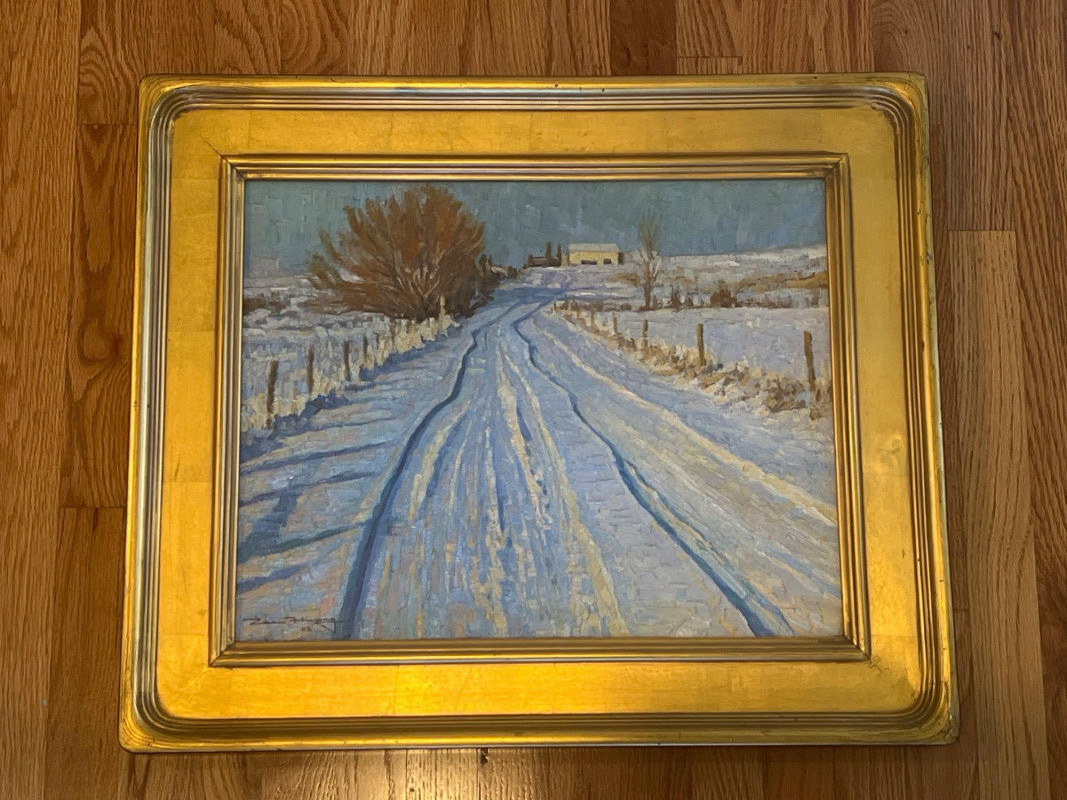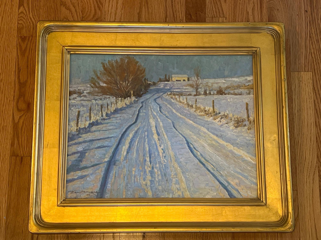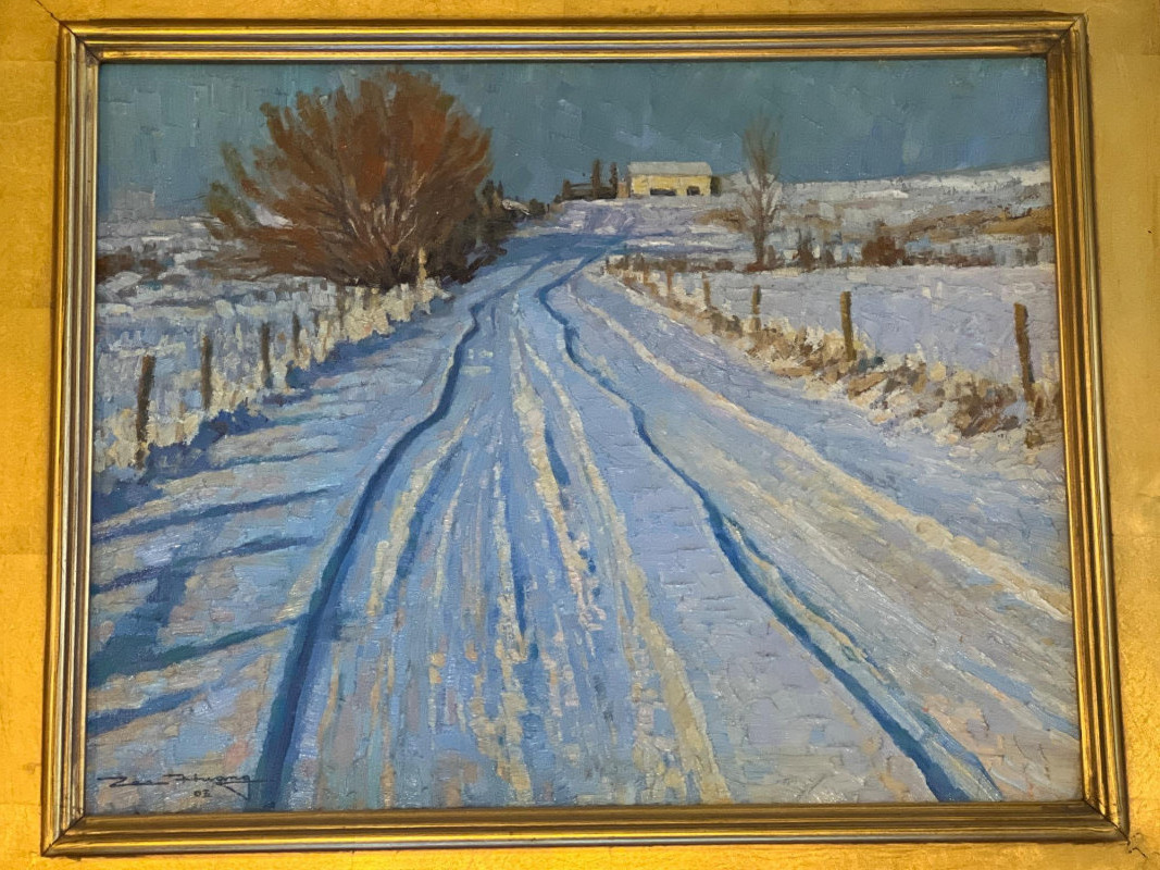 Lot # 48 - Snow Covered Ranch Road by Zee Huang – 16x20 Original Oil Painting