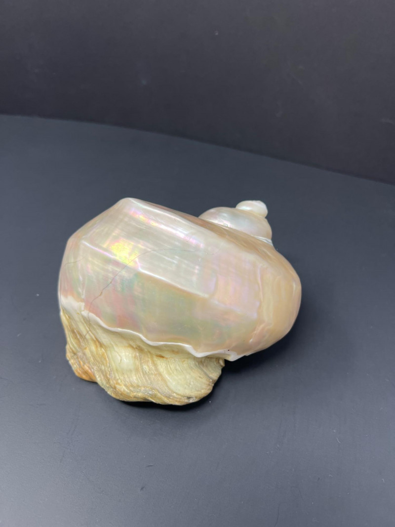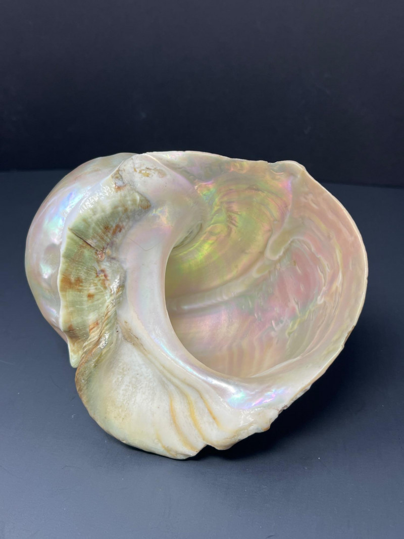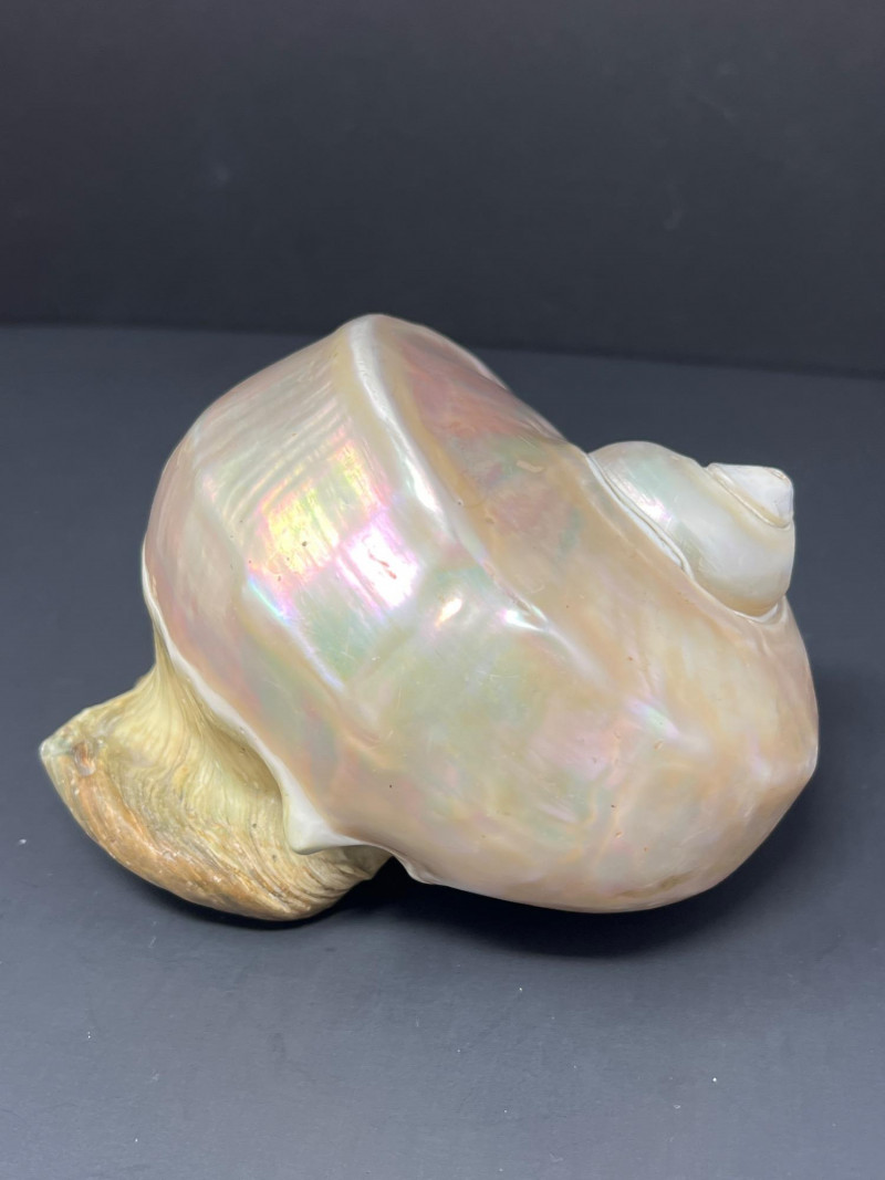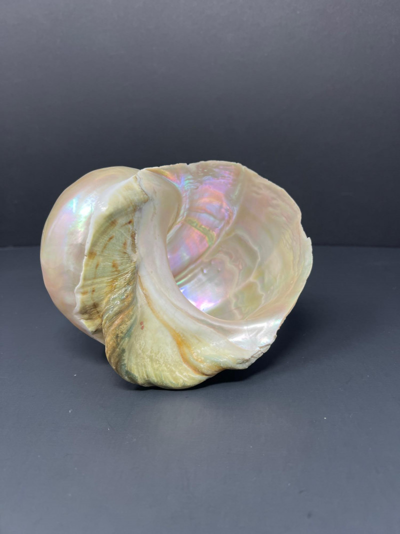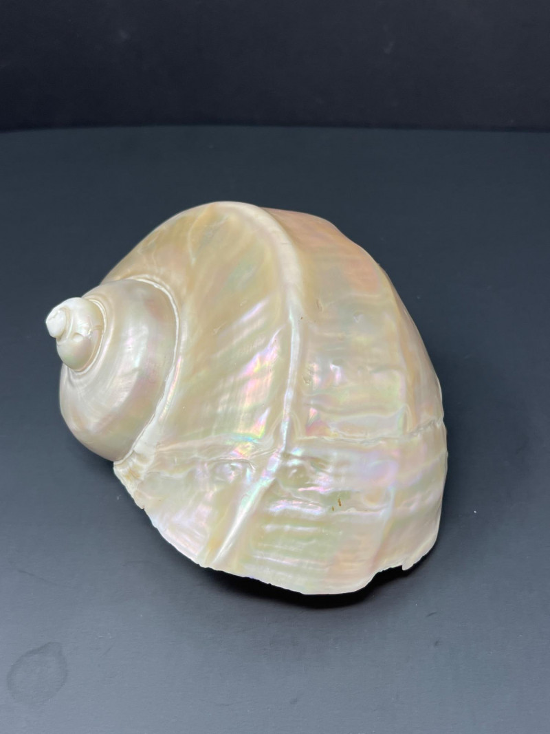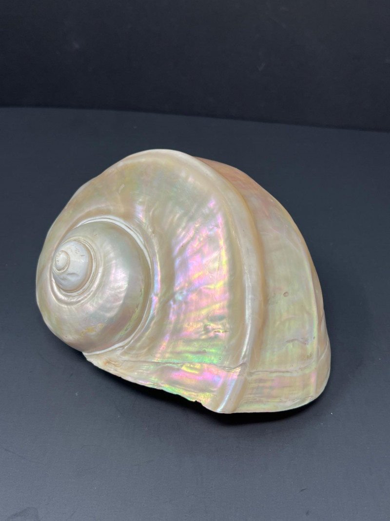 This stunning pair of Mother of Pearl Turbo shells showcases natural iridescence and creamy, pearlescent tones with hints of pink, green, and gold. These polished shells feature a spiral design and lustrous finish. Material: Natural Turbo shells with mother of pearl finish Quantity: 2 shells