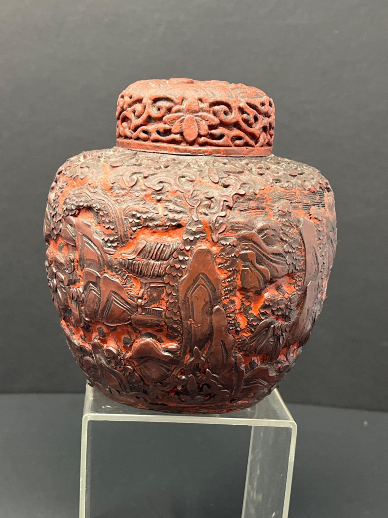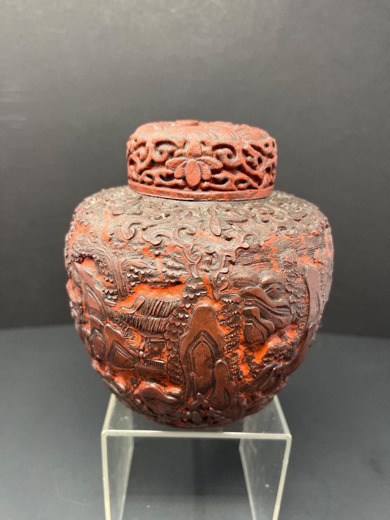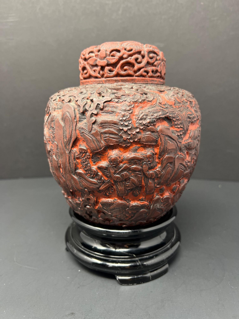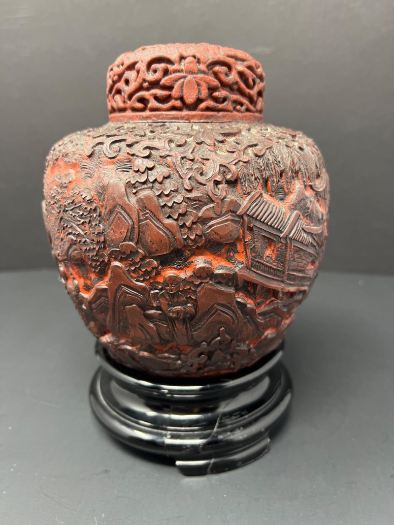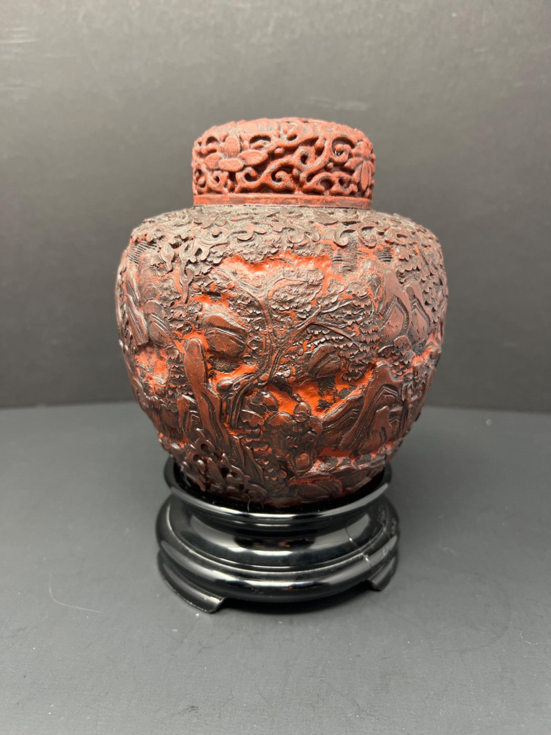 Lot # 57 - Cinnabar Ginger Jar with Porcelain Base