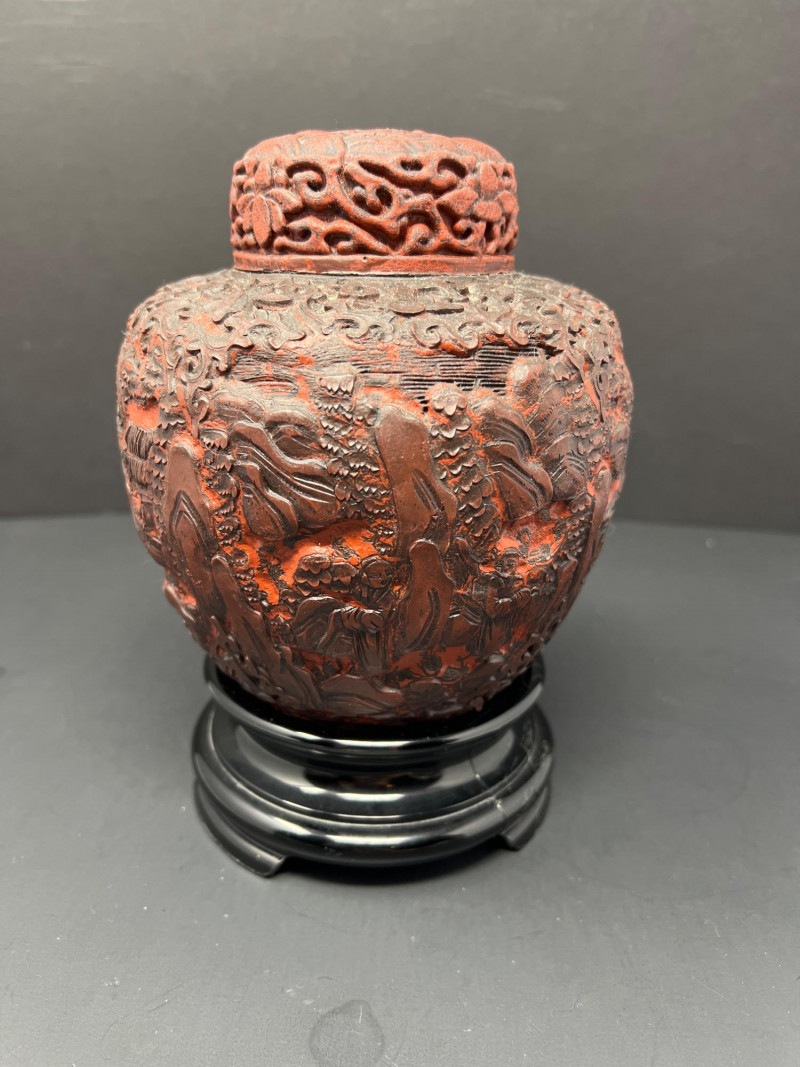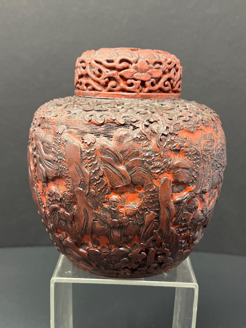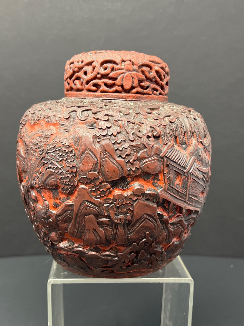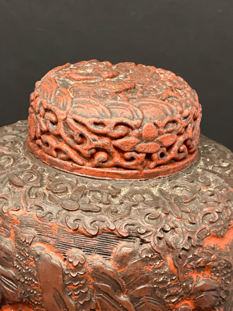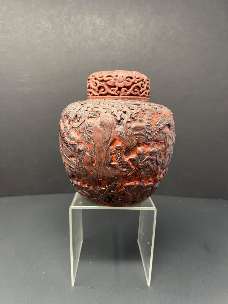 Lot # 57 - Cinnabar Ginger Jar with Porcelain Base