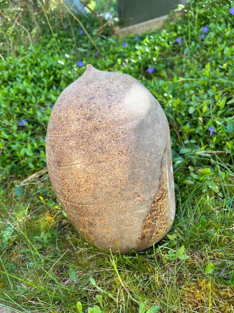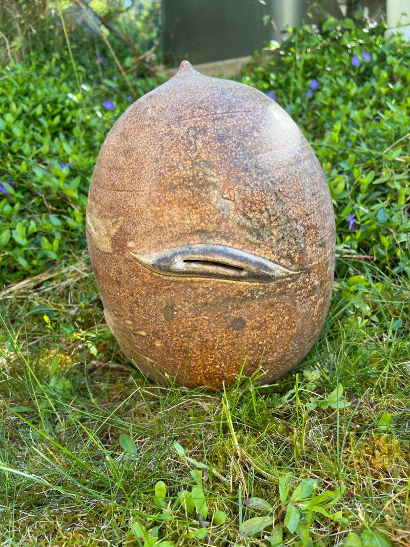 Add a whimsical and earthy touch to your outdoor space with this unique collection of garden artisan pottery art. A handcrafted sculpture features an organic, abstract form with rich natural textures and earthy tones, blending beautifully into a garden or green setting. The sculptural forms resemble pod-like or humanoid shapes with expressive, stylized features. Made from high-fired stoneware, these pieces are weather-resistant and perfect for outdoor display year-round. Each sculpture is individually signed with an artist’s mark on the base. This is a one-of-a-kind set ideal for collectors of artisan ceramics, garden decorators, or anyone who appreciates bold and imaginative handmade art. Quantity: 4 ceramic sculptures Material: Stoneware clay Origin: Artisan handmade