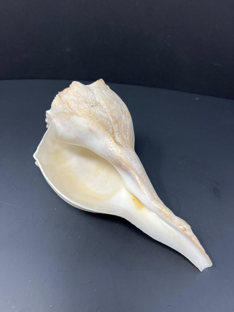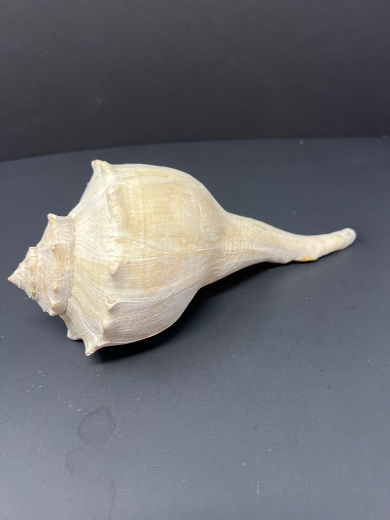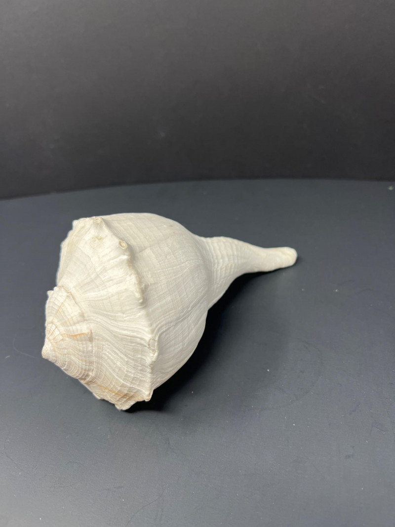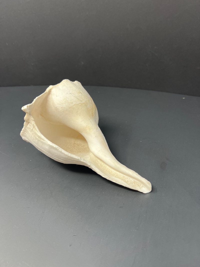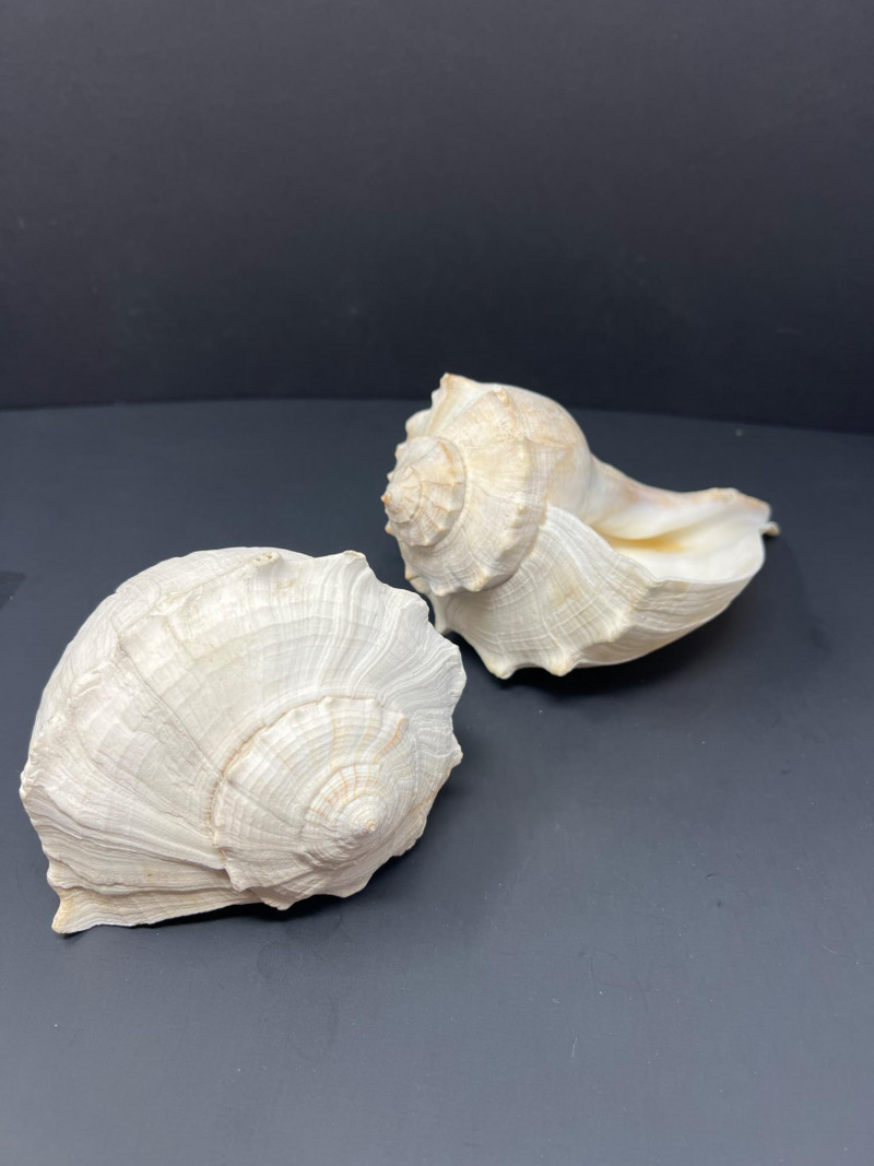 Left Handed Lightning Whelk Busycon Contrarium This listing features a beautiful pair of natural sea shells with a creamy white color and intricate spiral ridges. These shells showcase organic texture and subtle natural patterns, making them perfect for coastal decor, crafting, or display. Each shell has a distinct form with gently curved edges and a smooth inter ior. Quantity: 2 shells Color: Off-white / Light beige