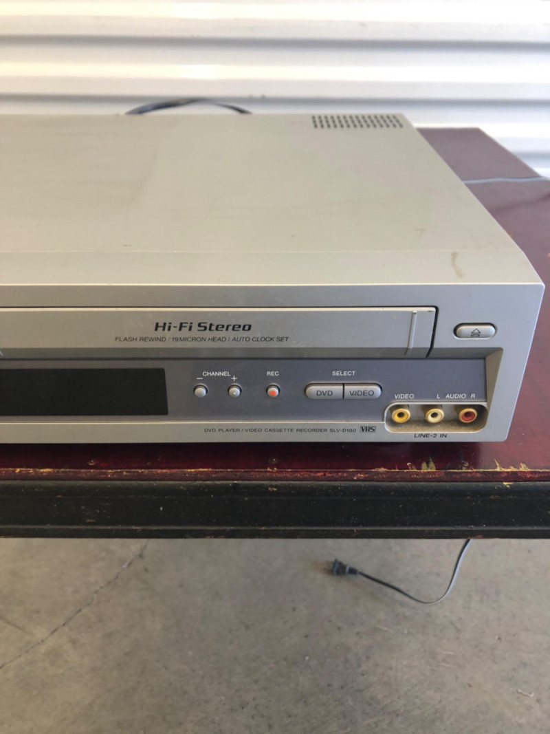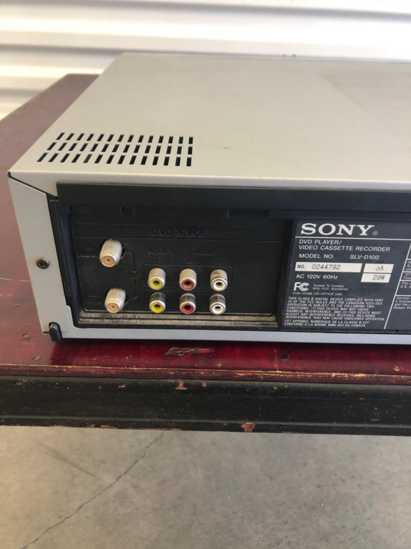 This listing includes two vintage multimedia units: Denon HD Transport Blu-ray Player – Model DVD-2500BTCI High-end Blu-ray transport designed for use with external AV receivers Features: Blu-ray disc compatibility, HDMI output, RS-232C port, and Java/Kodak Picture CD support Unit powers on (see photo with lit power button and open disc tray), but full functionality not tested No power cord included Approx. dimensions: 5.5" H x 17" W x 15" D Sony DVD/VHS Combo Player – Model SLV-D100 All-in-one DVD player and VHS recorder Front panel inputs, composite output, and stereo sound Unit powers on (display lights up) but full testing not performed Includes attached power cord Approx. dimensions: 4" H x 17" W x 13" D