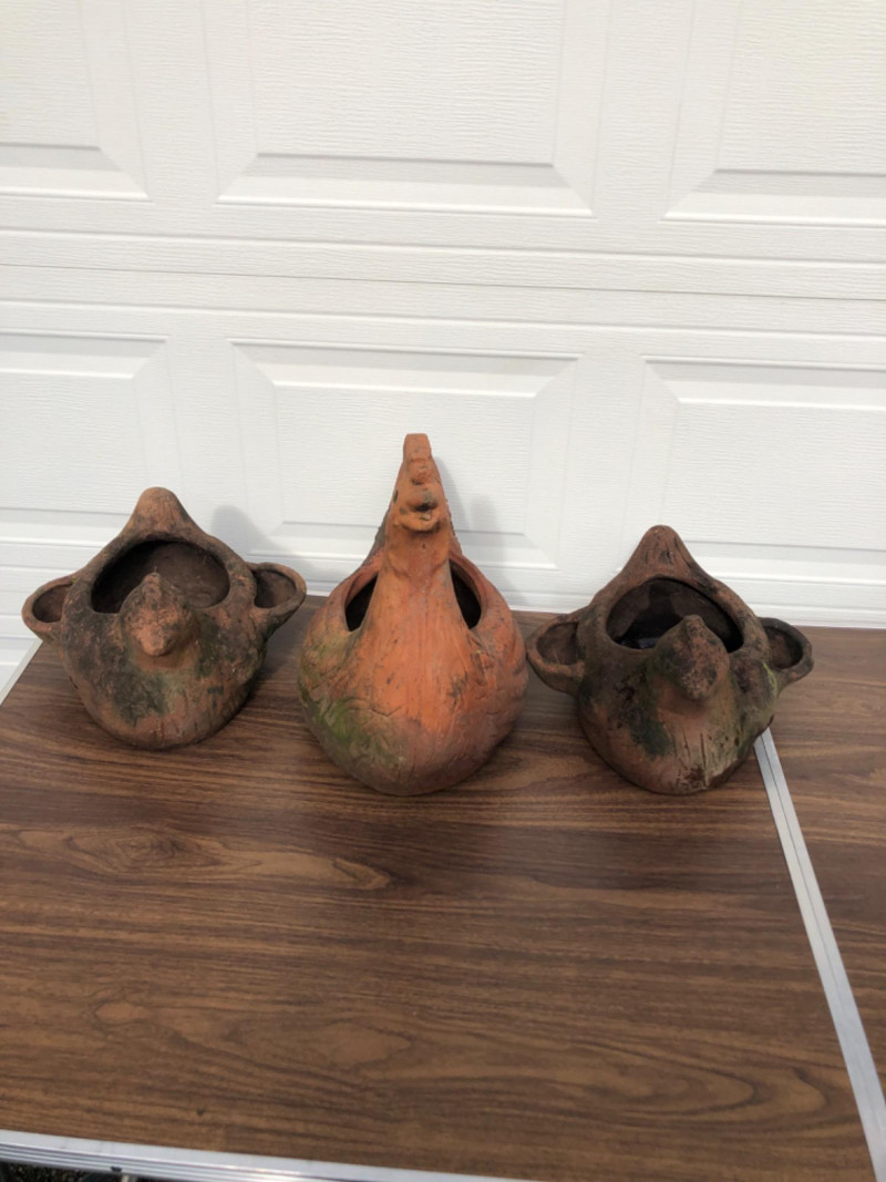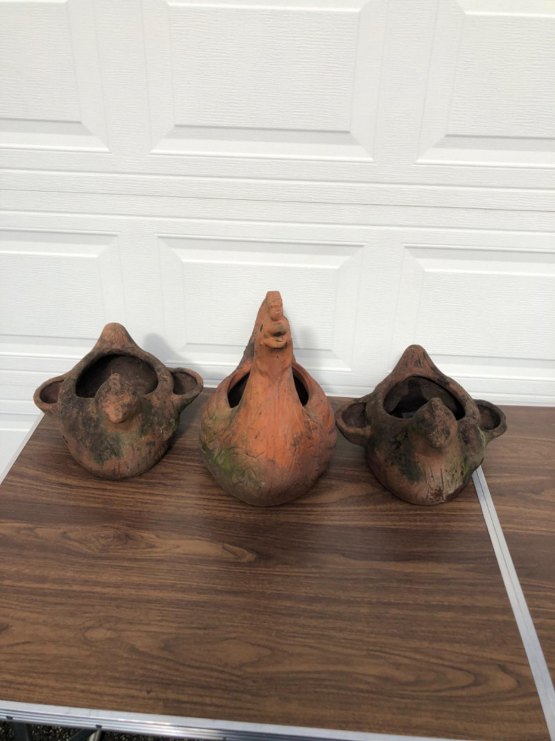 Lot # 78 - Terracotta Planters – Rooster and 2 Hens