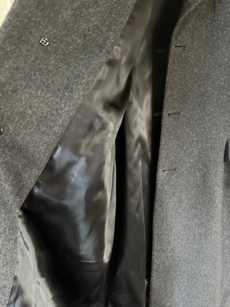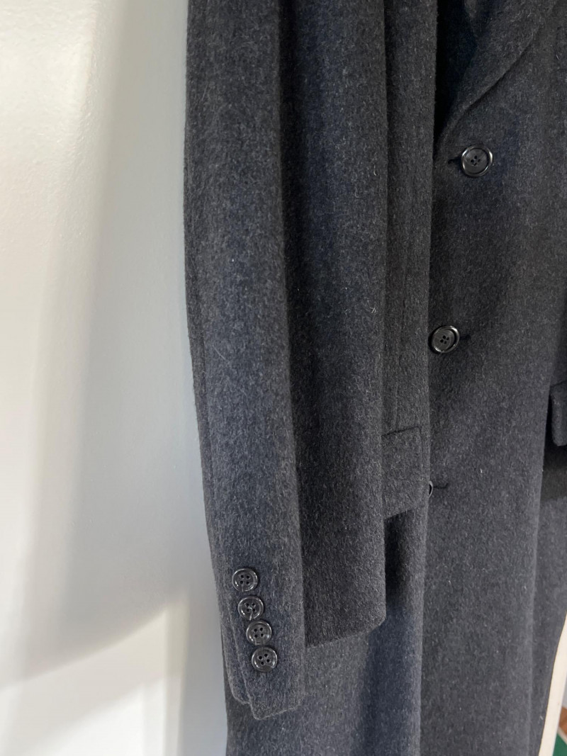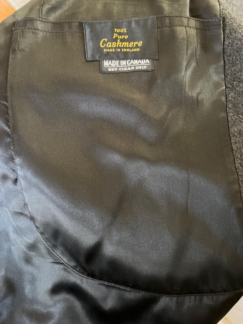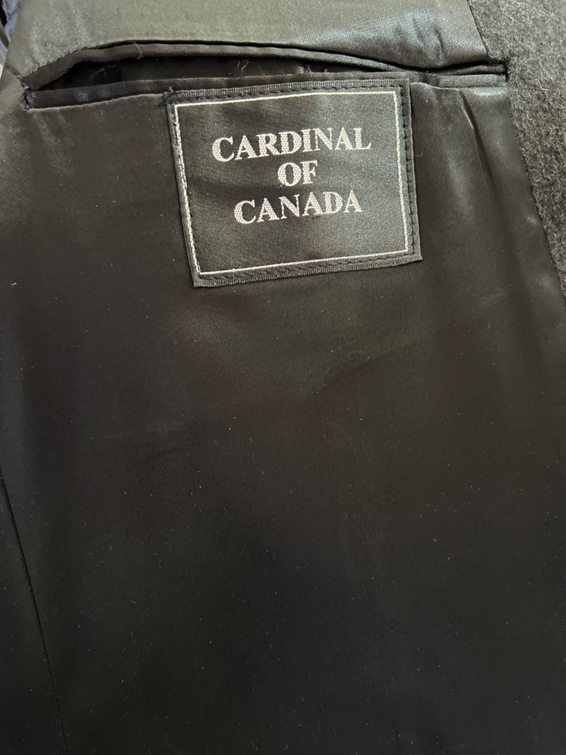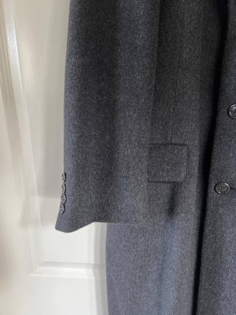 Timeless elegance meets luxury in this pure cashmere trench coat by Cardinal of Canada. Crafted in Canada from 100% pure cashmere (woven in England), this coat offers exceptional warmth and softness in a tailored, full-length silhouette. Features a three-button front closure, structured notched lapels, and classic flap pockets. Fully lined in satin for comfort and drape. Key Details: Brand: Cardinal of Canada Material: 100% Pure Cashmere (Made in England) Size: Men’s Medium Color: Charcoal Gray Origin: Made in Canada Care: Dry Clean Only