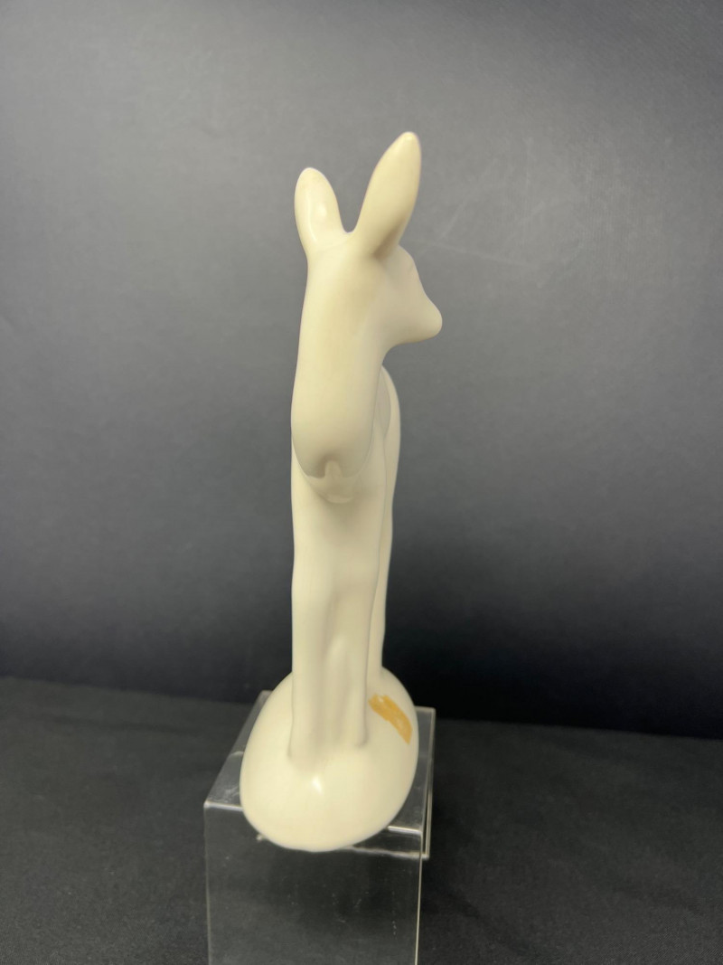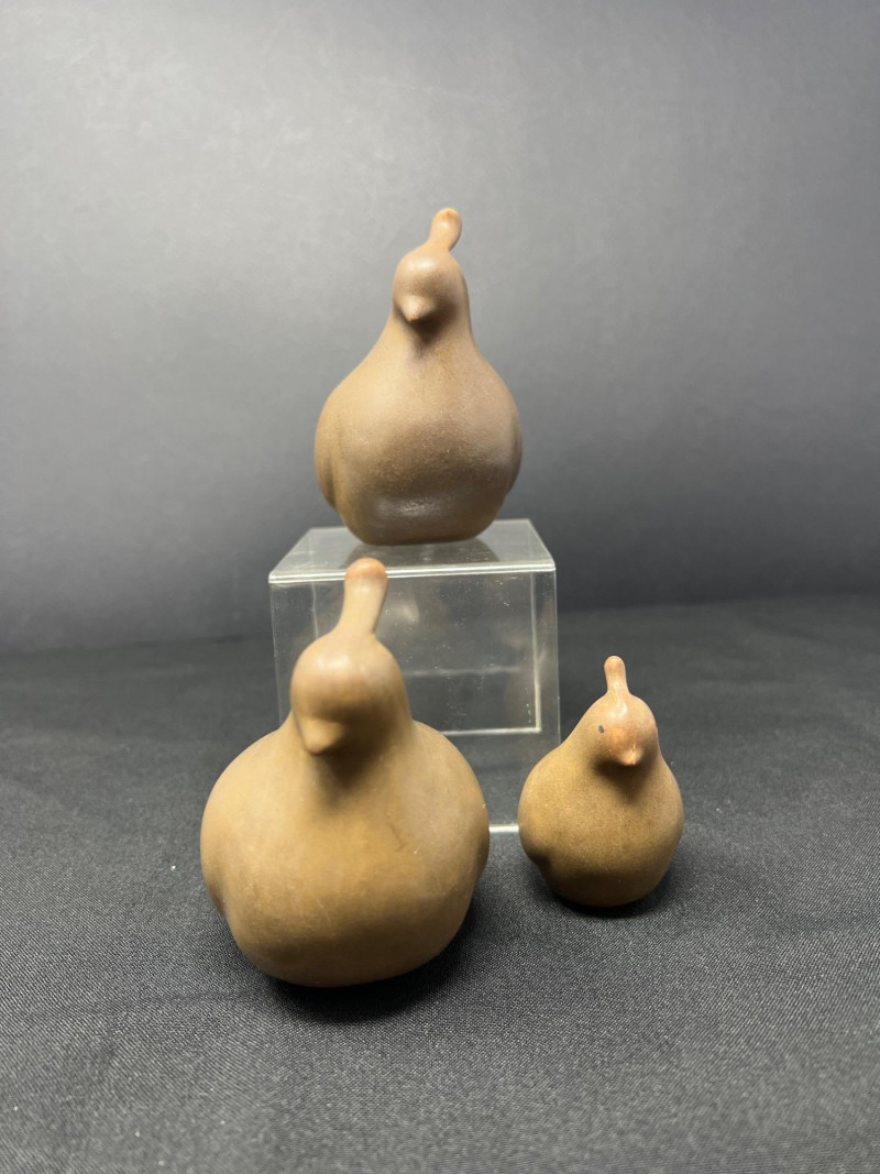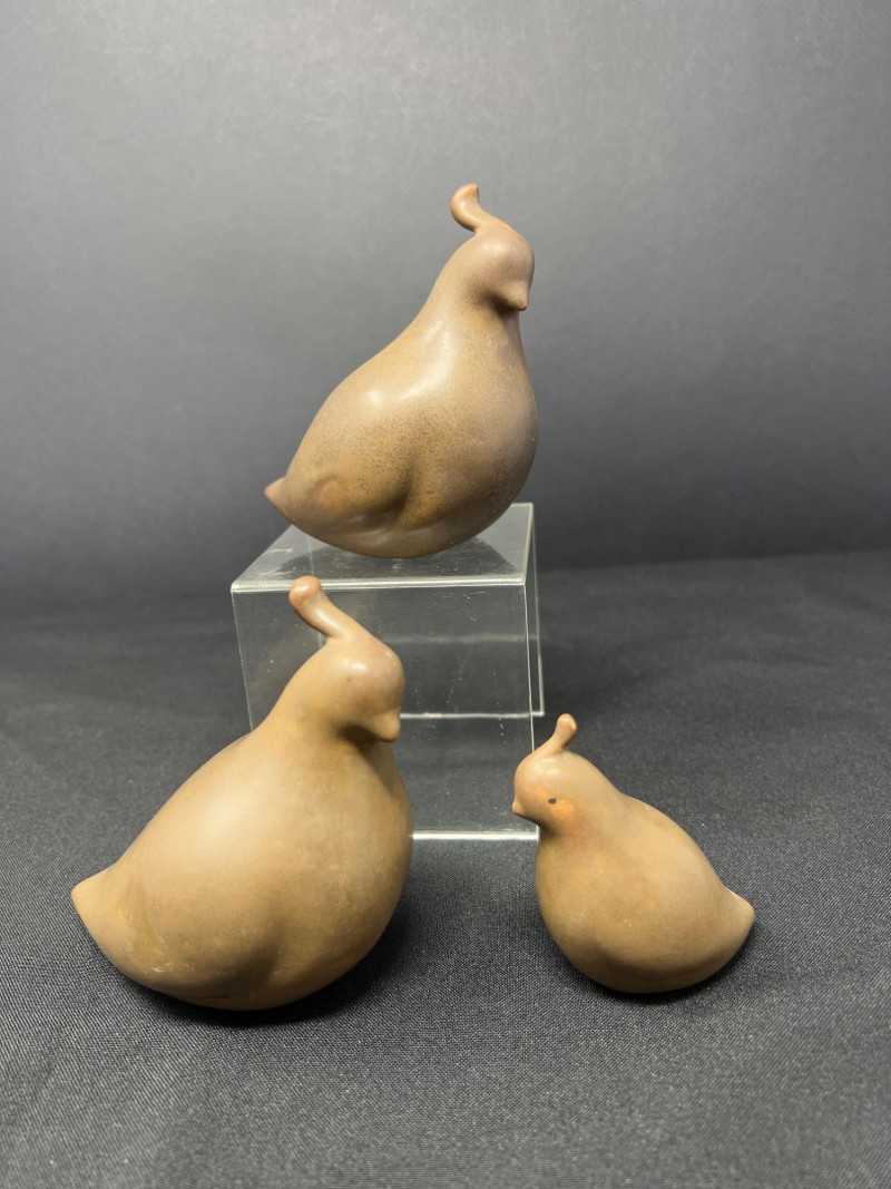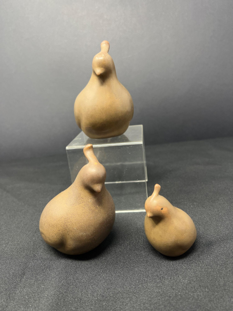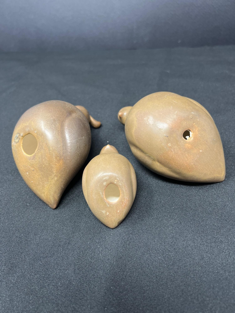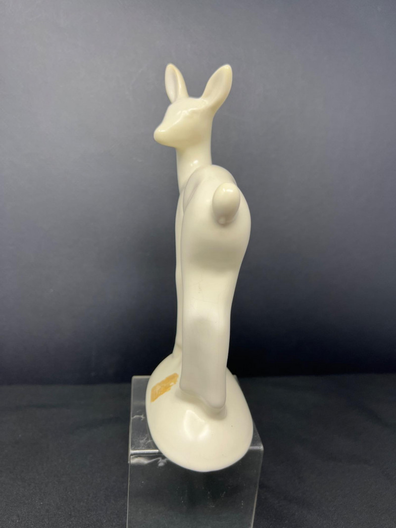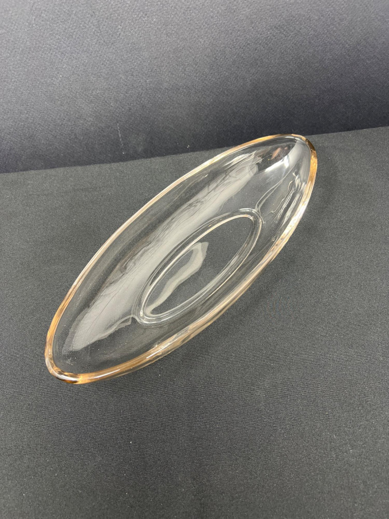 A thoughtfully curated grouping of mid-century decorative pieces, ideal for vintage collectors or anyone looking to enhance their space with retro charm. 1. Hollywood Ware Ceramic Deer Figurine A sleek and elegant ceramic deer in glossy ivory glaze, showcasing the clean lines and organic form typical of mid-century design. Original partial label reads Hollywood Ware – California Art Products – Los Angeles, indicating its mid-20th-century American studio pottery origin. Stands approx. 8.5" tall and 5" wide. Base shows wear and surface marks consistent with age. A classic MCM display piece with sculptural appeal. 2. Set of 3 Brown Ceramic Quail Figurines A family trio of stylized quail in earthy matte brown ceramic. Smooth, rounded silhouettes and simple detailing embody a minimalist aesthetic. Dimensions: Large: 3.5" H x 4" L Medium: 3.5" H x 3.75" L Small: 2" H x 2" L 3. Metal Votive Candle Holder with Glass Insert and Leaf Branch Design Unique sculptural votive holder featuring black metal tendrils with clear acrylic “leaves” rising from a square base. Includes a green-tinted glass votive cup for tea lights. Bottom labeled “Made in Philippines – MF 305.” Measures approx. 10" tall with a 4" x 4" base. A striking blend of nature-inspired art and function 4. Clear Oval Glass MCM Dish Elegant and lightweight clear glass dish with soft amber tint along the rim. Approx. 11" long x 4.5" wide x 2" high.