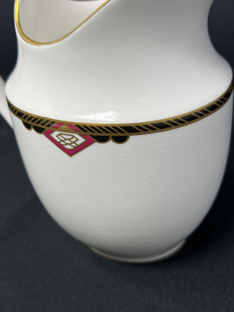 A charming combination of English craftsmanship, this set features a refined Spode pitcher paired with two beautifully decorated Wedgwood bone china plates. The pitcher’s graceful silhouette and classic gold detailing complement the ornate floral design and scalloped shape of the plates. Includes: 1 Spode Pitcher 2 Wedgwood Plates