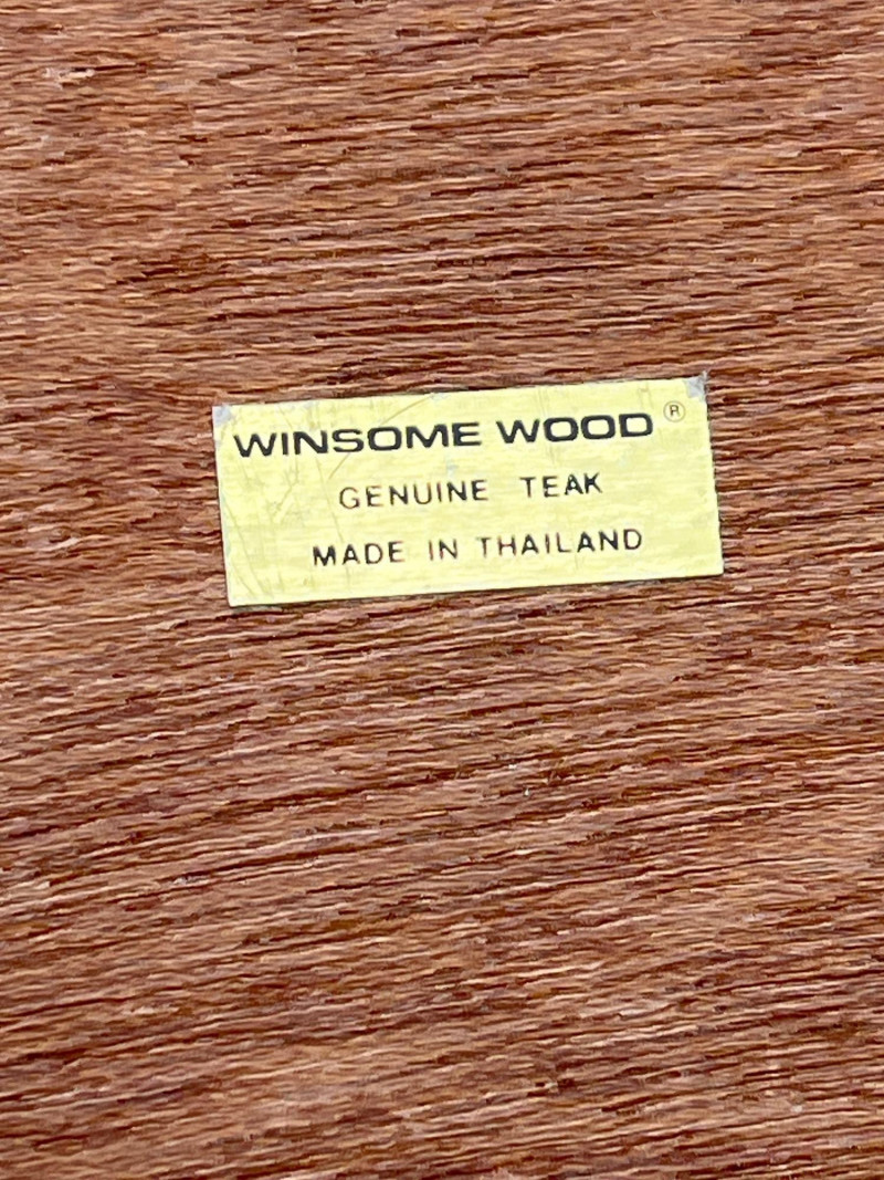 These are Winsome Wood nesting trays made of genuine teak. Winsome Wood is known for producing high-quality wooden home goods, often crafted in Thailand. The rich teak grain and classic nesting design make these trays both functional and stylish. Based on similar listings, these trays likely date to the mid-to-late 20th century, possibly 1970s–1990s. While Winsome Wood also made beechwood trays, teak versions are more sought after for their durability and warm aesthetic.