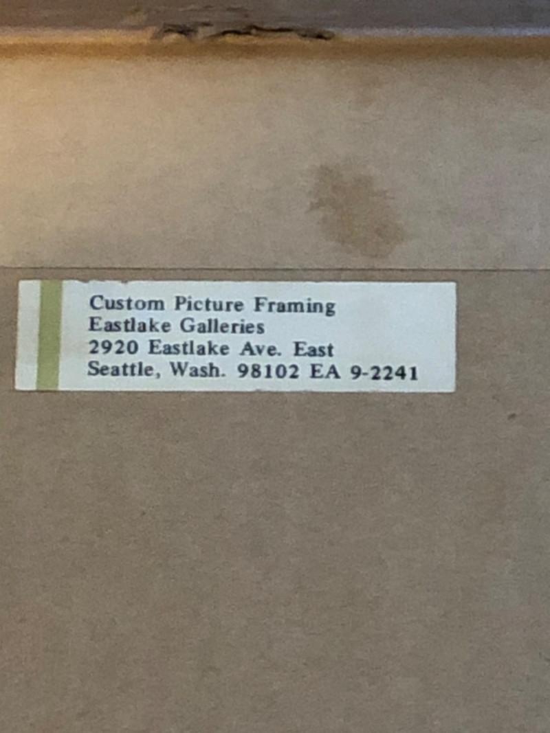 Framing: Metal frame, original custom framing by Eastlake Galleries