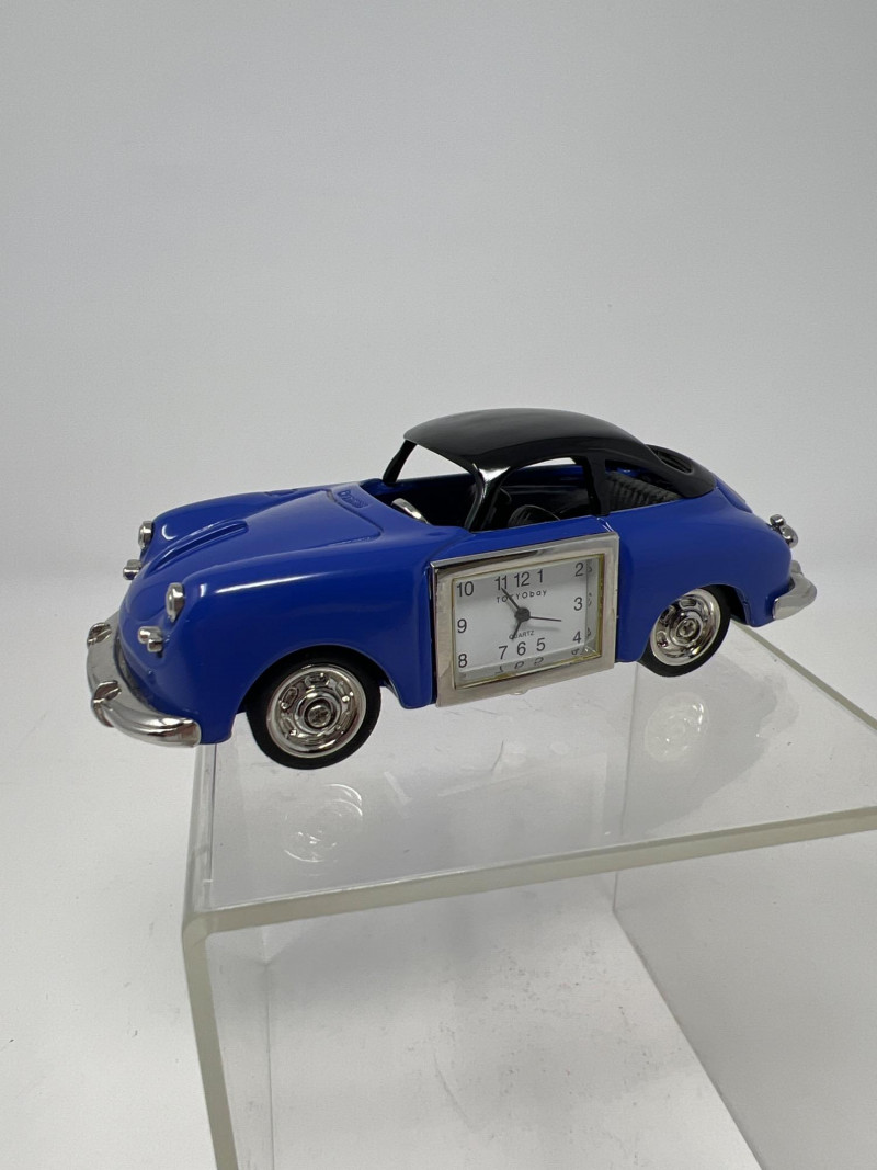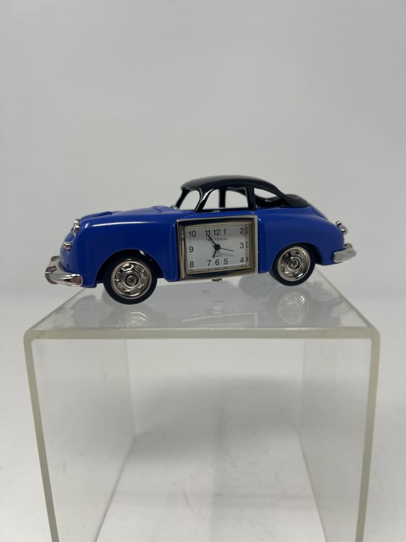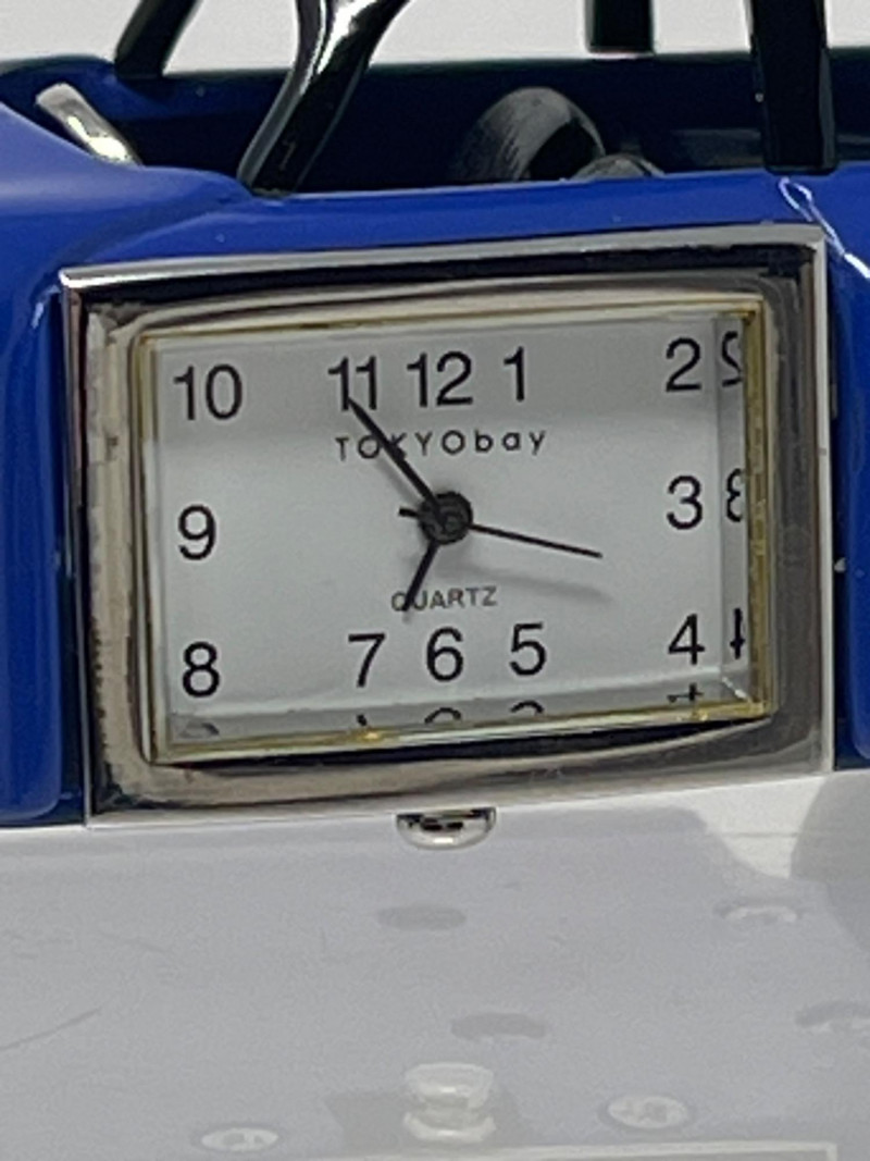 TokyoBay Watches is a brand specializing in stylish timepieces and accessories. Featured is a TokyoBay Collector Car Clock, a miniature blue car with a built-in clock. This unique piece combines automotive design with functional timekeeping, making it a great collectible. Clock hands can be adjusted; however, it appears the battery needs to be replaced.