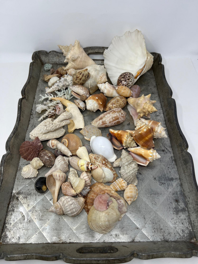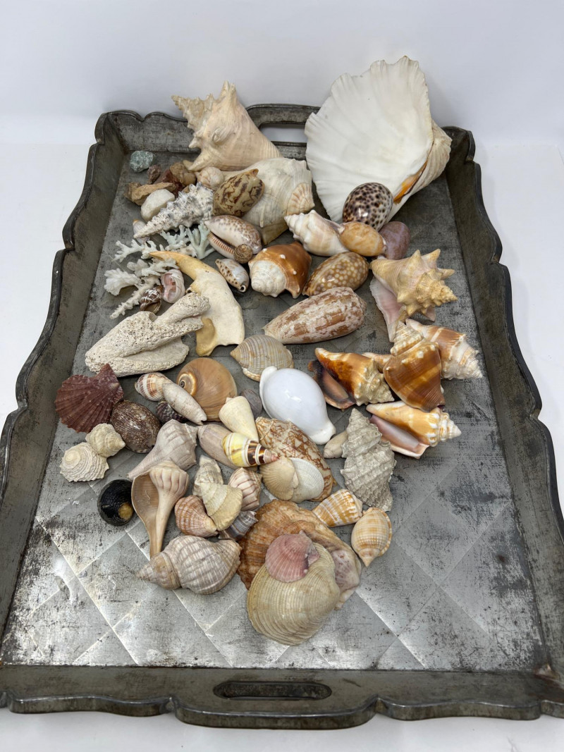 Lot # 144 - Sea Shell Variety on Vintage Scalloped Metal Tray