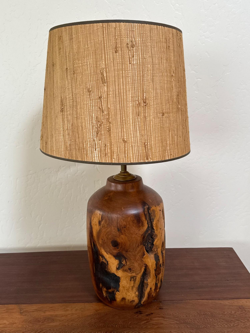 Burl Wood Turned Lamp. Heavy solid wood base.