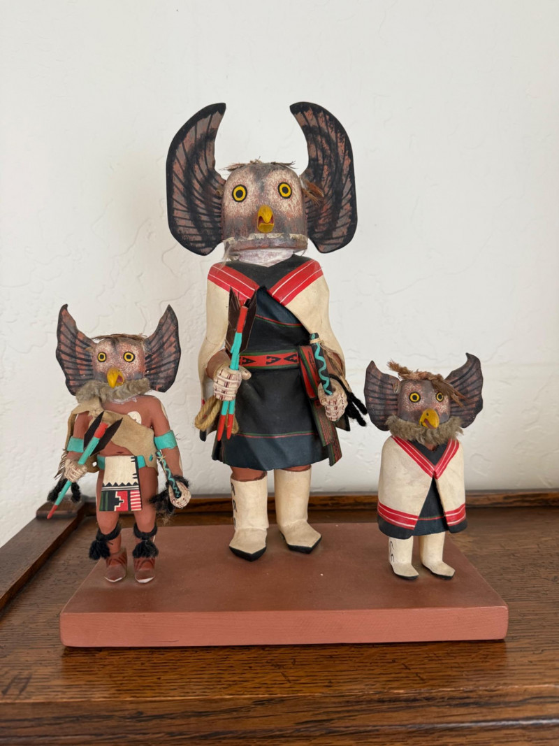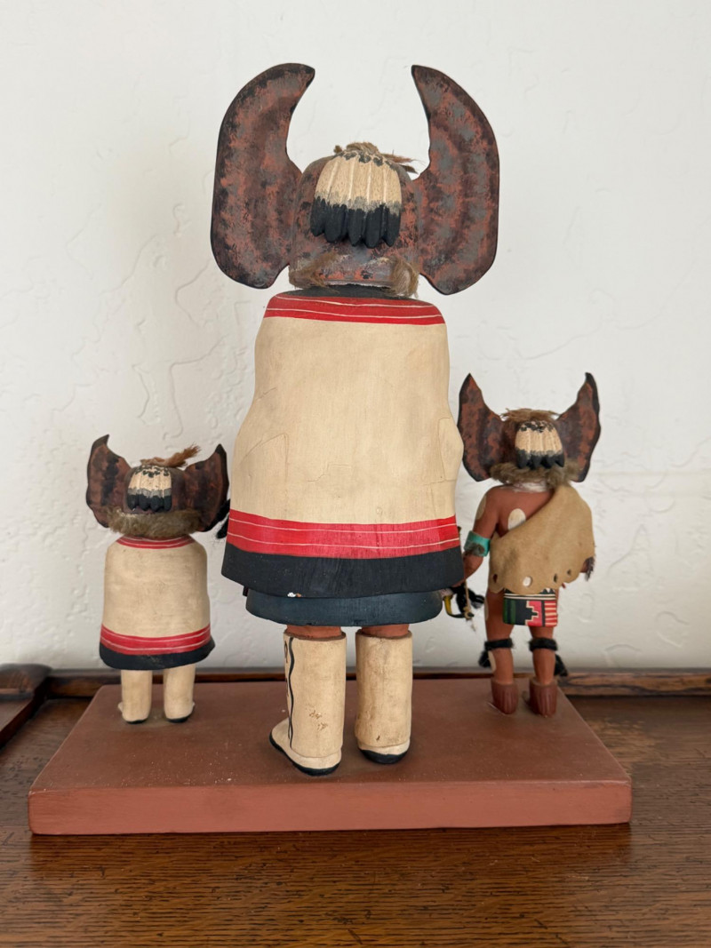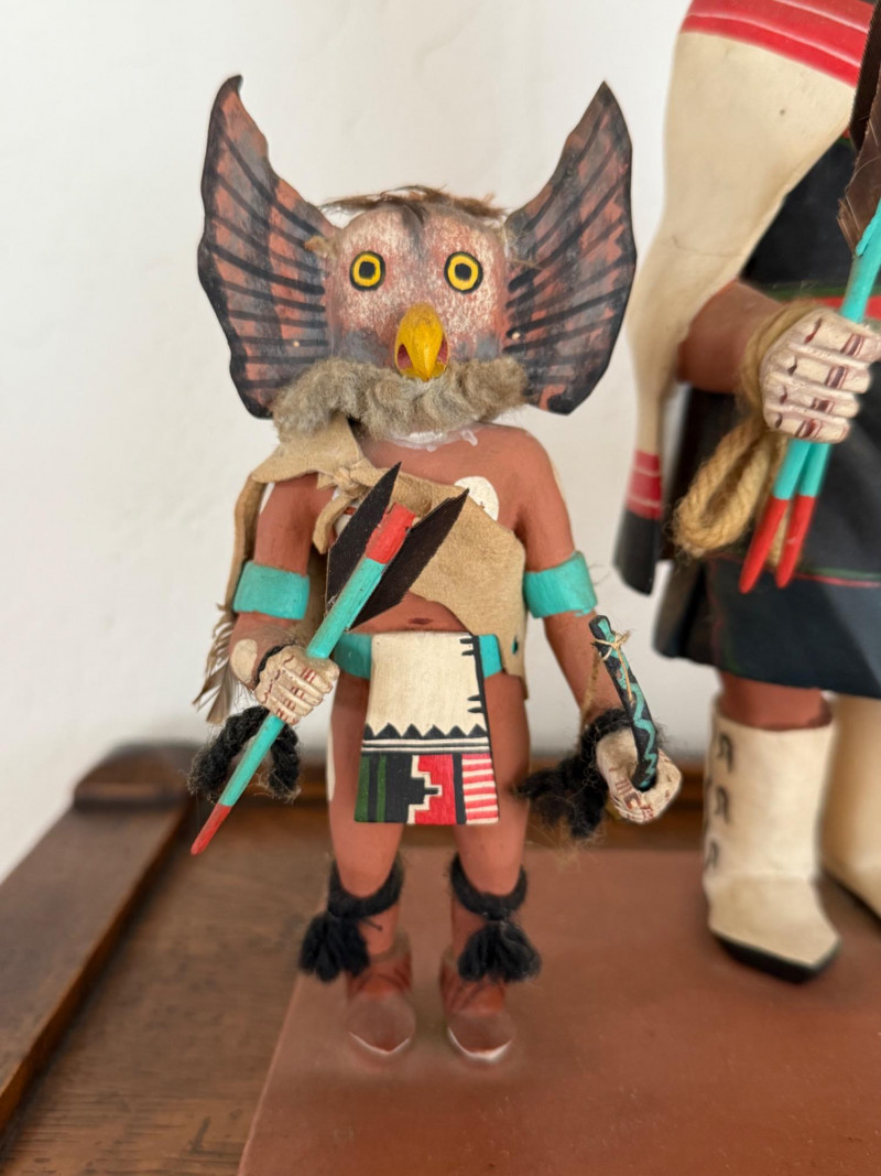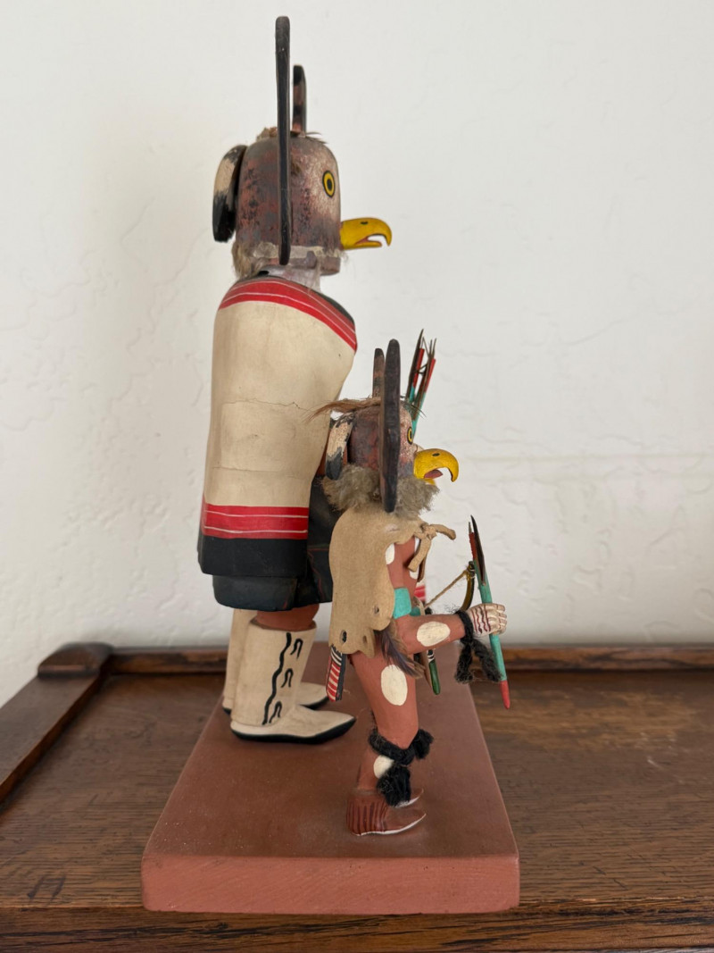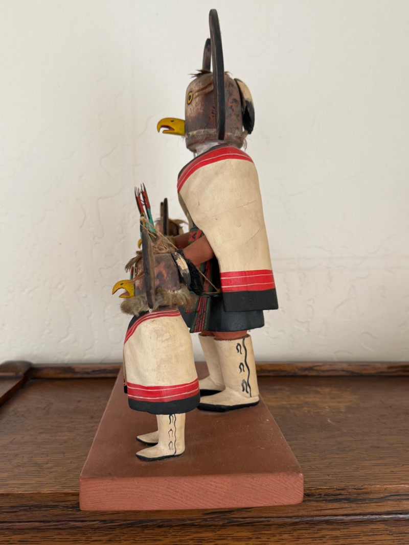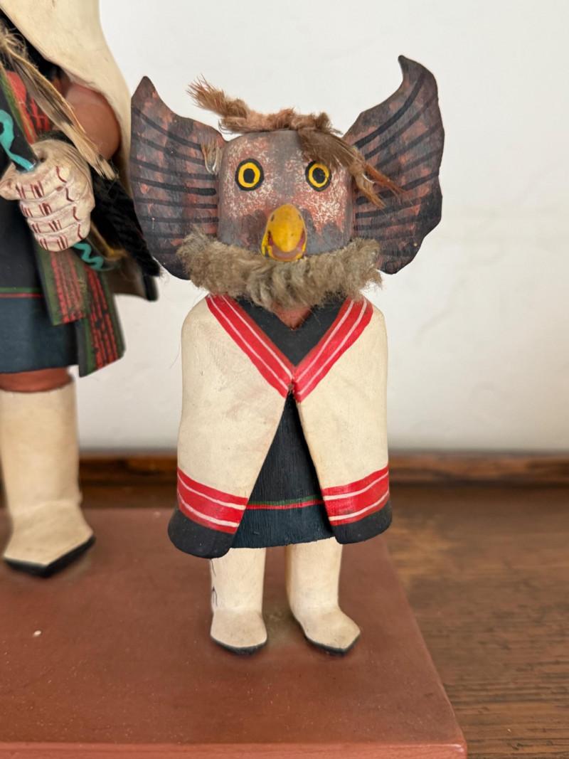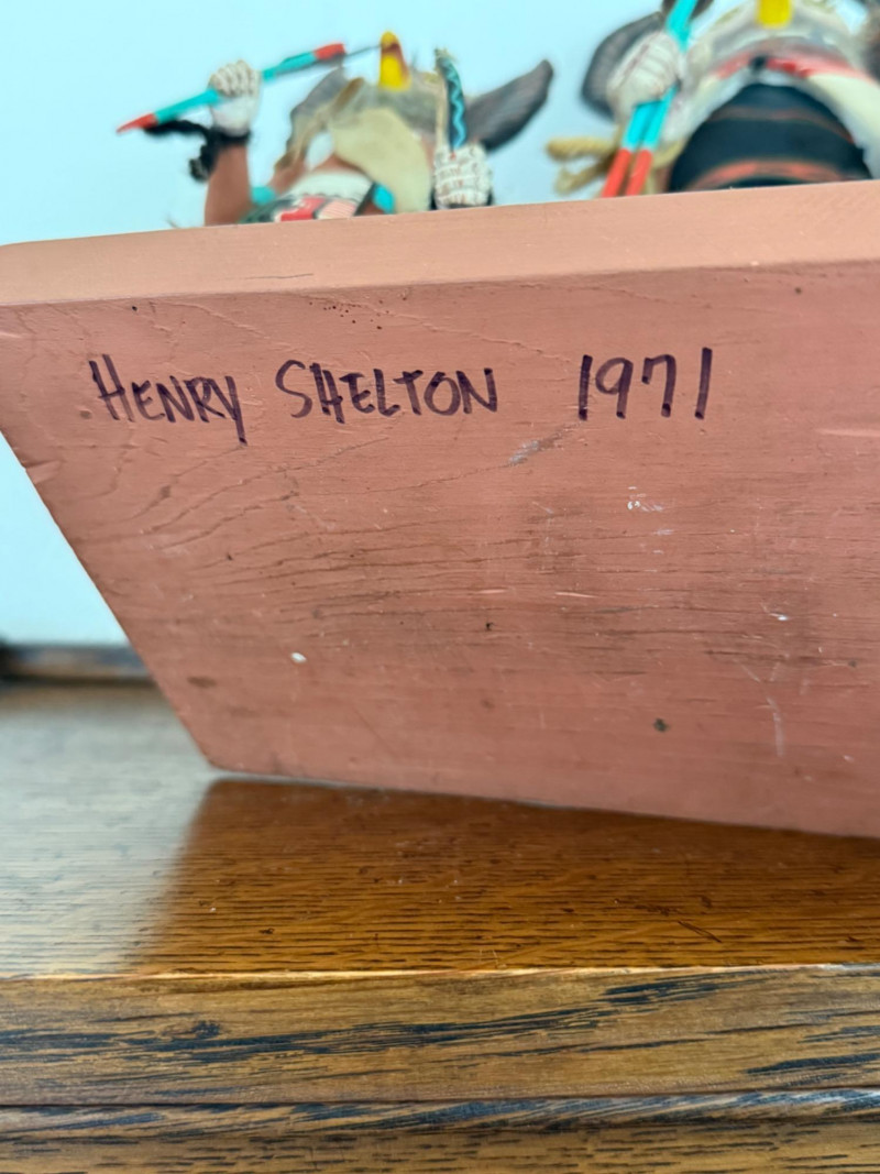 Hopi Henry Shelton Kachina Dolls. Attached to stand. Please note-We have no documentation on this piece, the owner put the artist name on the underside. This is not the artist signature.