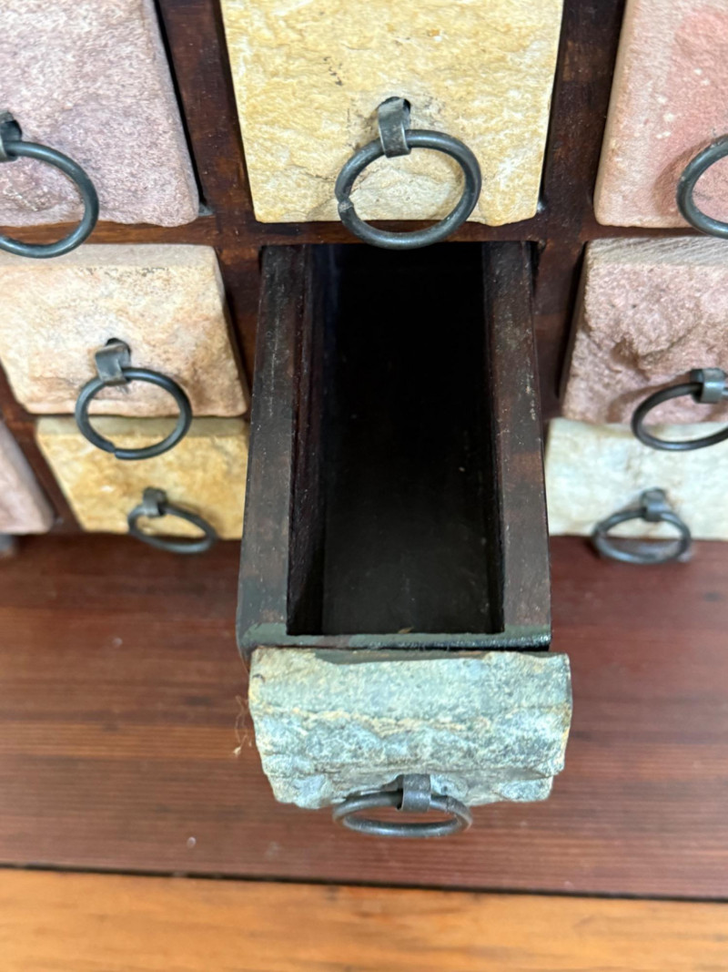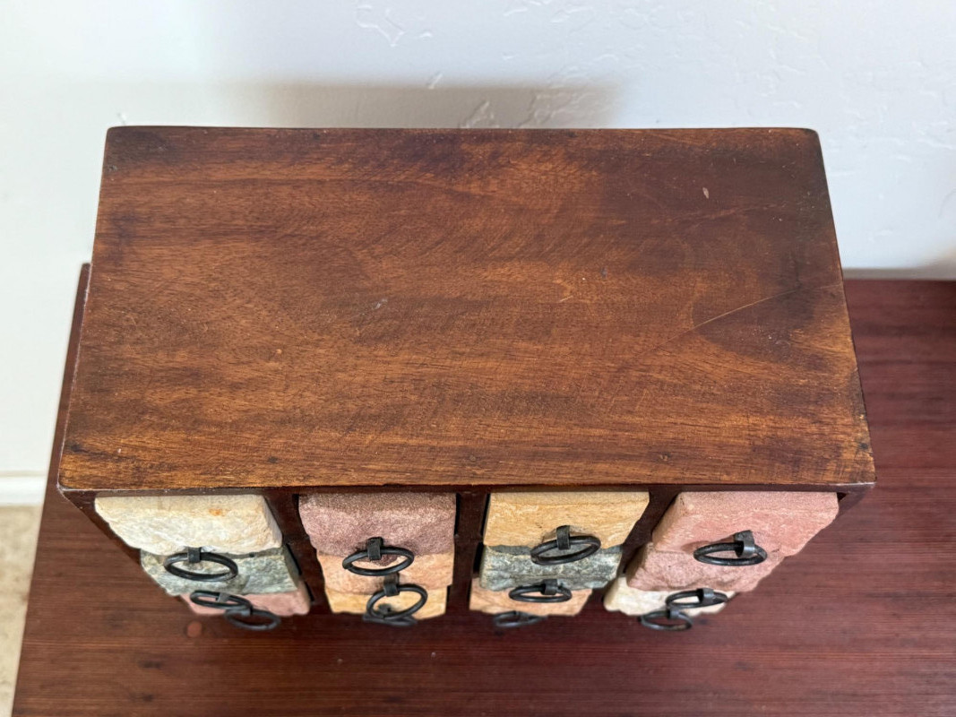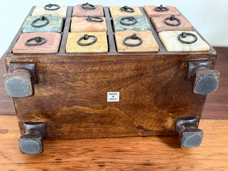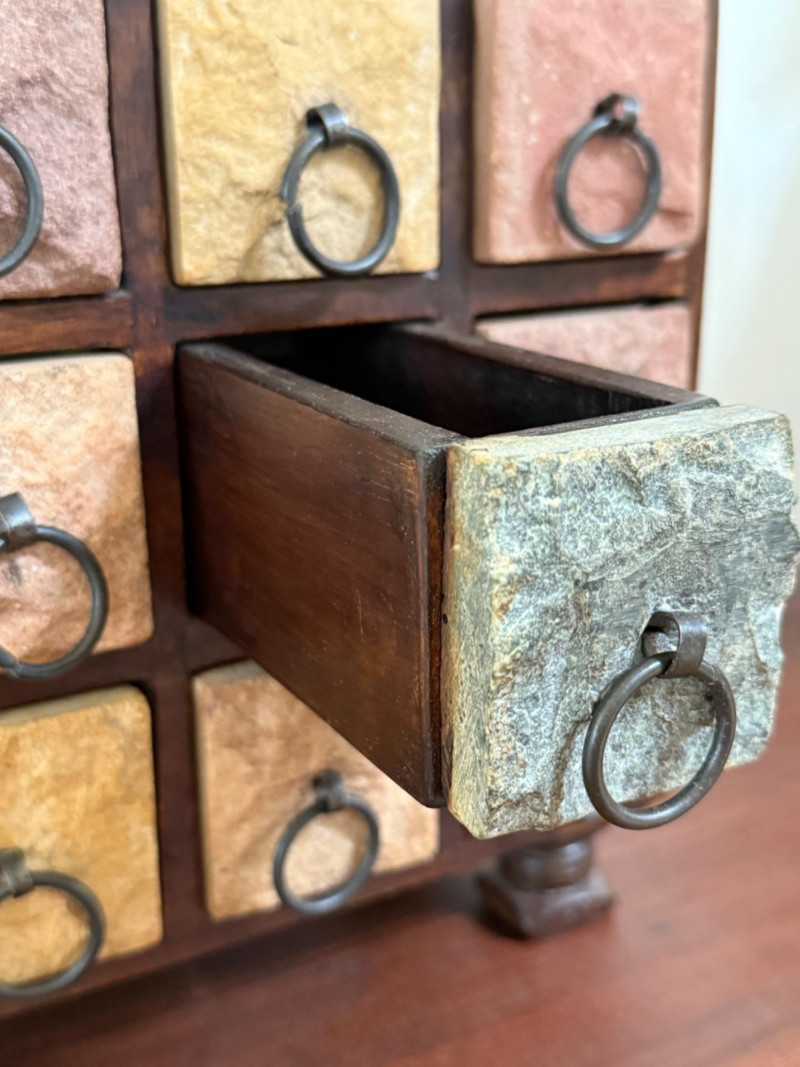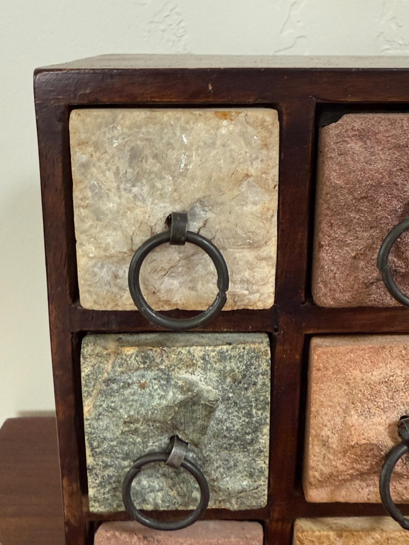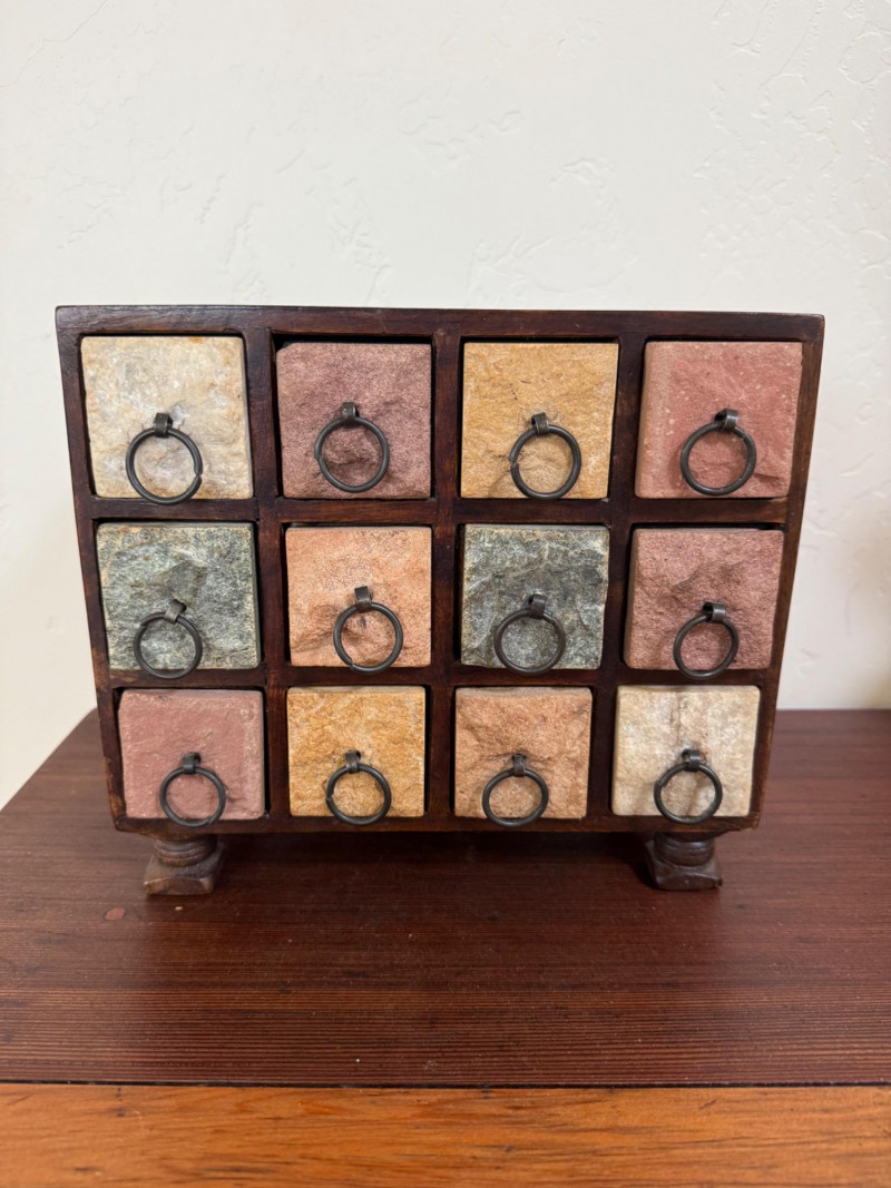 Wood and Stone Keepsake Box. Stone drawer fronts. Solid wood box.