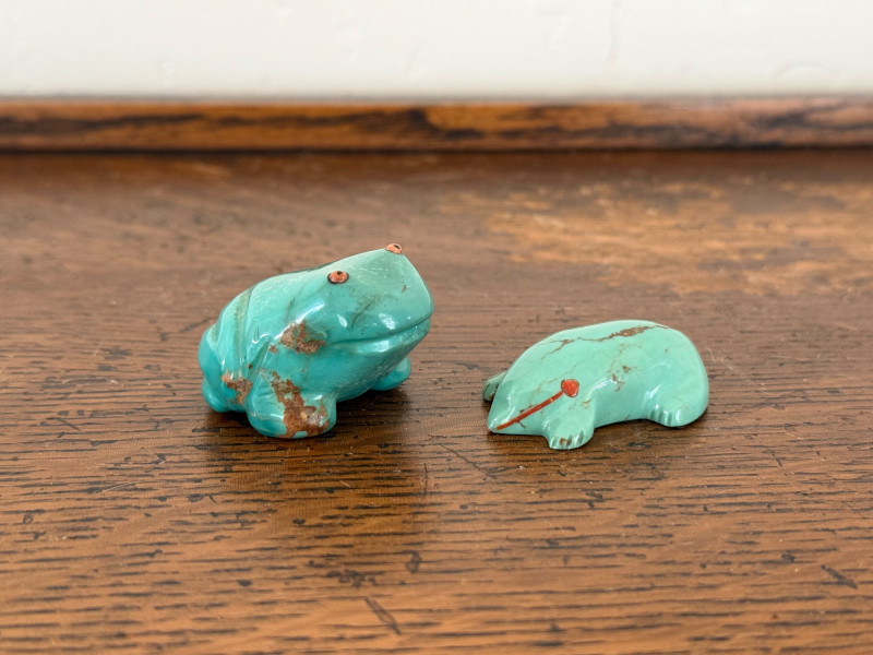 Lot # 87 - Zuni Carved Turquoise Frog and Lizard Fetishes