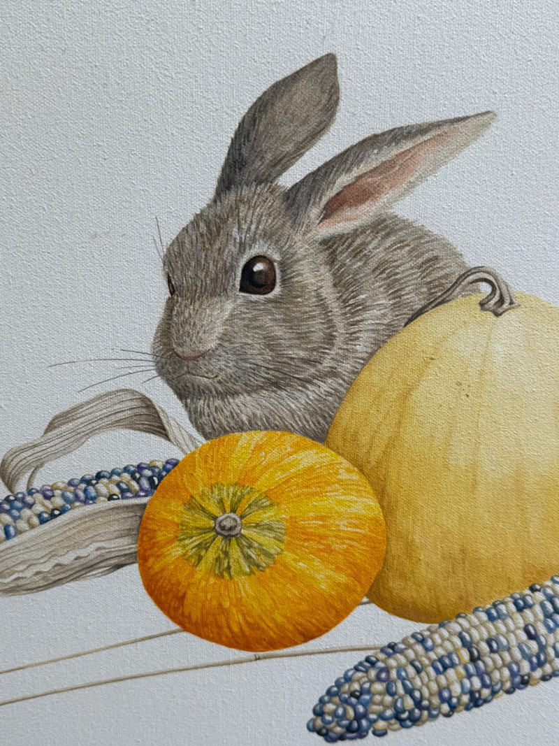 Lot # 156 - Anne Goetzman Bunny and Gourds Painting