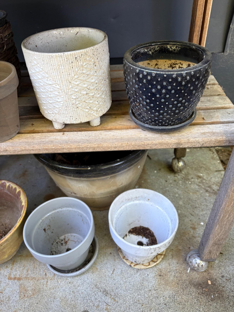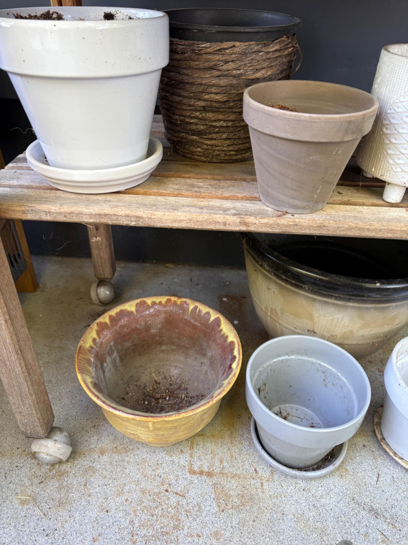 Lot # 23 - Potting Table with Assorted Pots