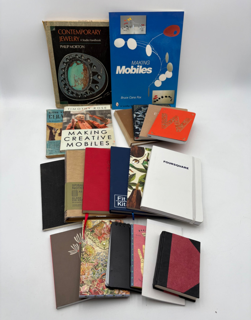 Perfect for the artist or writer - collection of blank/never used notebooks and sketchbooks. Great if you're constantly making lists - you'll never run out of paper. Purse-sized and bag-sized...something for everyone. How-to books for the artistic type include "Making Creative Mobiles" by Timothy Rose, "Making Mobiles" by Bruce Cana Fox, "How to make Ceramics" by Gertrude Engle, and "Contemporary Jewelry Studio Handbook" by Philip Morton.