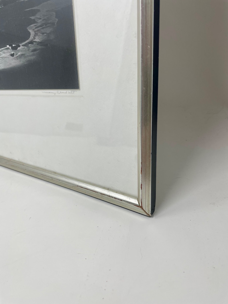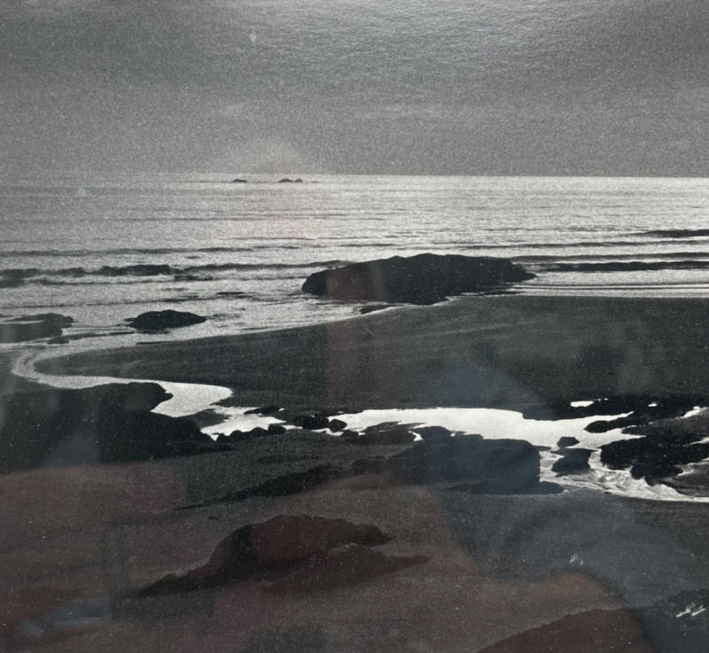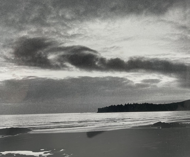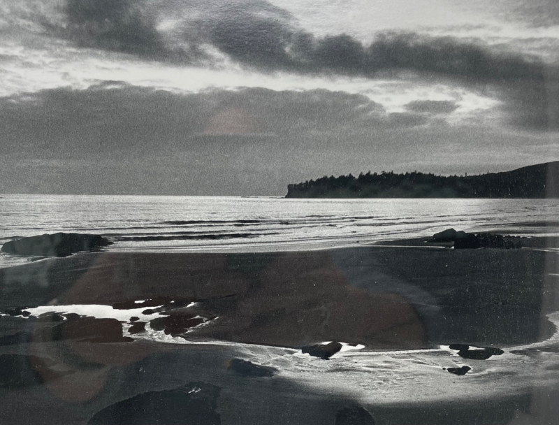 "August 1984" ("Makah Bay") from Pacific Northwest photographer Mary Randlett. Though best known for her portraiture of Northwest artistic figures such as Mark Tobey and Tom Robbins, her oeuvre also included dramatic landscapes. This photo falls into the latter category & shows the sun setting over the ocean at the far Northwest tip of Washington State where the Makah tribe lives. Regarding the photo she stated, "I saw a wonderful molten river-like form on the sandy beach and the beautiful clouds and forms dancing in the light...everywhere I saw a photograph." Sound Estate Company does not appraise art or guarantee authenticity.