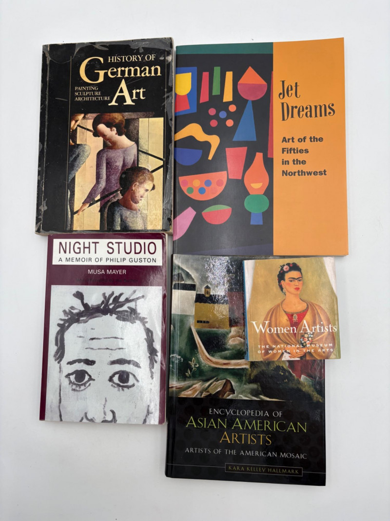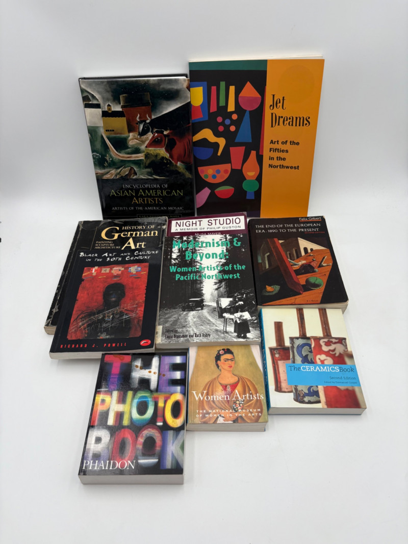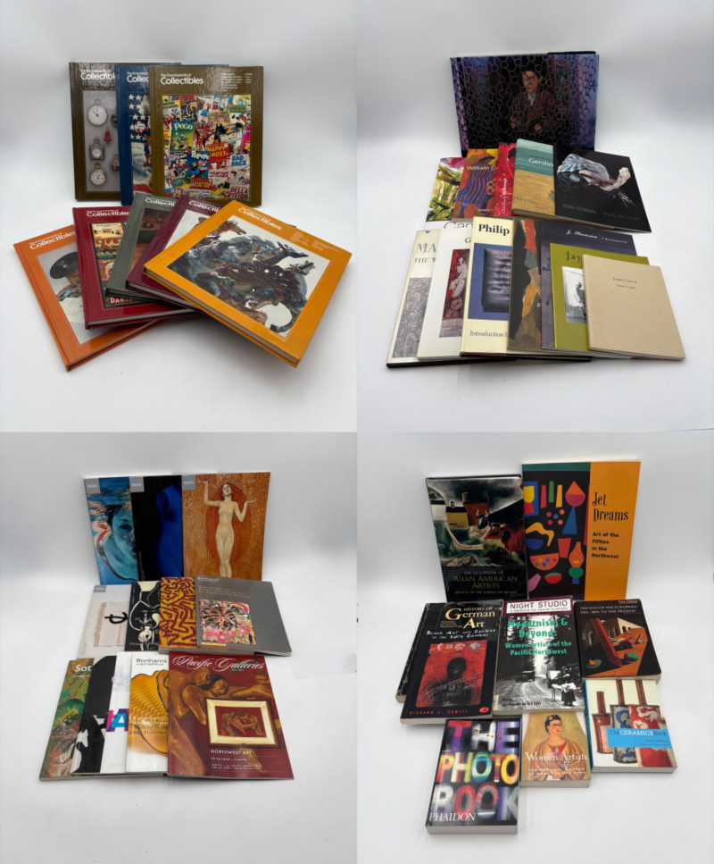 Huge grouping of art books in four general categories. "Encyclopedia of Collectibles" from Time-Life is a great overview for the collector on things as wide ranging as children’s books to buttons to watches to military memorabilia to fine arts to glass. 8 volumes. Auction house catalogs from such varied sources as Rago, Sotheby’s, Christie‘s, Bonham‘s, and other others General art books ranging from African-American art to women artists to ceramics to Northwest art. Monographs on mostly Northwest artists ranging from classic greats like Mark Tobey and Paul Horiuchi to more current artists such as Dale Chihuly.
