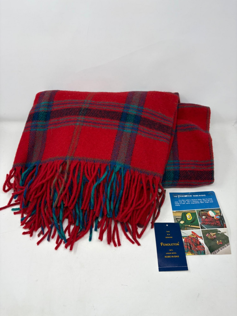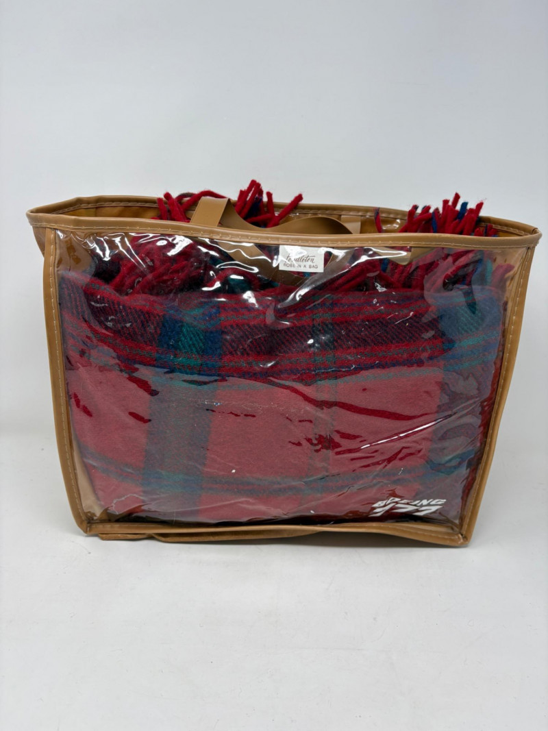 If you’ve ever had to stop and put chains on when you’re going over the pass you know it’s a PIA. Being able to put those chains on quickly and stay warm is key. These two items will help you out. Alpine Premier set of passenger car chains. They mount without lifting or moving the car and all of the connections are on the outside of the wheel. According to the manufacturer, it’s a smoother & quieter ride than ladder-style chains. There is also a Pendleton stadium blanket/robe-in-a-blanket which measures 52" x 70” in virgin wool. This is a vintage blanket; we didn't inspect it, but it appears to be in great condition as we photo'd it. Comes in a 1990s plastic Pendleton tote bag with Boeing 777 insignia on it. True Seattle stuff.