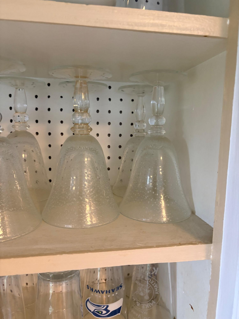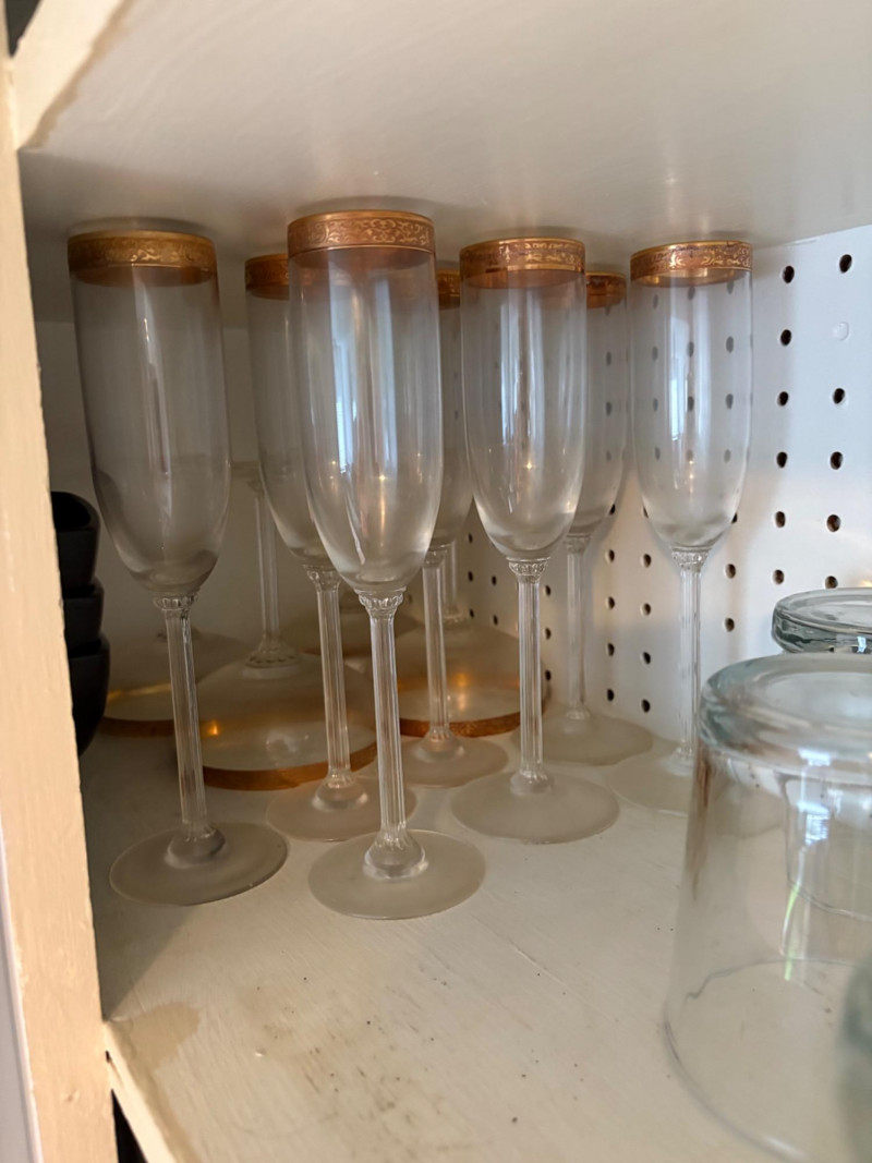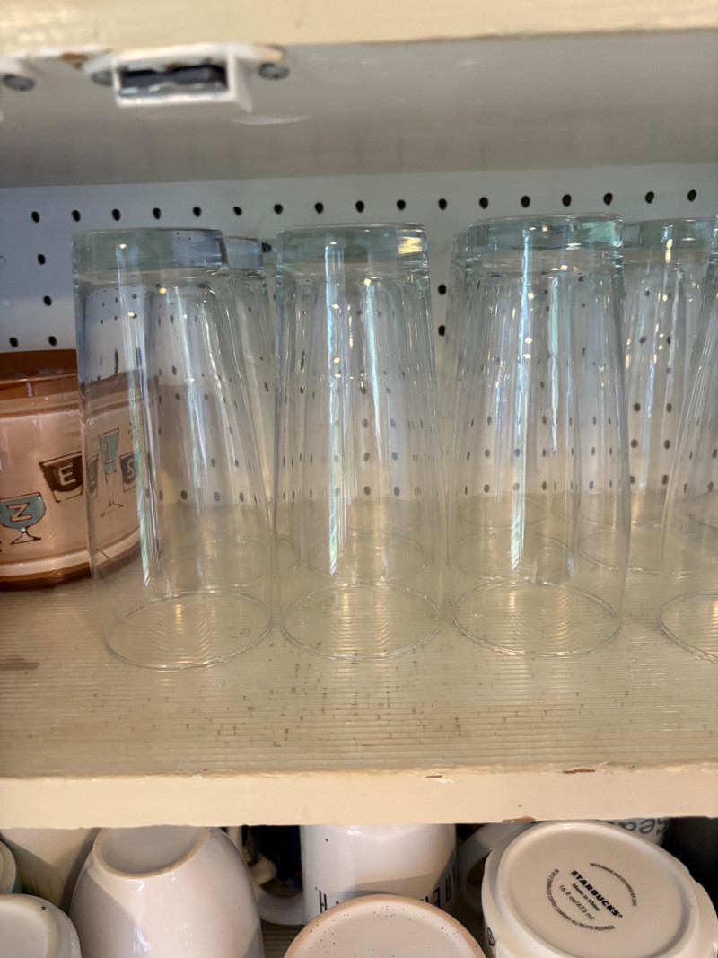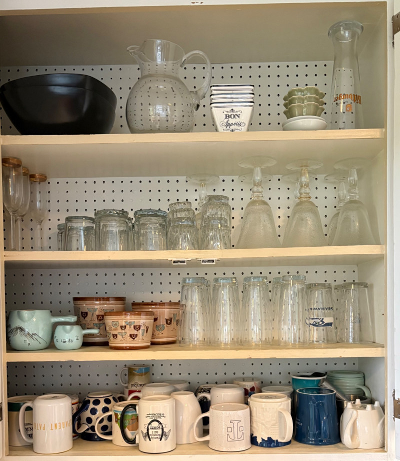 Three cabinets of bakeware, glassware, dishware, and some vintage serving dishes. What you see is what you get! Winning bidder needs to bring appropriate boxes & packing to remove all items from cabinets.