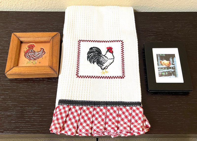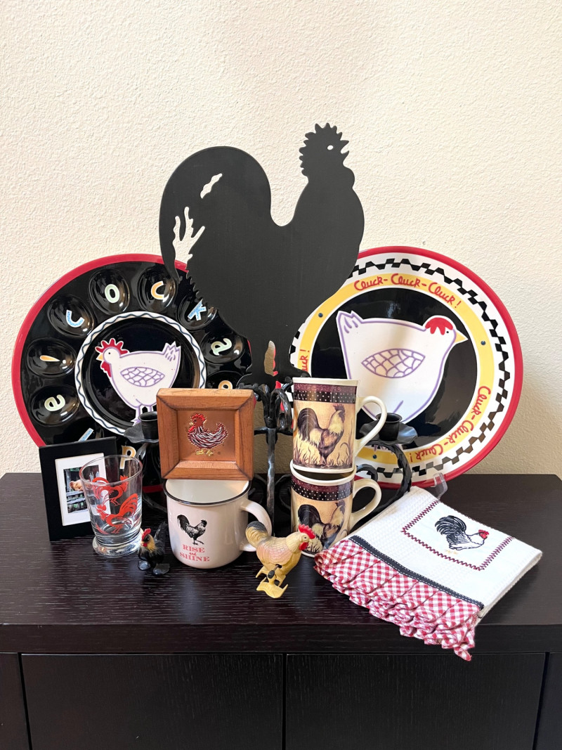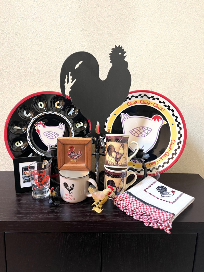 Chickens and Roosters Decor Collection Whimsical farmhouse-style decor bundle featuring a variety of rooster and chicken-themed items. Set includes: