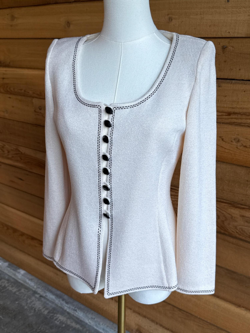 Lot # 21 - ST JOHN Evening Ivory & Black Sweater Jacket- Sz 2