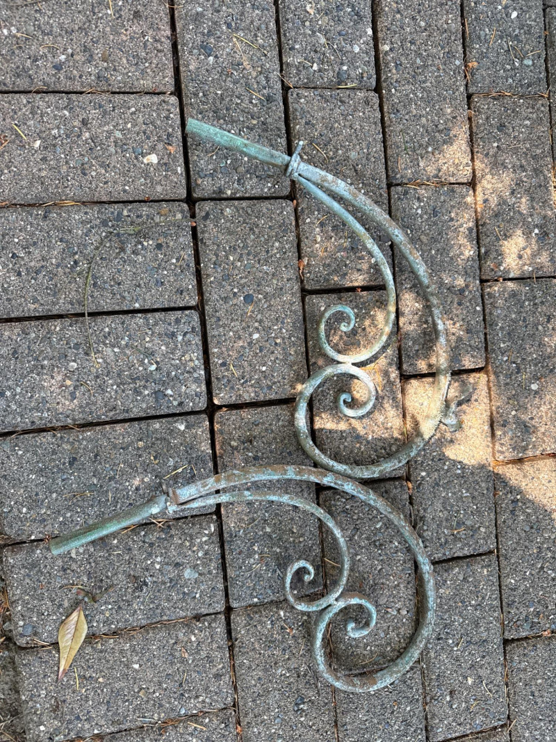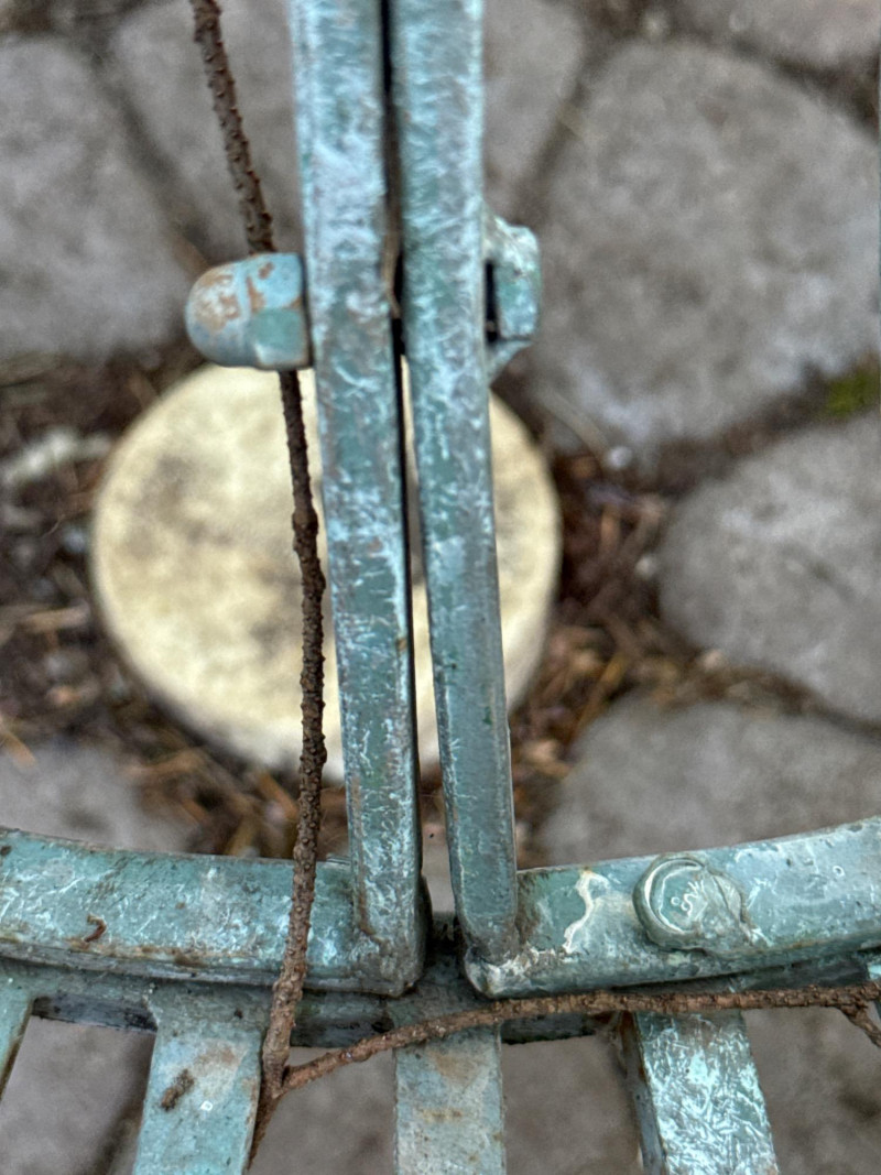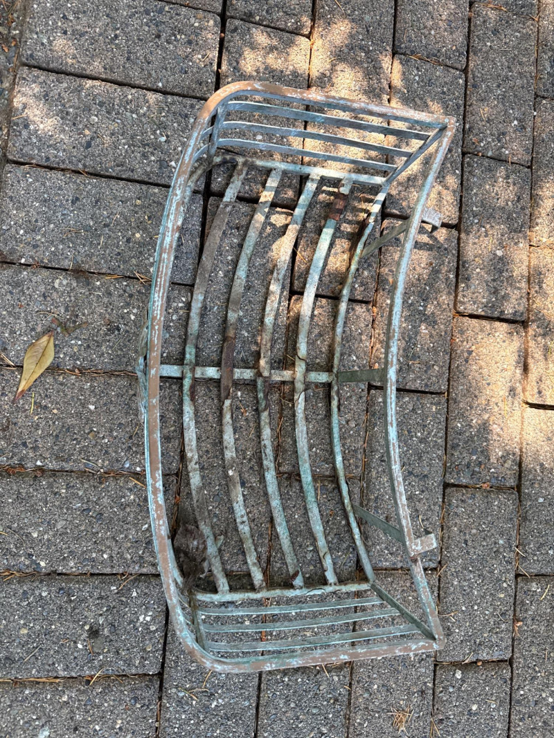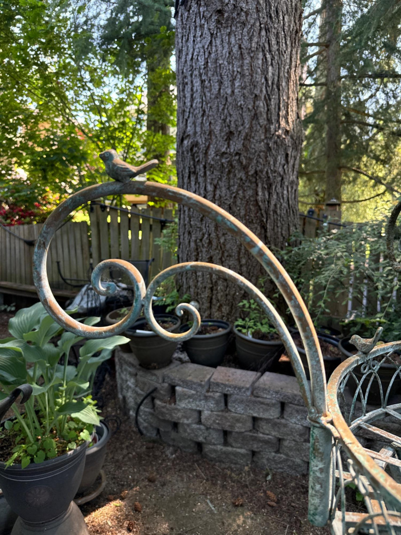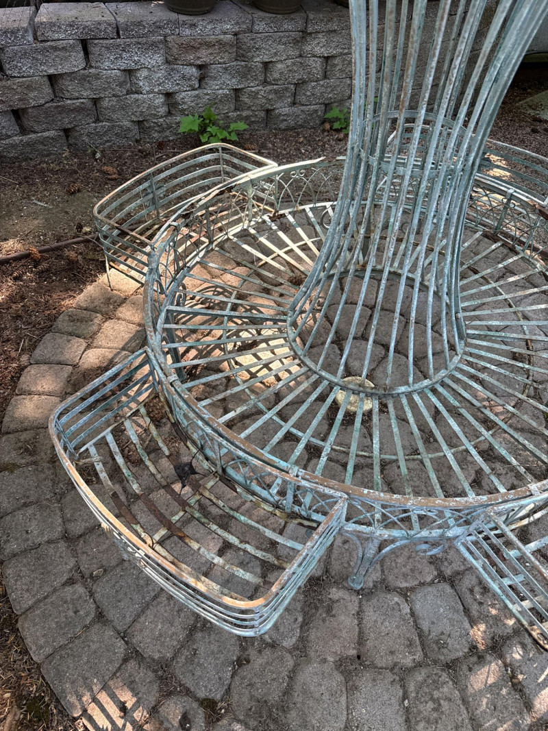 Note: Plants not included. Bring tools and solvent for disassembly. Vintage metal planter and garden display. Several movable pieces. Has some rust and peeling paint Small flower, bird detail throughout