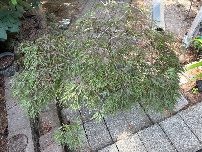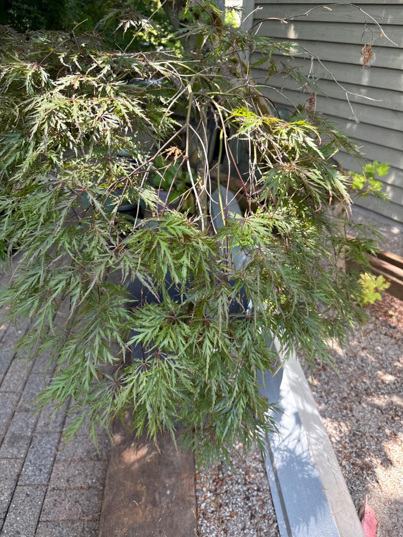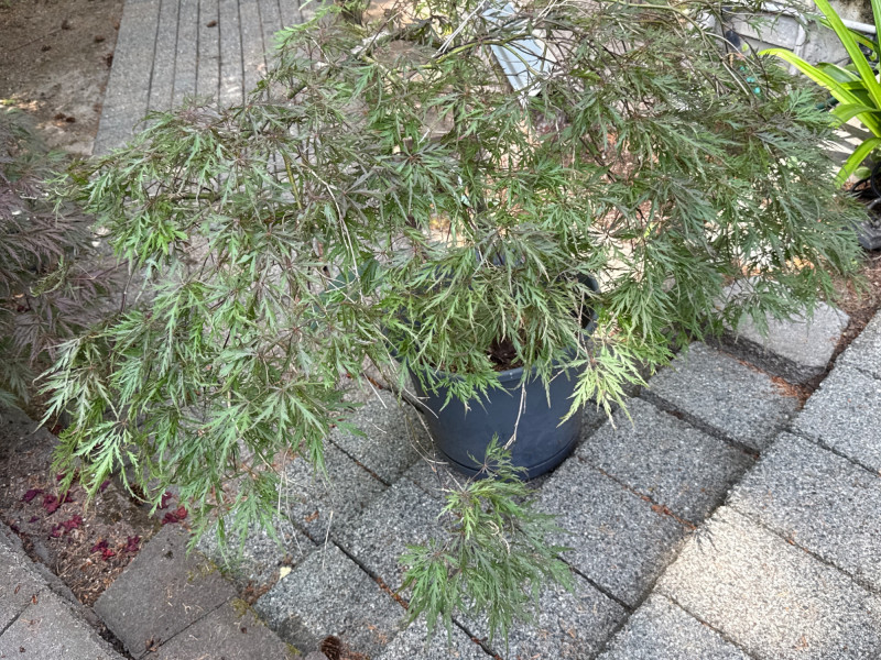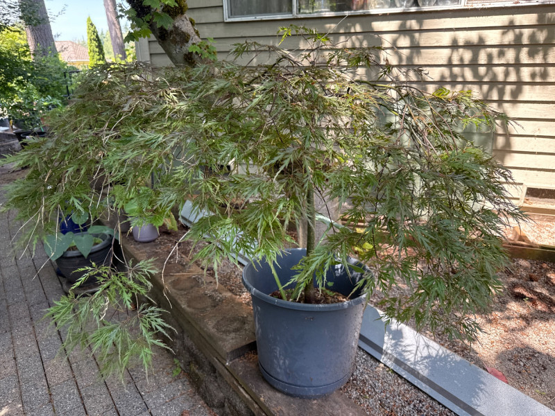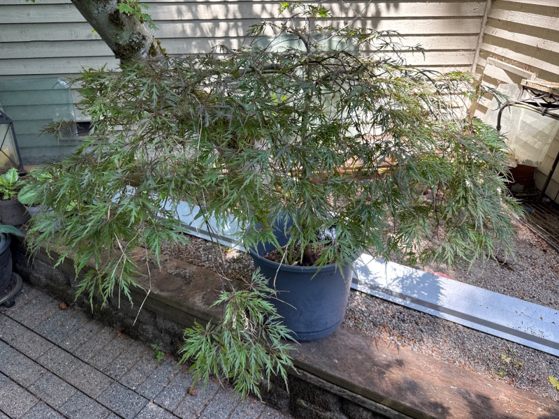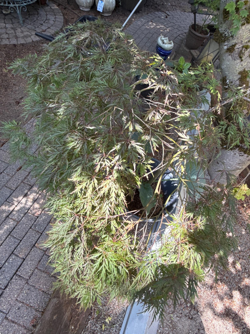 **Note: Dimensions are approximate for plant. Plant health is not guaranteed but is being maintained. The plastic pot dimensions are 14.5in Tall, 15in Wide Plant dimensions from soil to tip are 36in tall, 46in wide Heavy, bring help to load. Japanese Maple tree and Hosta Plant