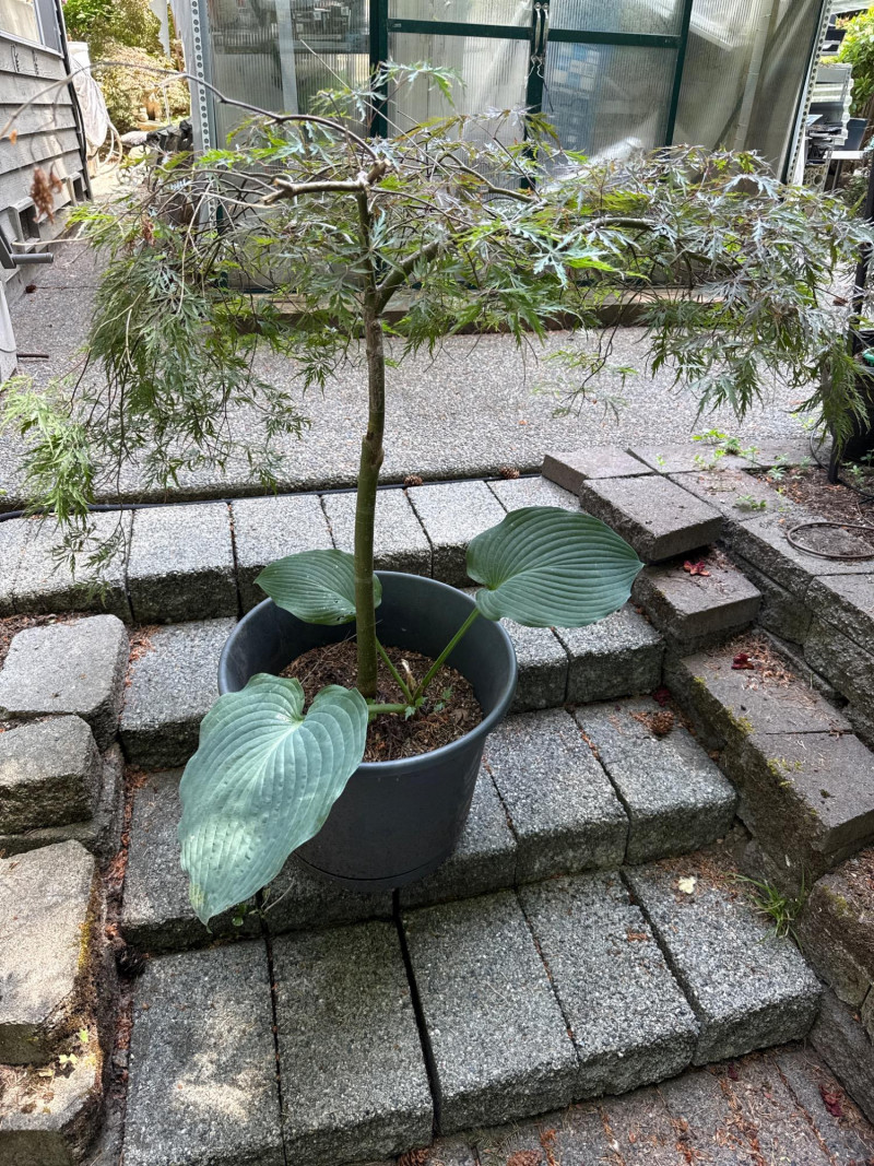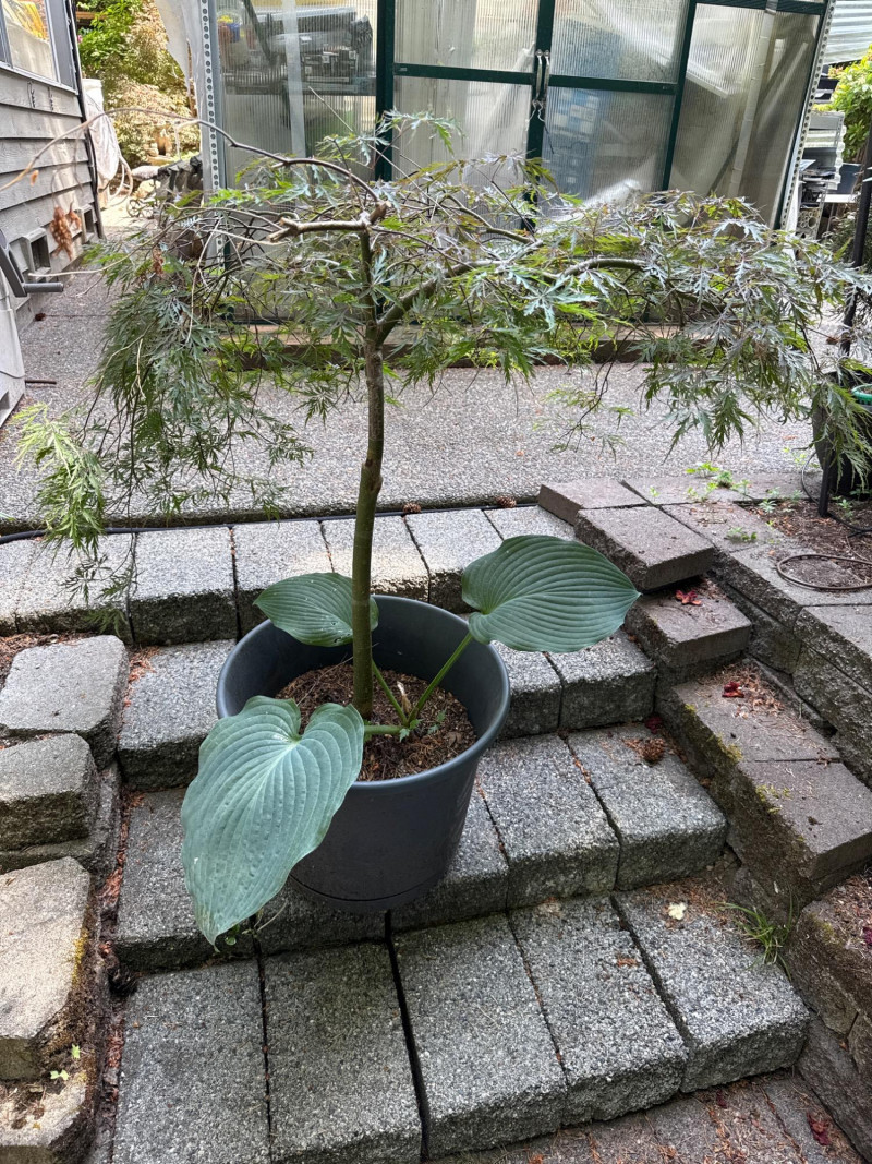 Lot # 10 - Japanese Maple and Hosta in Grey Pot