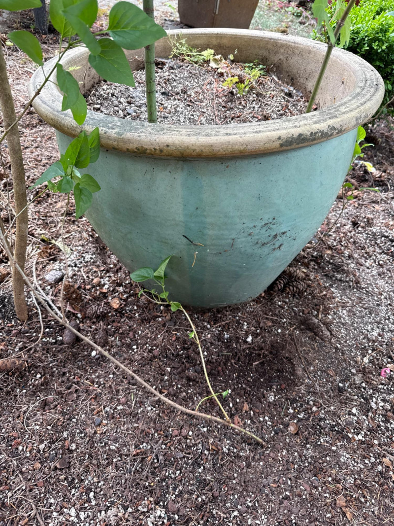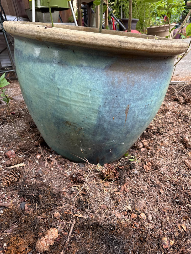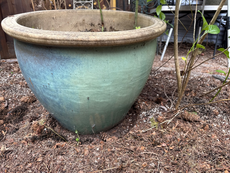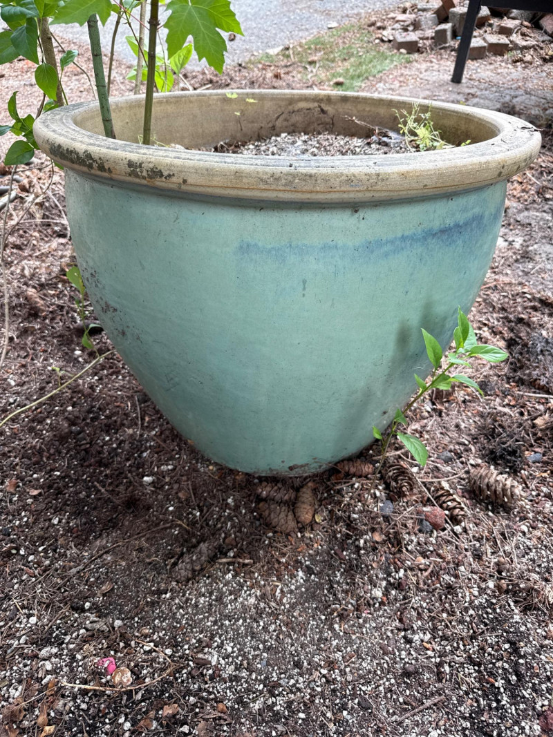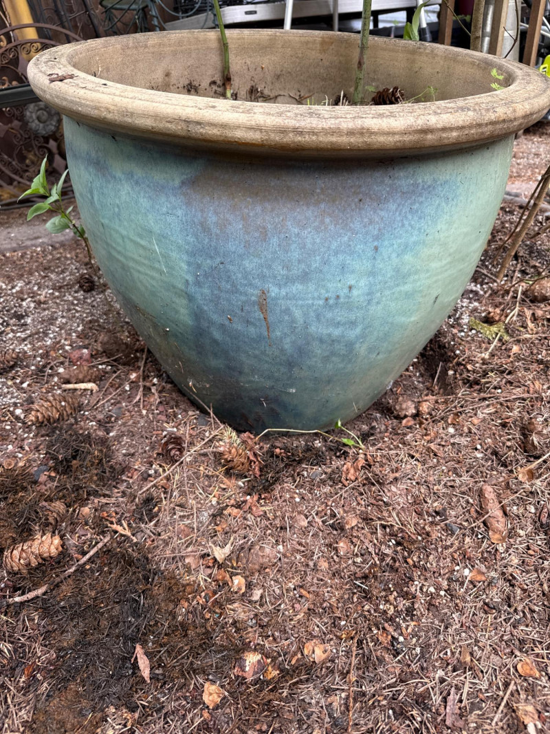 Lot # 12 - Large Blue and Green Glazed Pot with Big Leaf Maple