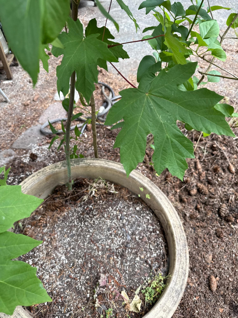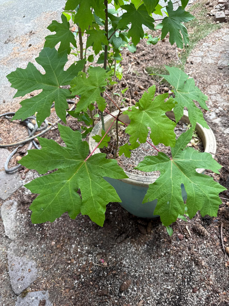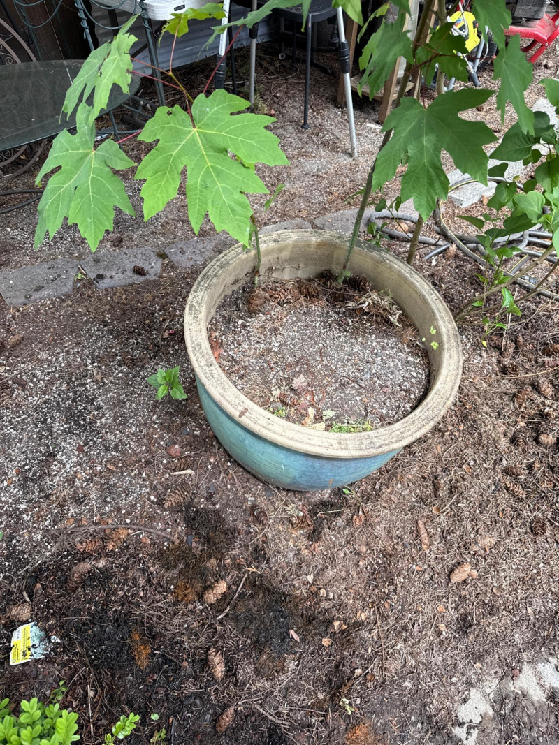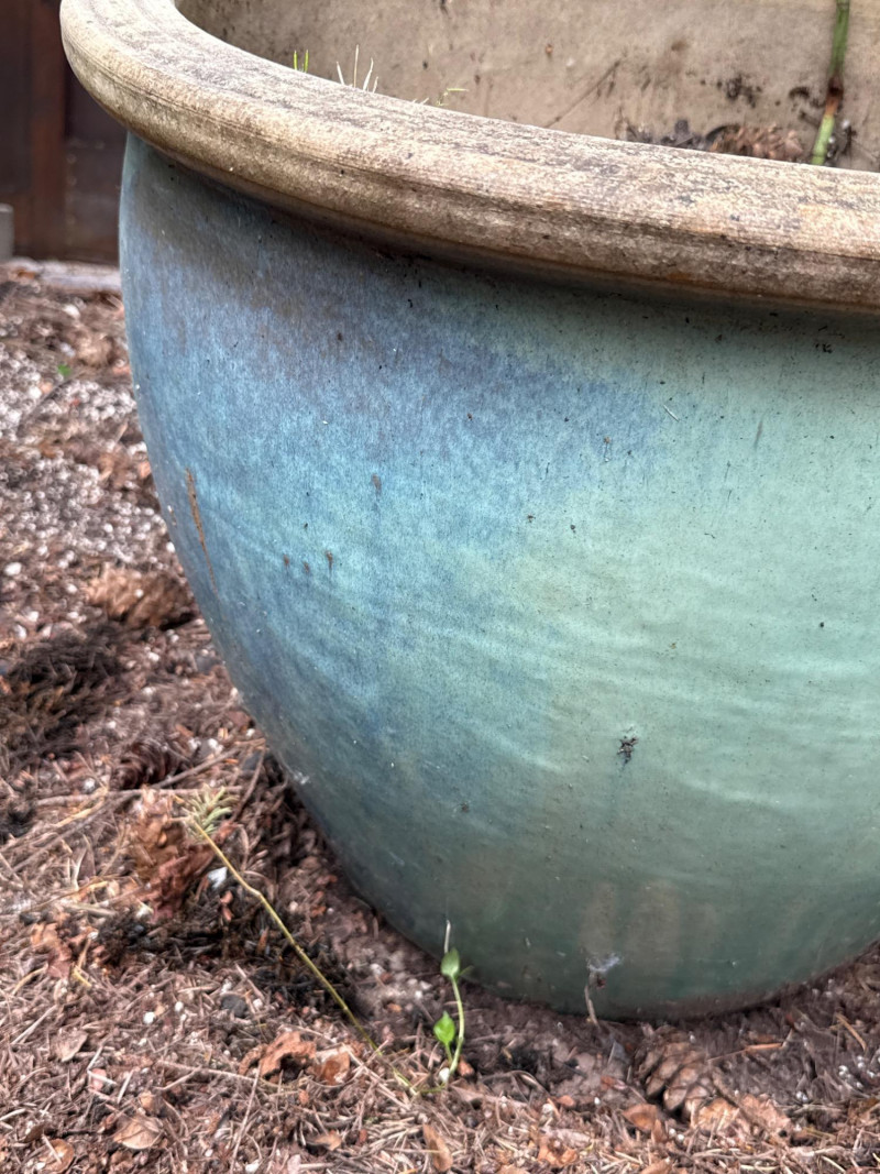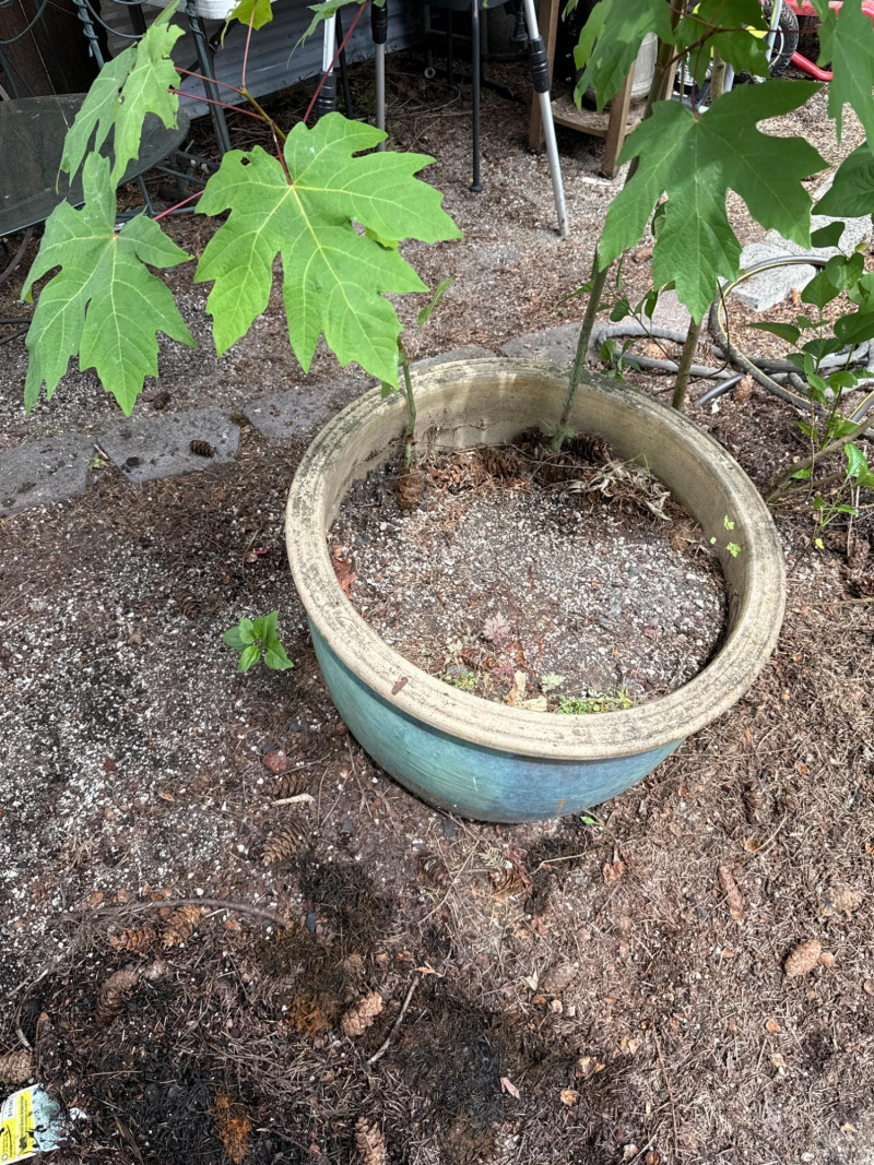 Lot # 12 - Large Blue and Green Glazed Pot with Big Leaf Maple