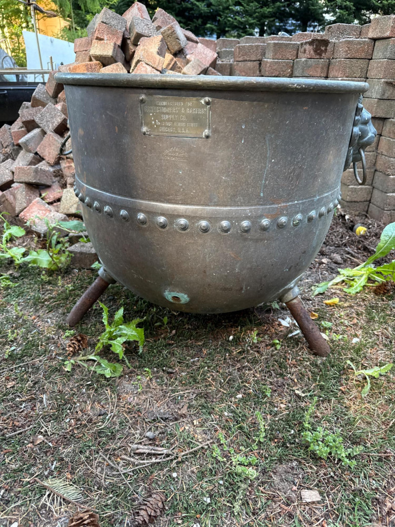 Lot # 19 - Savage Bro's Copper and Brass Confectioners and Bakers Pot with Legs